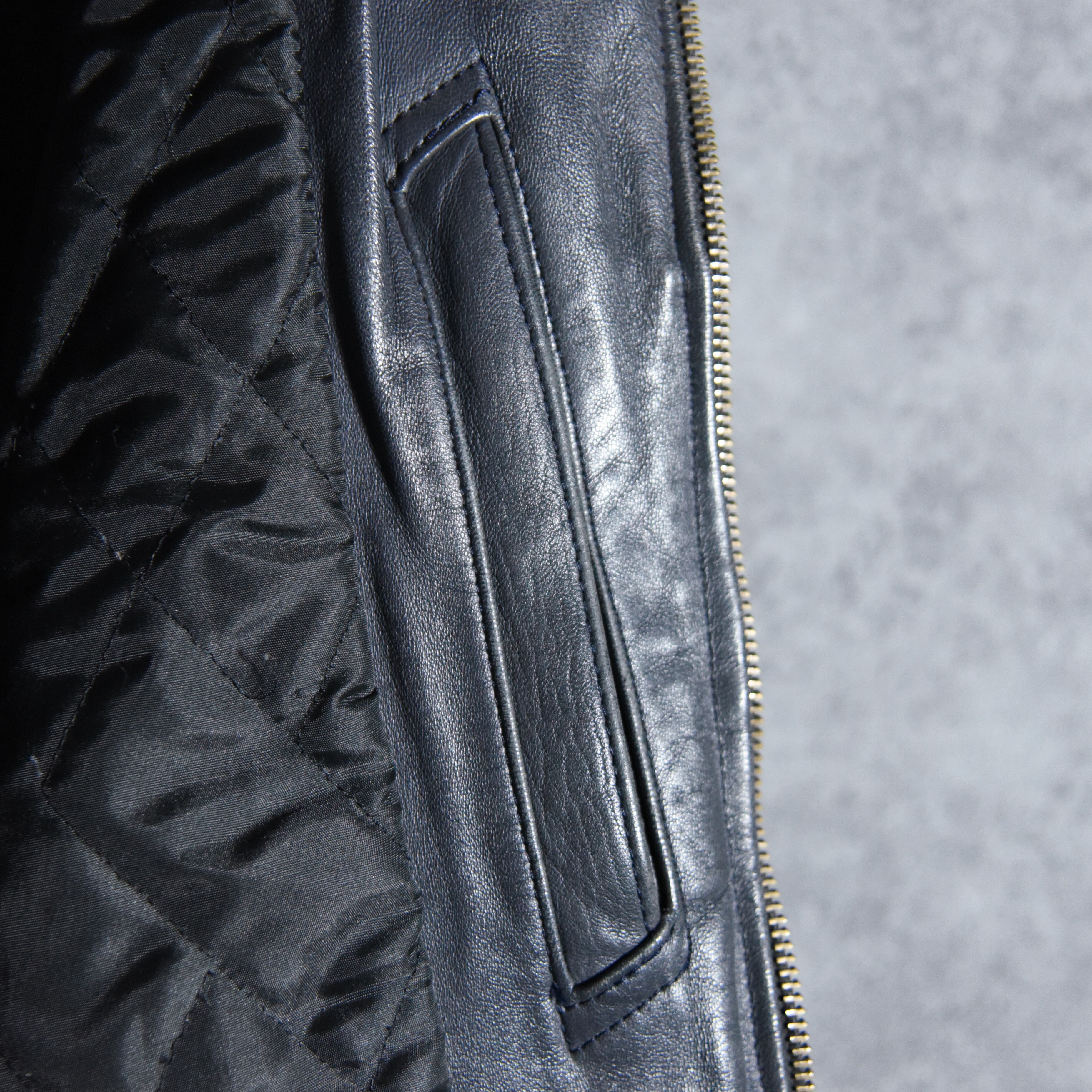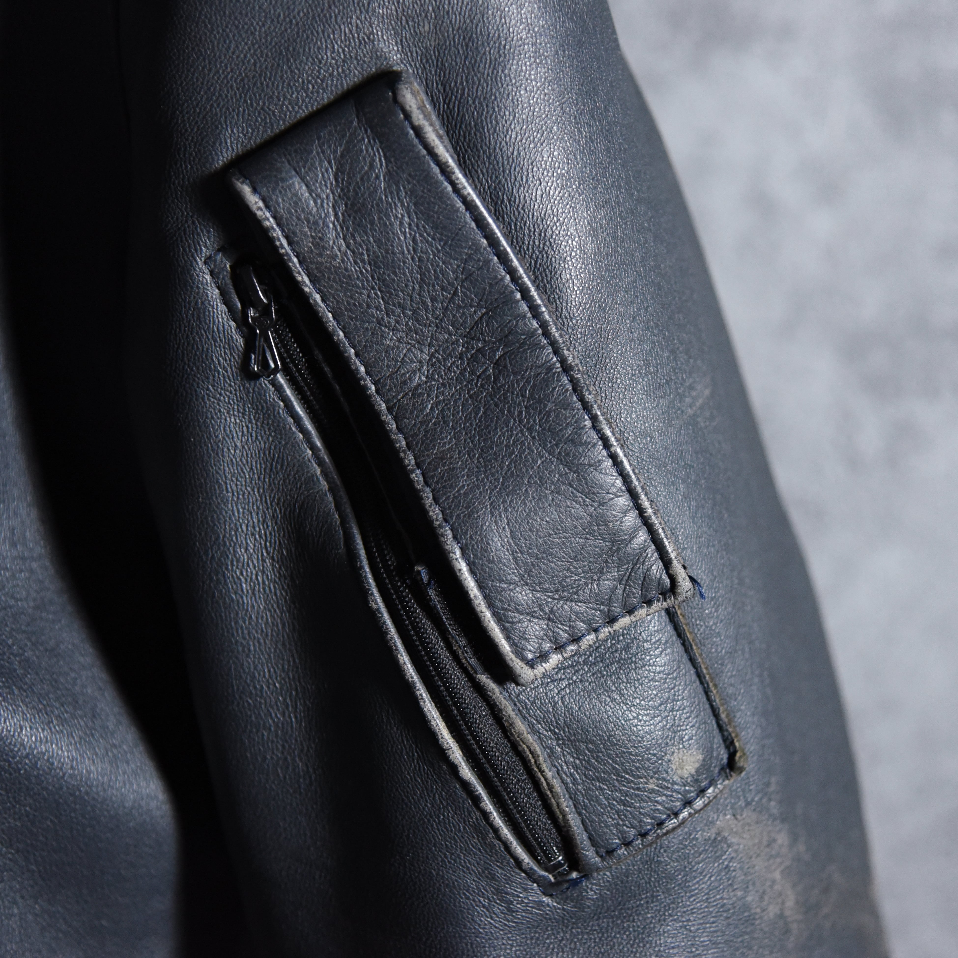 素材は柔らかく肉厚なシープスキンが使われており、ミリタリーのレザージャケットとは思えないほど着心地が良く、全体的に若干のスレは見られるものの状態は良好です。