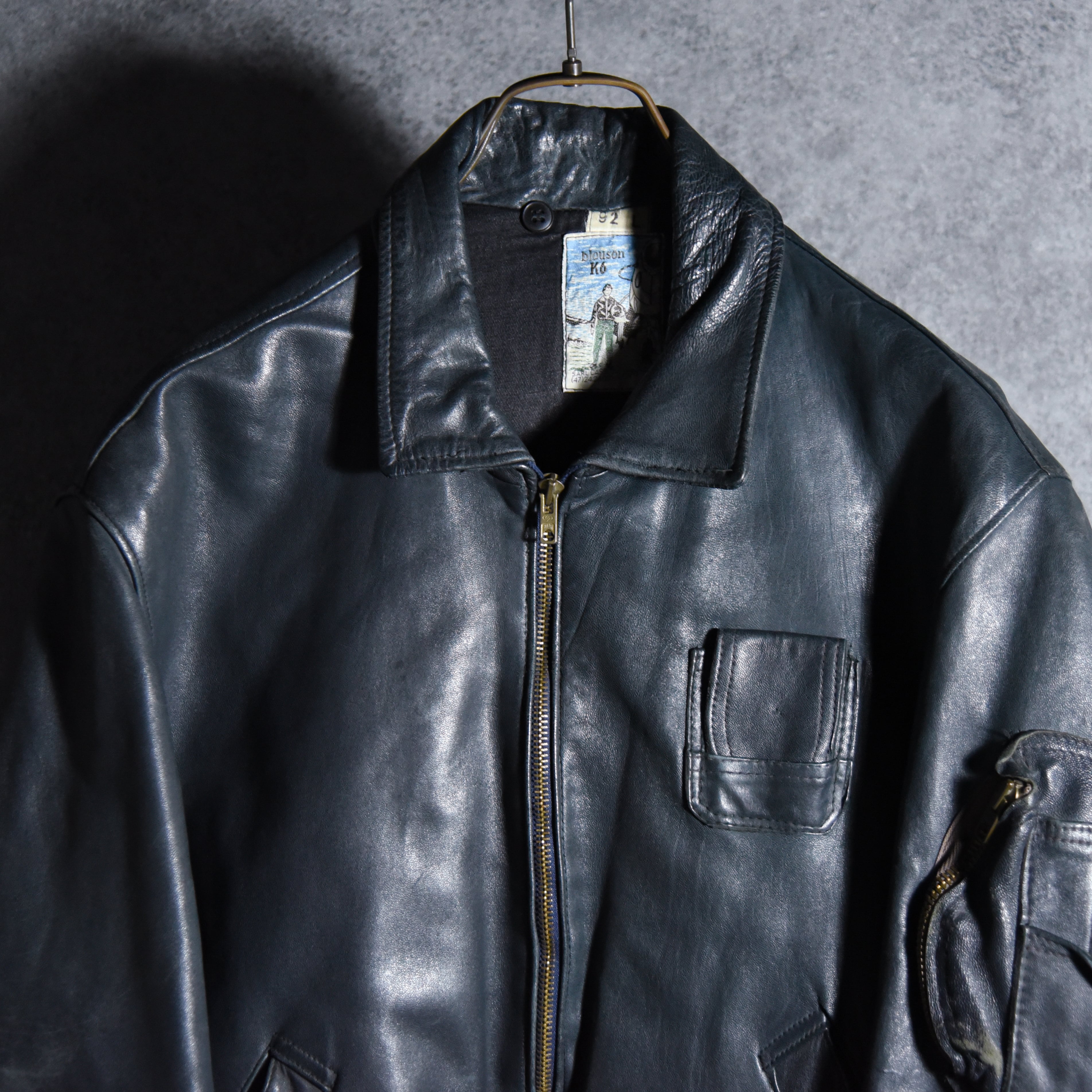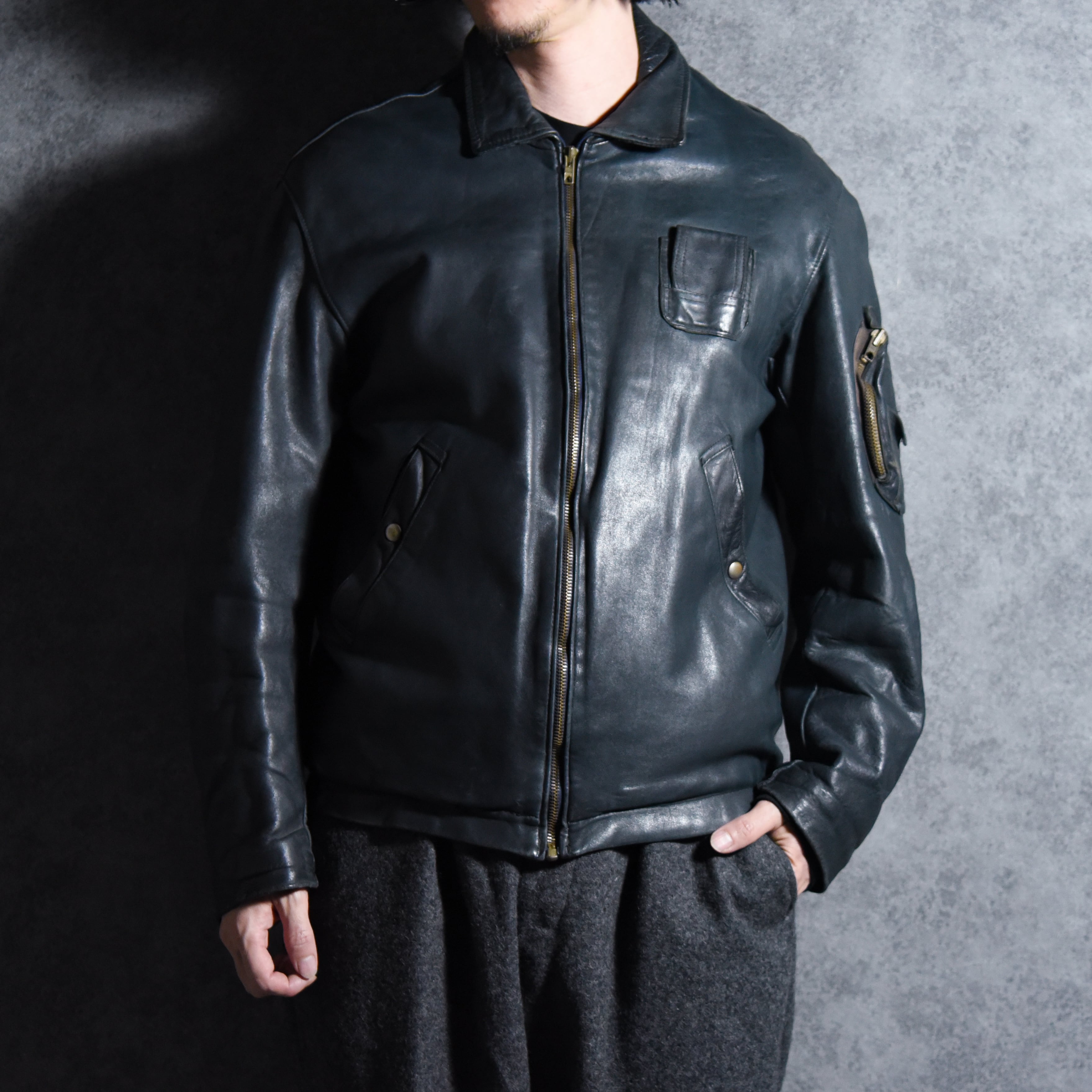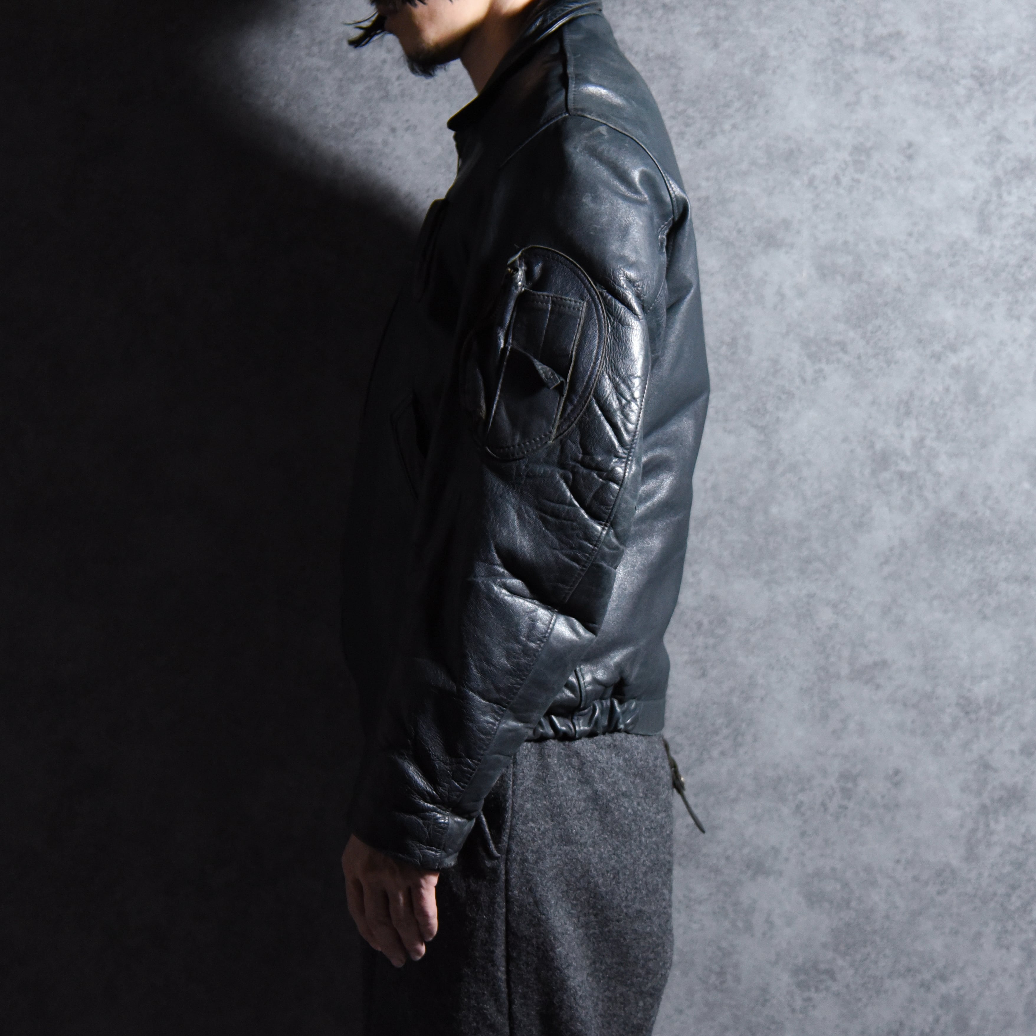 70s French Air Force Leather Pilot Jacket フランス軍 レザー パイロット ジャケット 92L