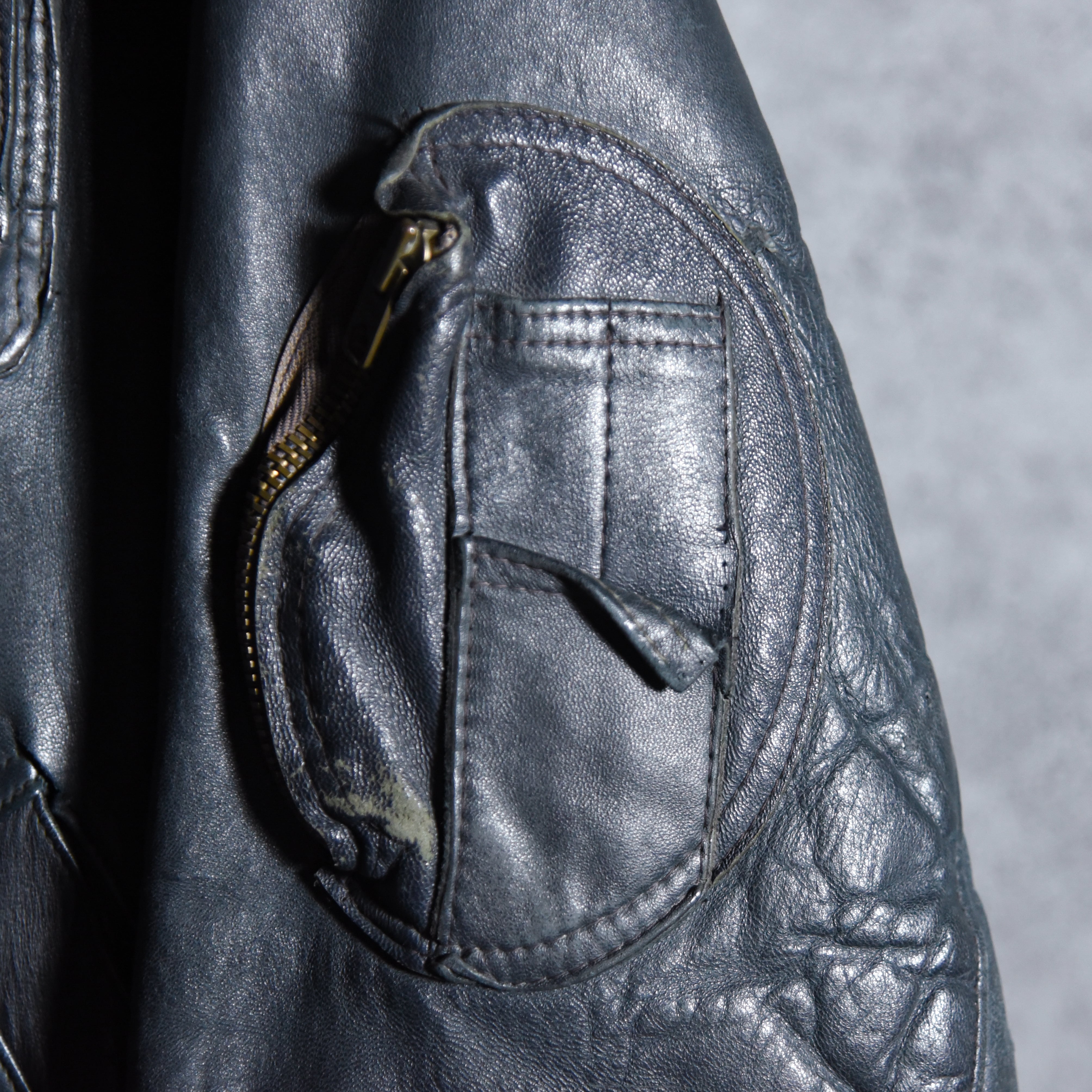 非常に完成されたデザインのフランス軍を代表するレザージャケットで、マルジェラをはじめ多くのブランドがサンプリングを繰り返している名作です。
