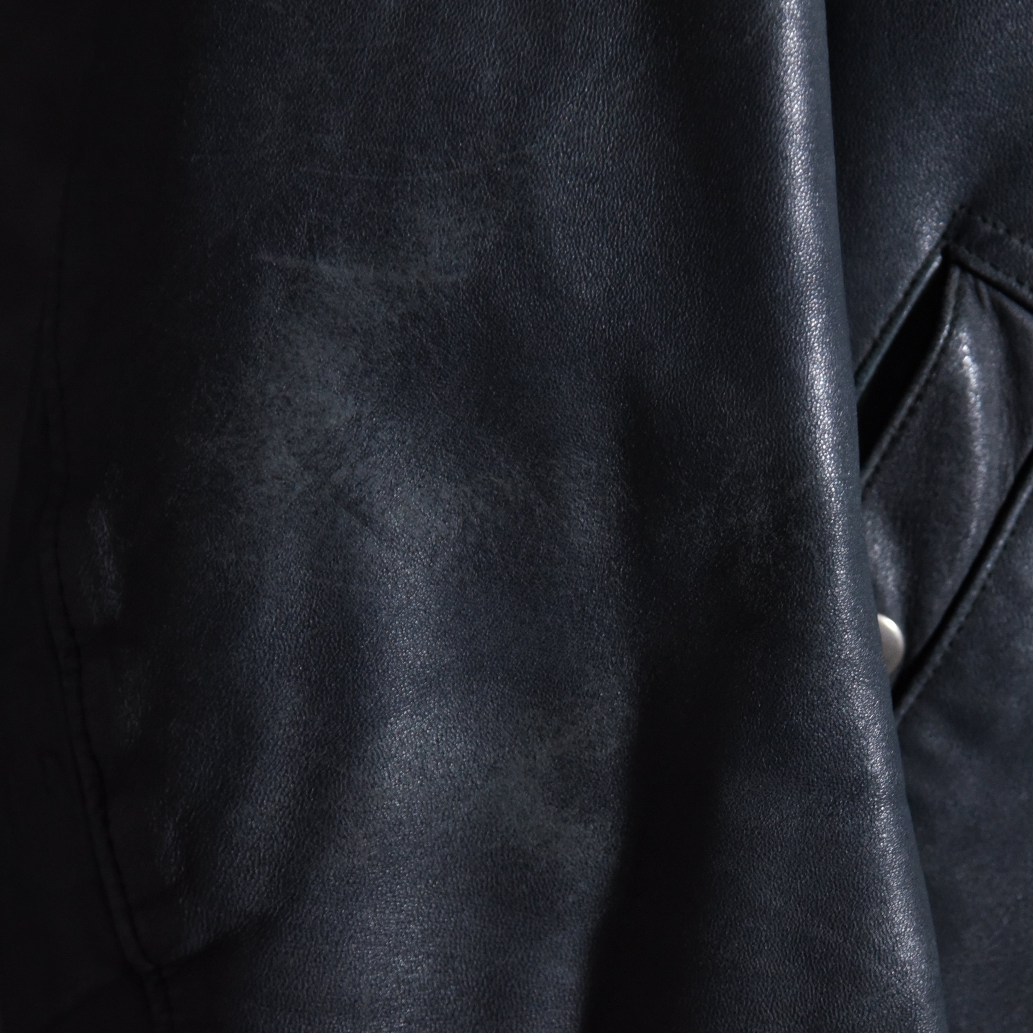 素材は柔らかく肉厚なシープスキンが使われており、腕や肩回りが可動しやすくストレスのない着心地で、全体的に若干のスレは見られるものの状態は良好です。
