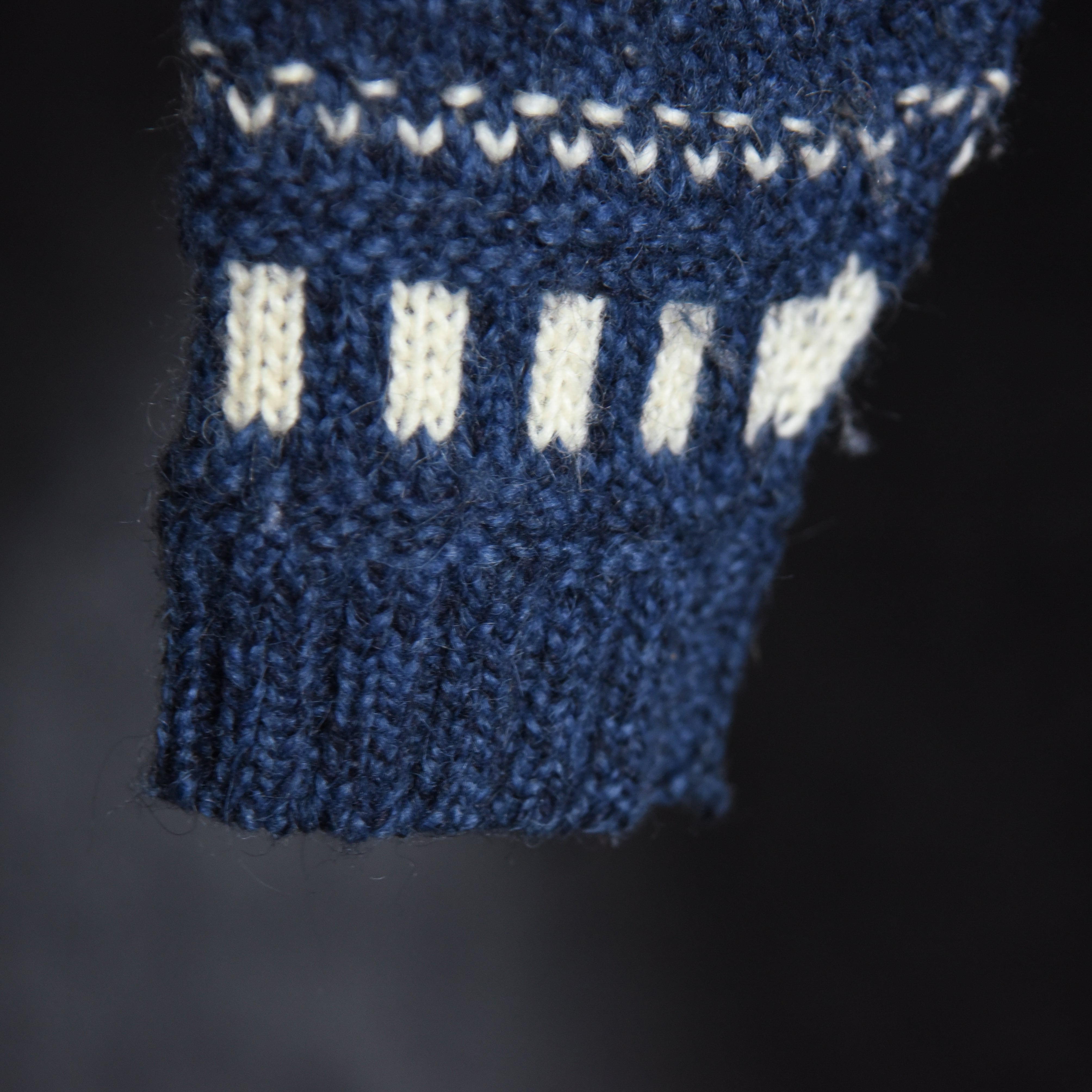 雪の結晶や幾何学柄を組み合わせた伝統的なノルディックパターンでデザインの配置、バランスなども非常に良いグッドピース。