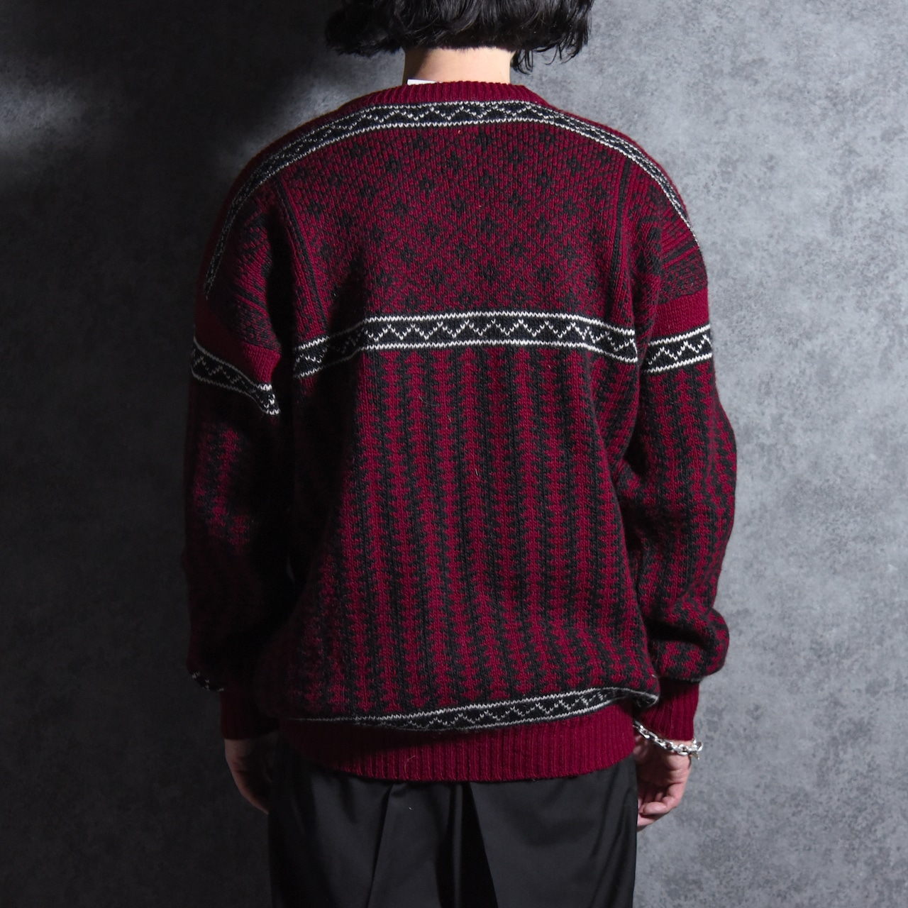 自国で丁寧に編み上げられたニットは幾何学柄、格子状のドット、袖のラインなどノルウェーの伝統的なノルディックパターンが採用されています。