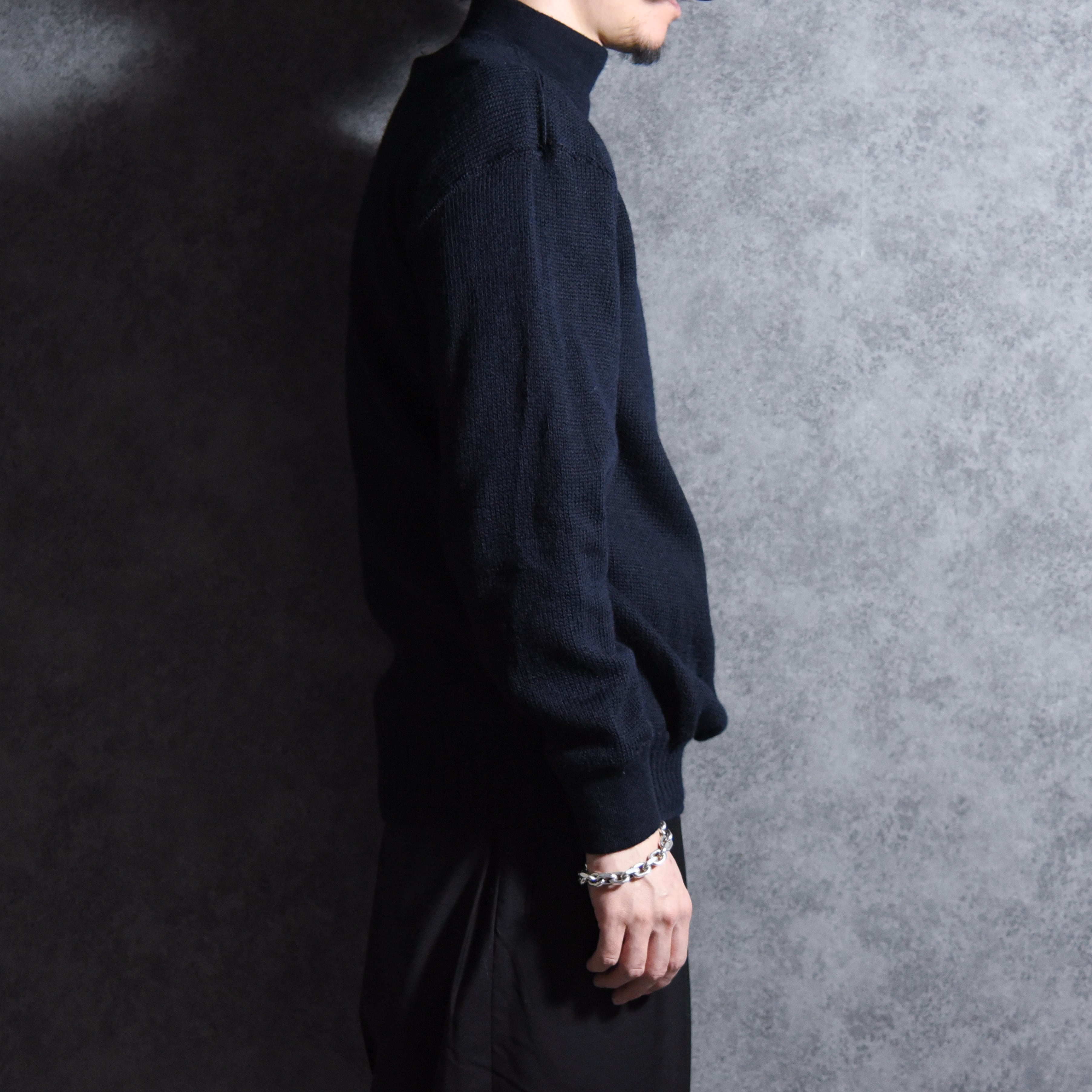 アメリカ海軍で採用されていたセーターで、前後差のないハイネックに、袖や裾のリブ仕様の非常なシンプルな作りは、時代に左右されずファッションとして取り入れやすい名作です。
