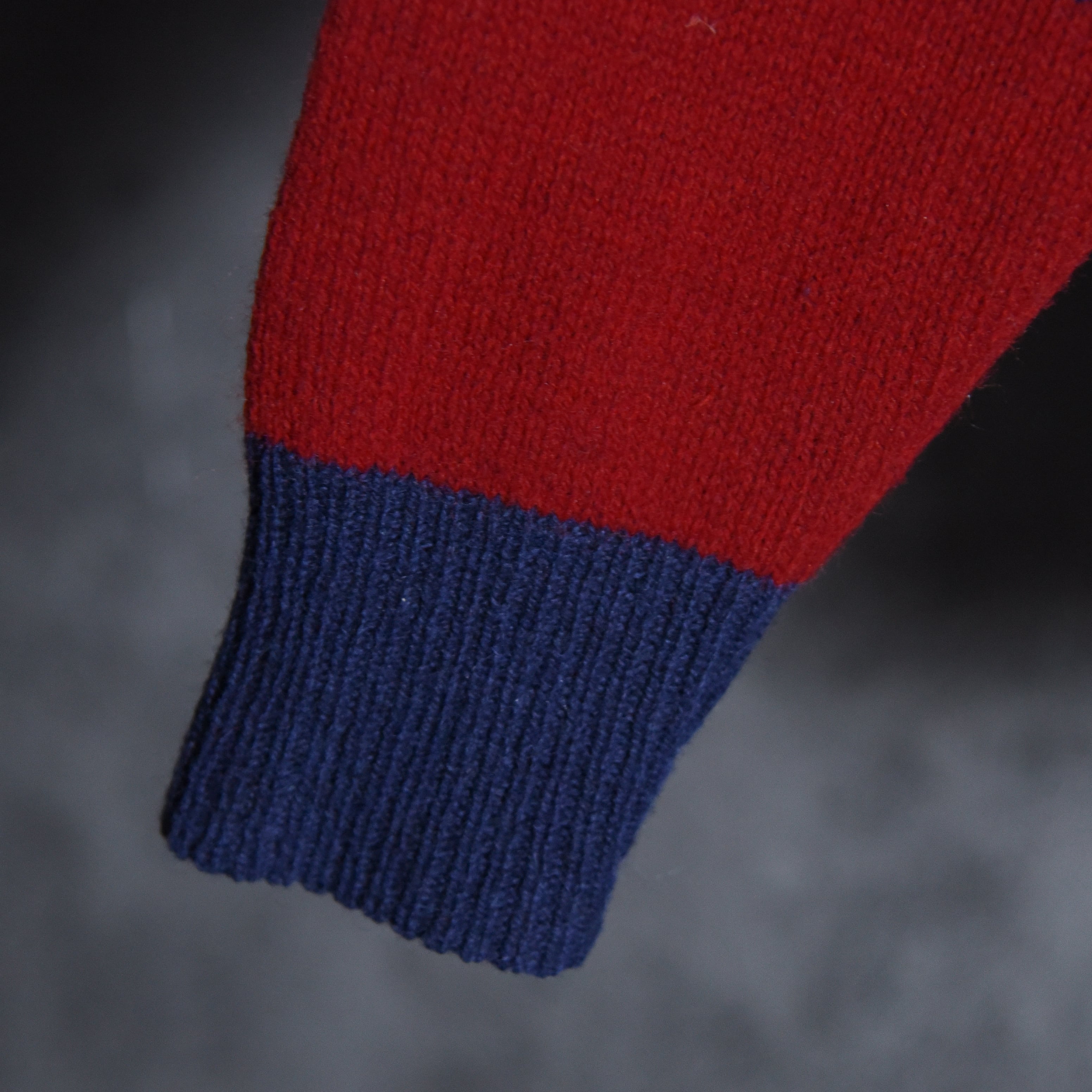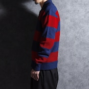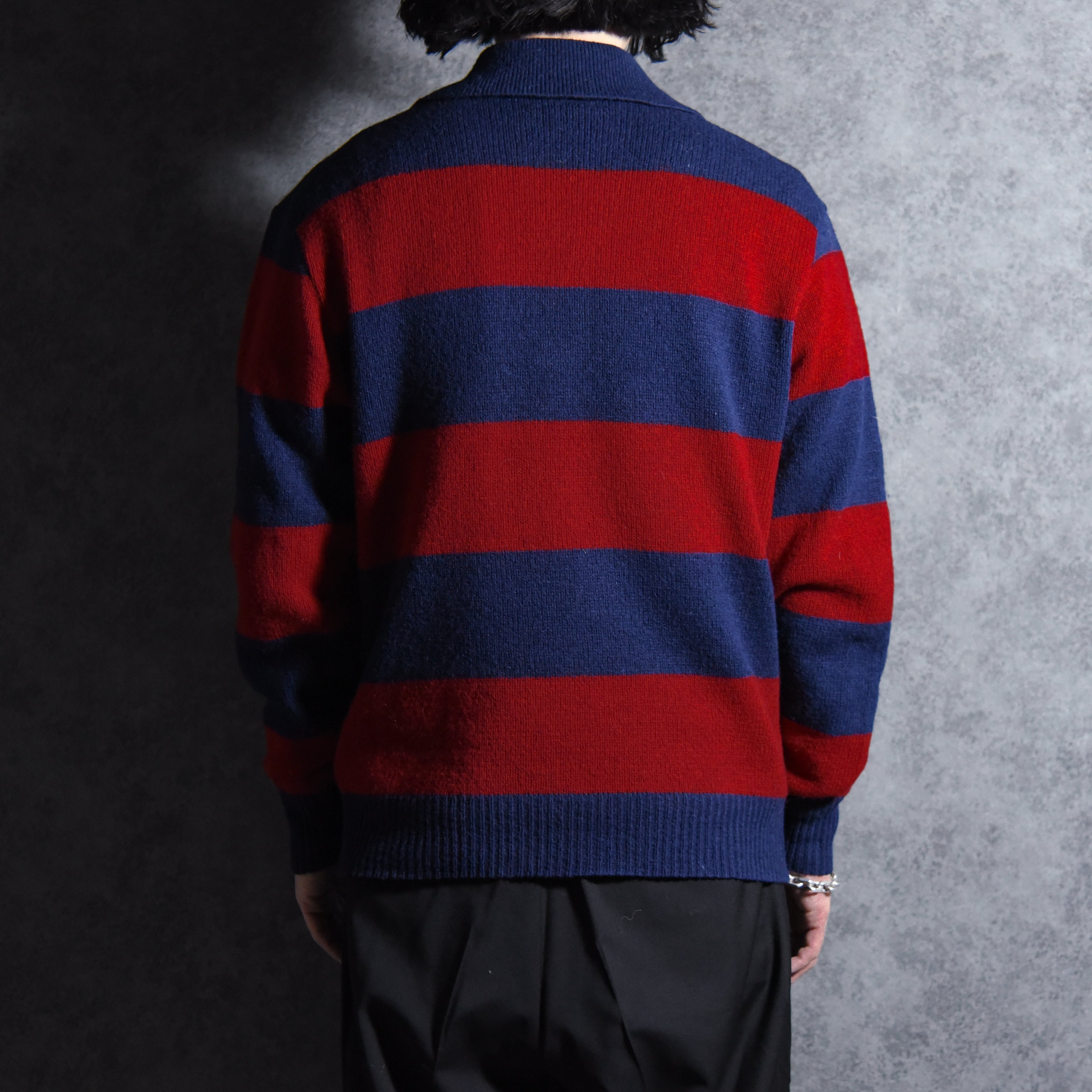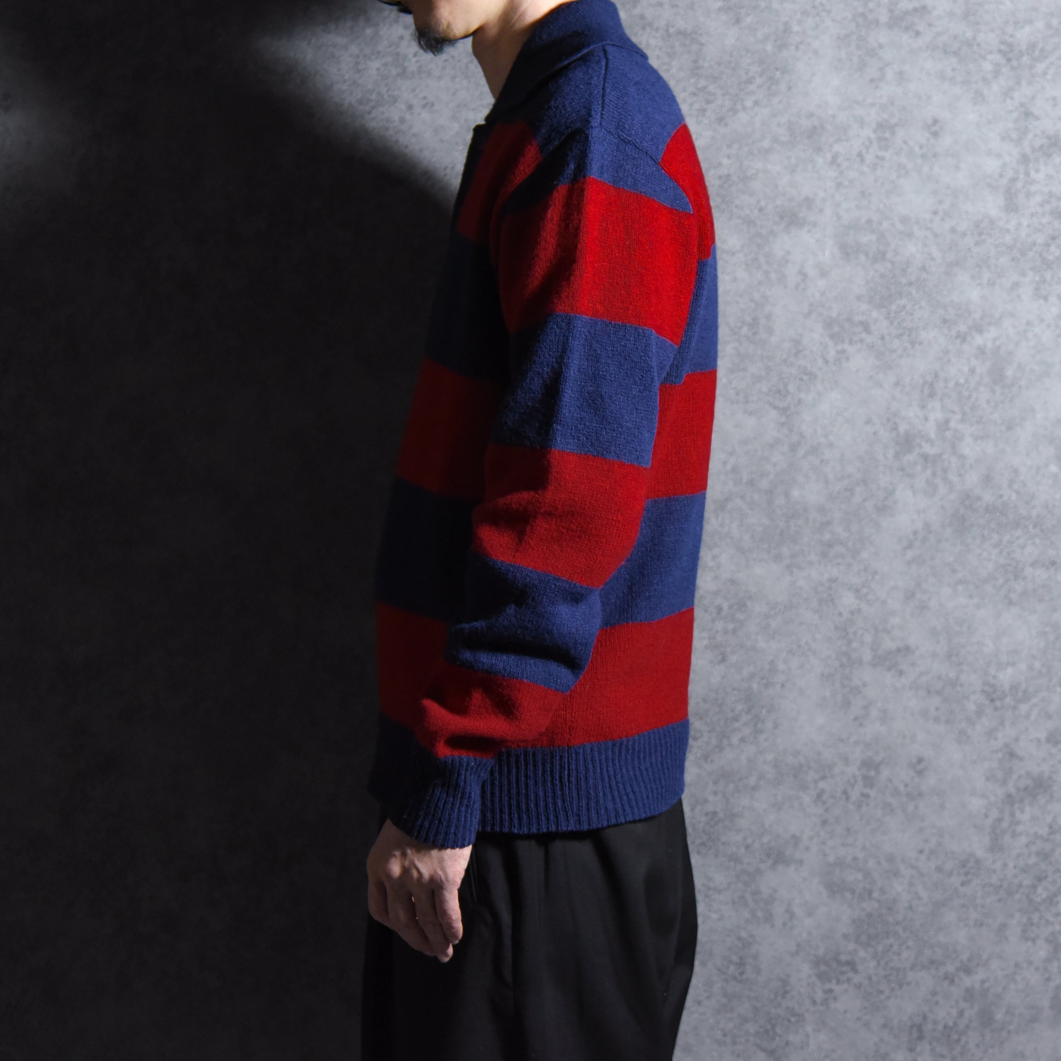 今回入荷したのはアイビー、プレッピーの流れを汲む太ピッチのボーダーが特徴的なポロ型セーターで、ラガーシャツを彷彿とさせるネイビー×ワインレッドの好配色の一着。