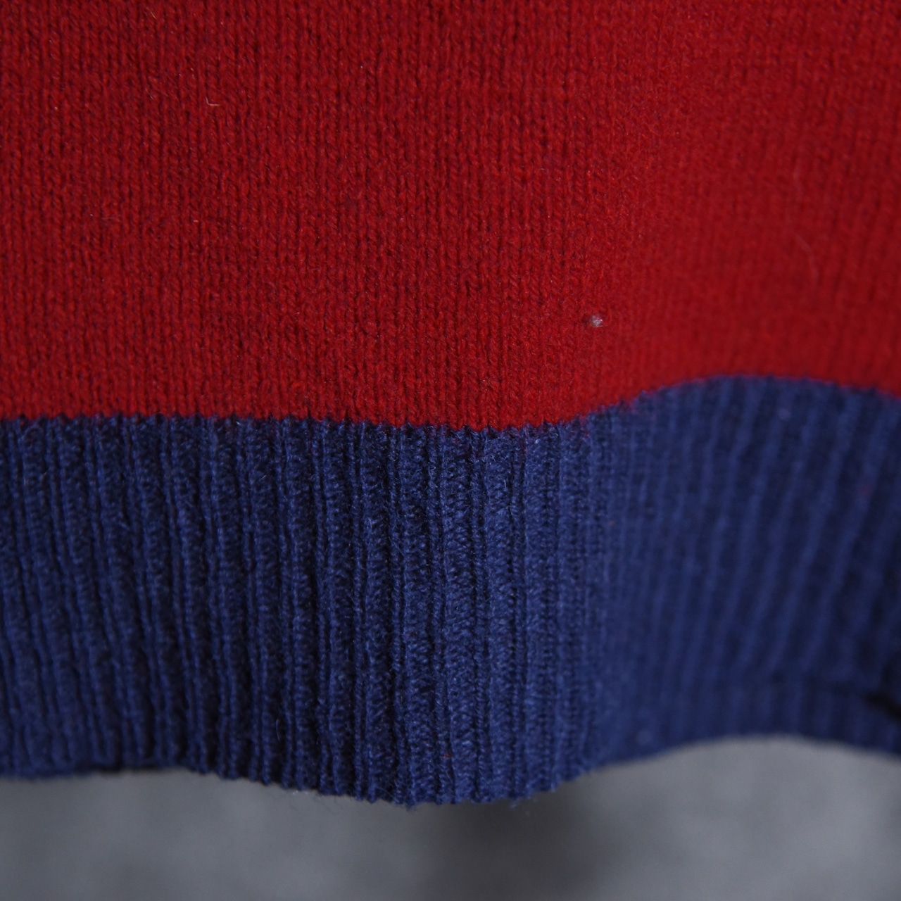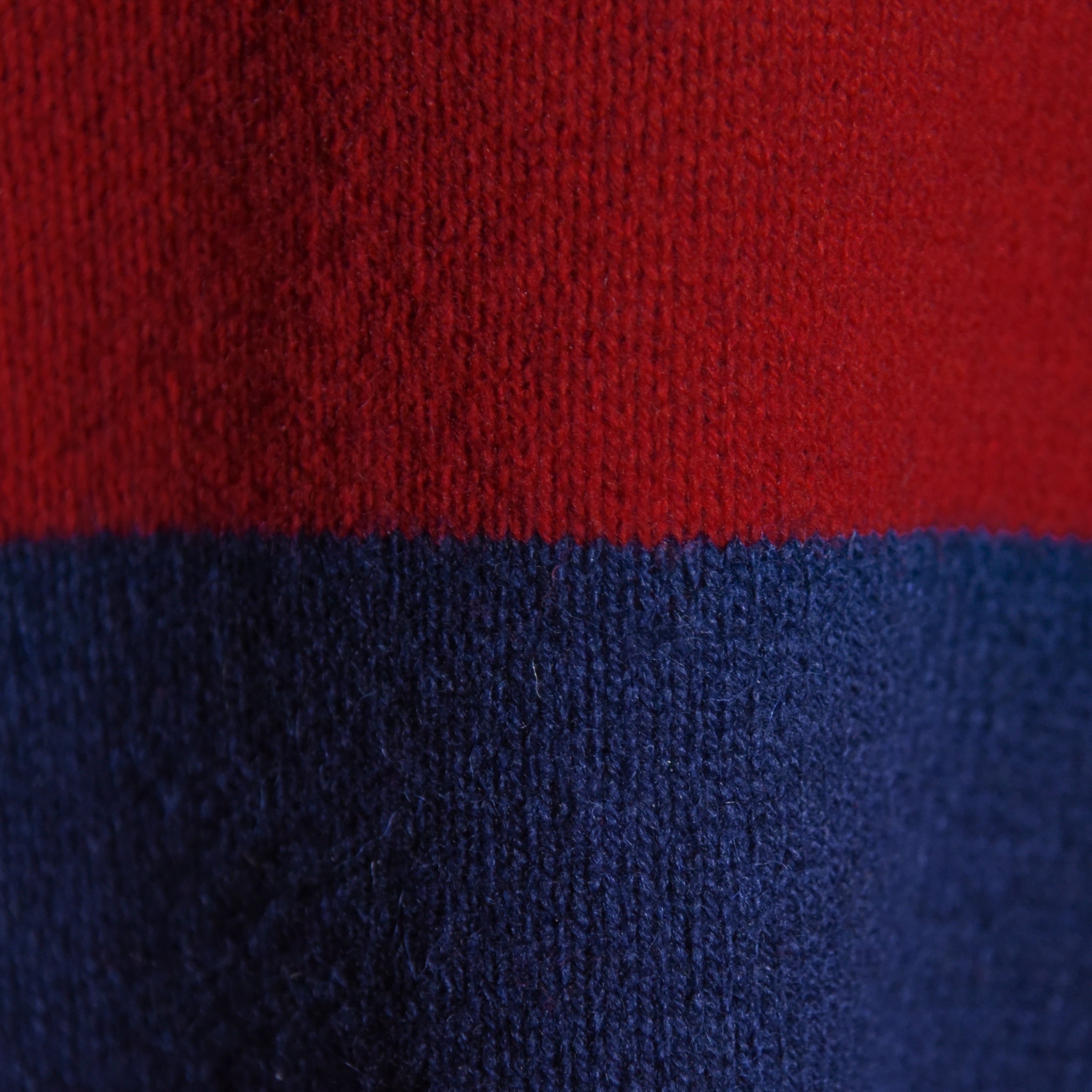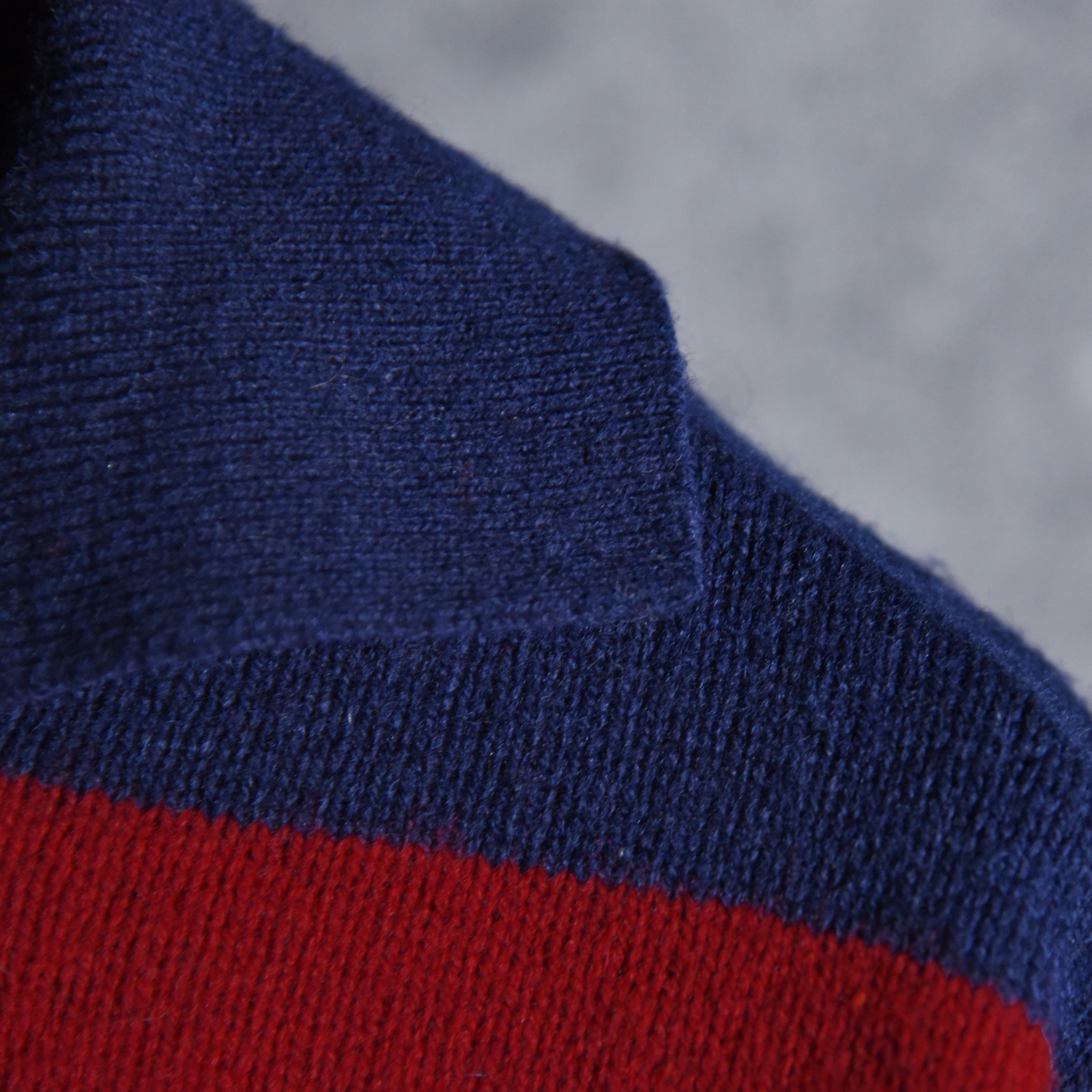 今回入荷したのはアイビー、プレッピーの流れを汲む太ピッチのボーダーが特徴的なポロ型セーターで、ラガーシャツを彷彿とさせるネイビー×ワインレッドの好配色の一着。