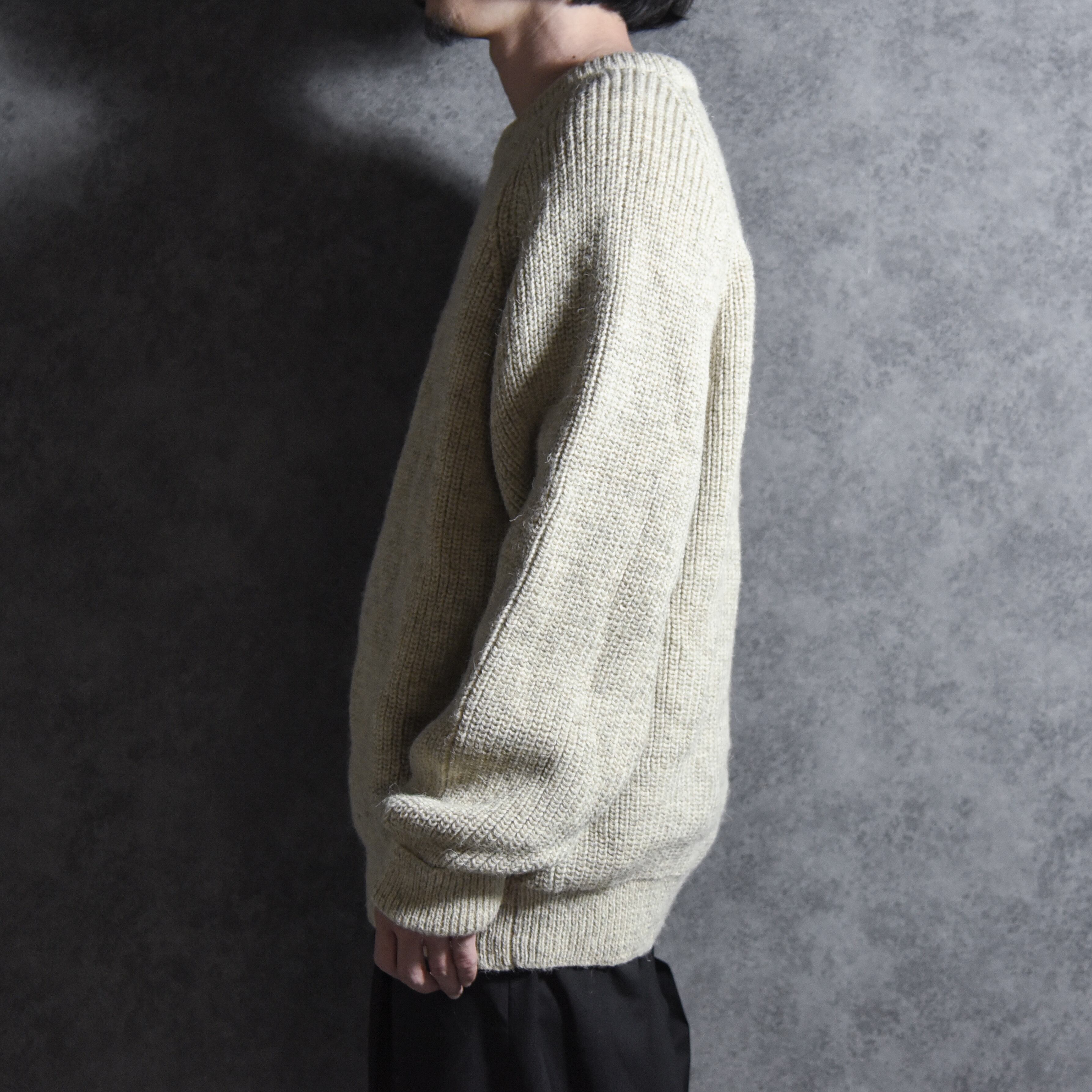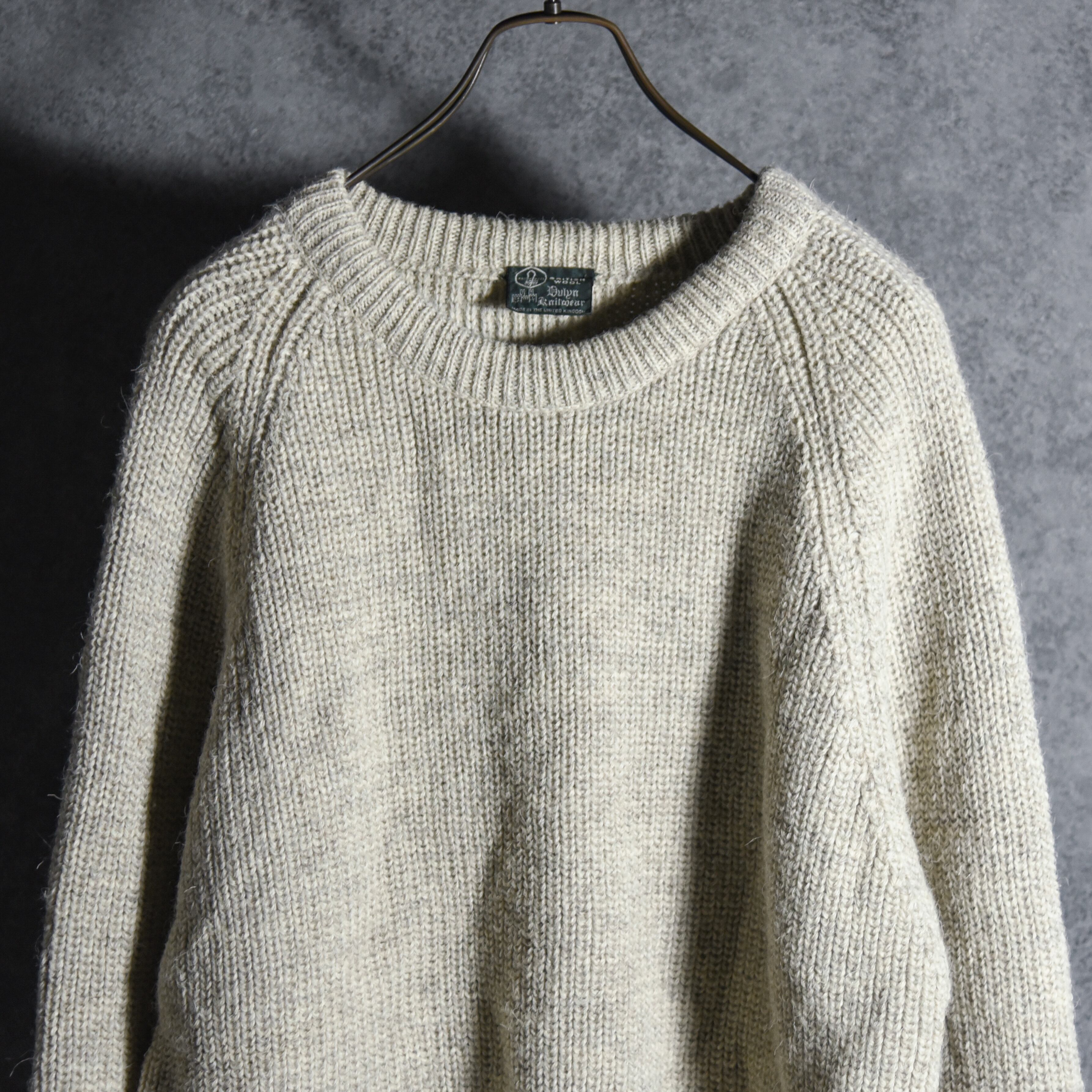 80-90s Dulyin Knitwear Crew Neck Sweater Rib Knit Made in UK デュリン・ニットウェア クルーネック セーター リブニット 畦編 イギリス製 オートミール