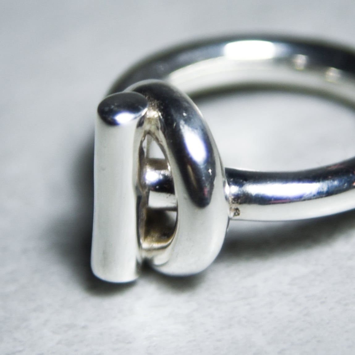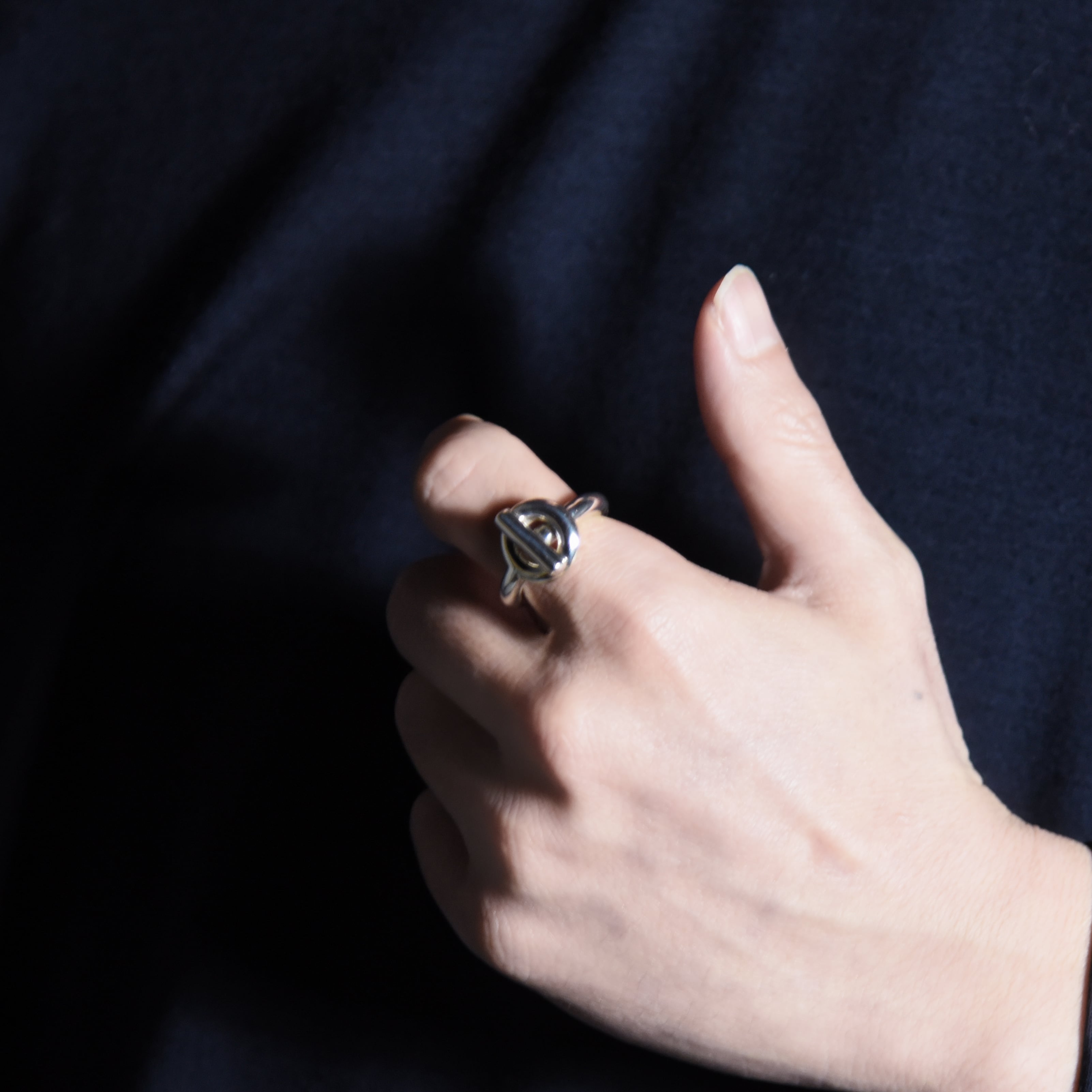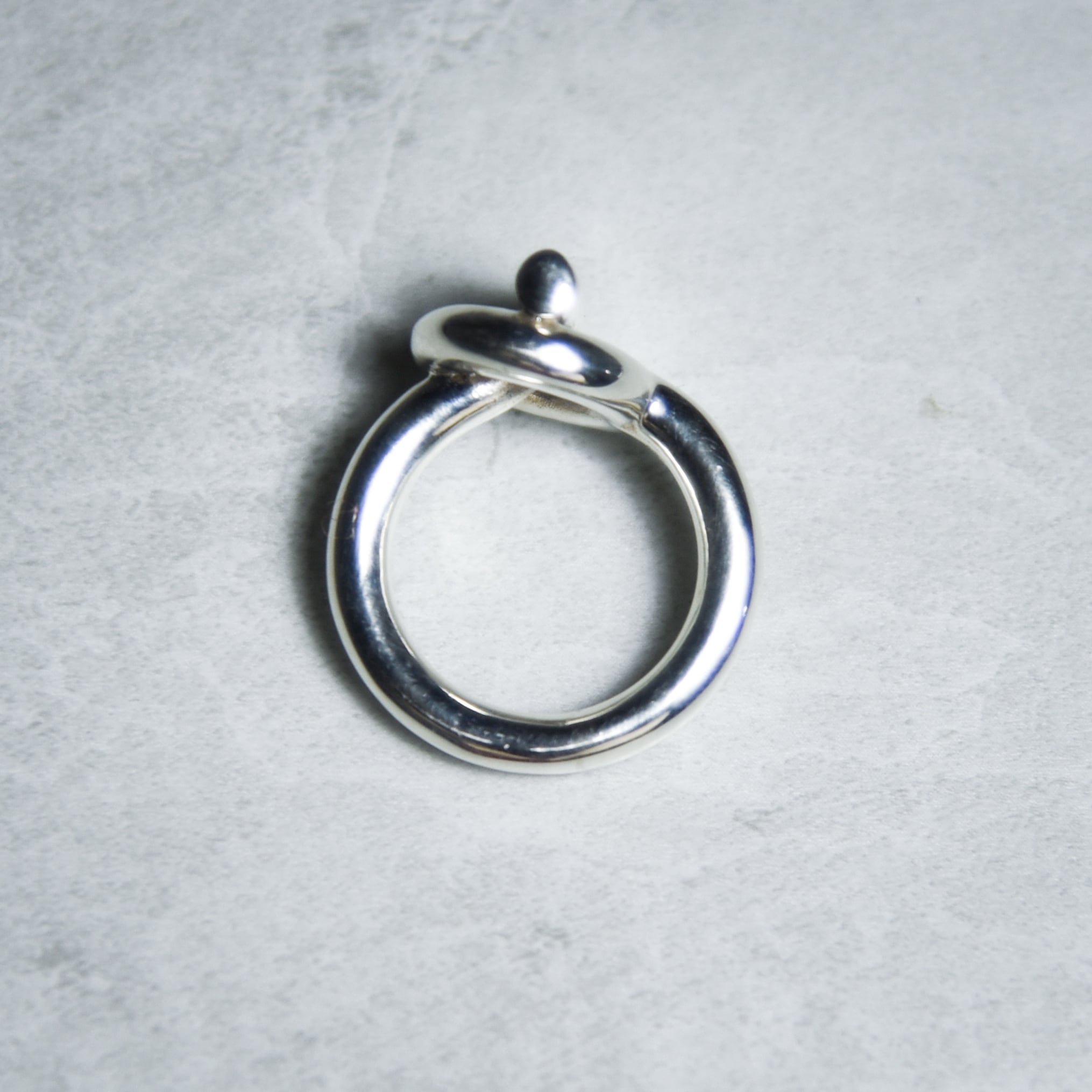 ブレスレットのエンド部分をそのままリングに落とし込んだようなデザインで、洗練されたスタイルとしっかりとした重量感、滑らかな仕上げなど、モダンアートのような芸術性を感じる逸品です。