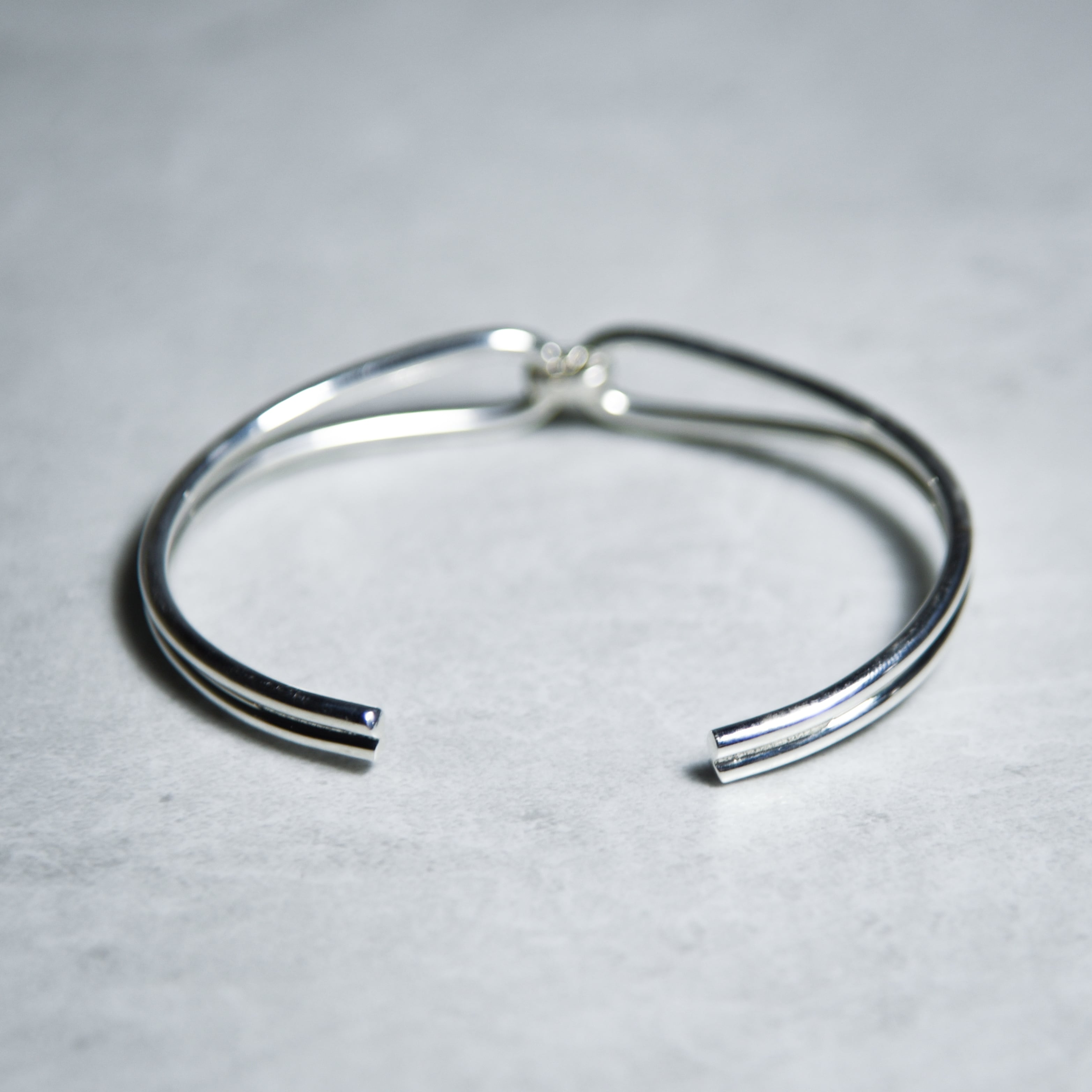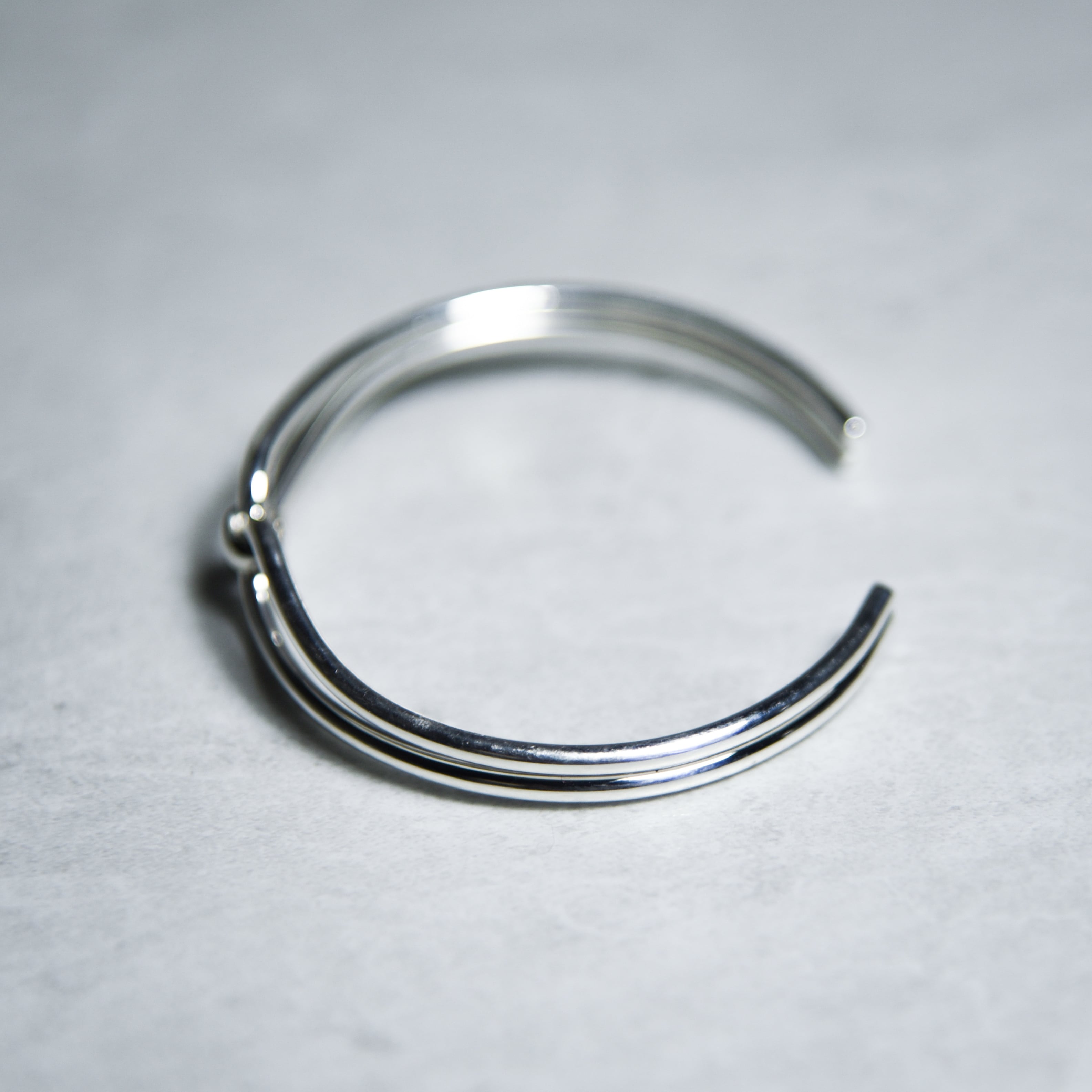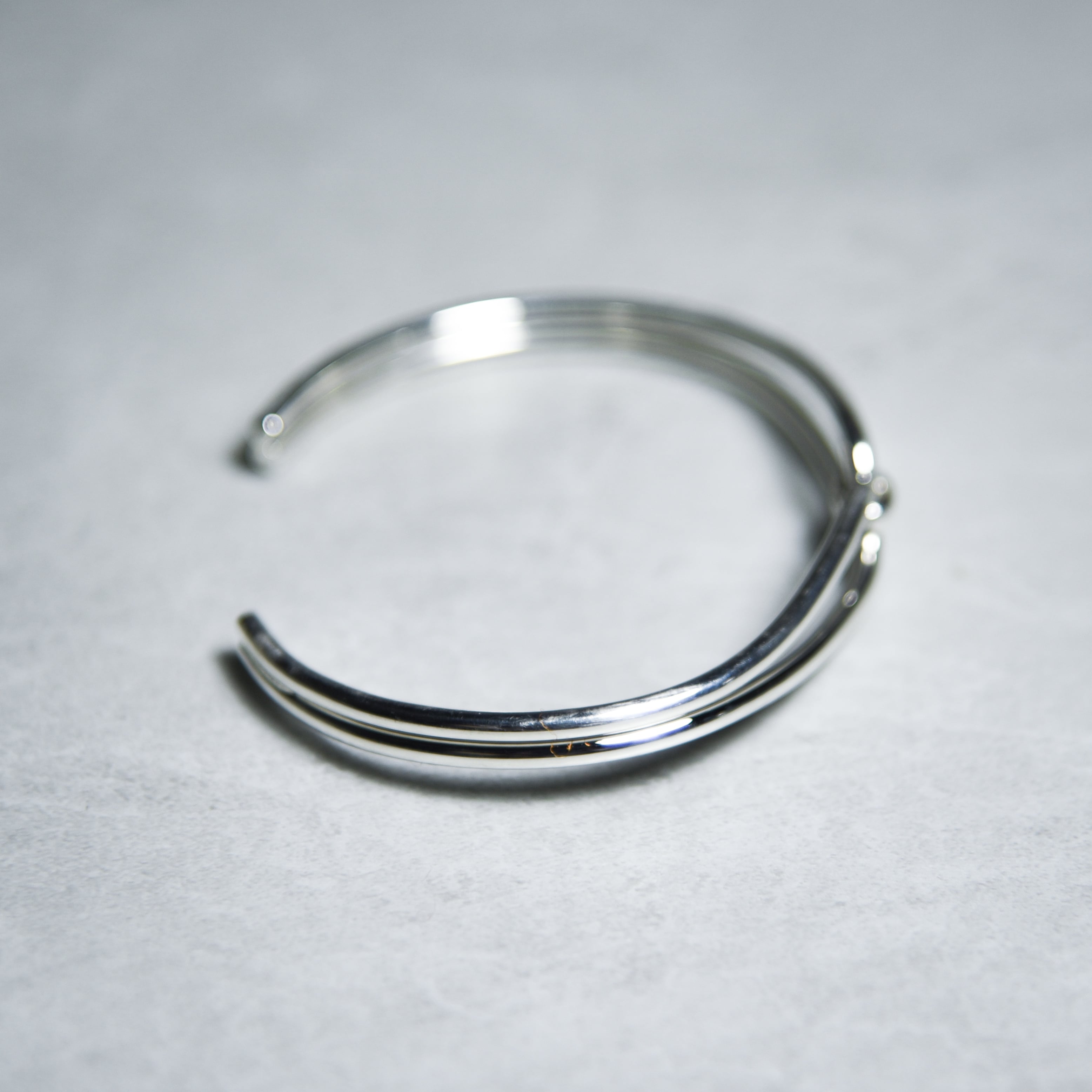 2本の細いラインの隙間から肌が透けて見えるため、ボリュームのあるバングルとは対照的に華奢な印象を与えます。