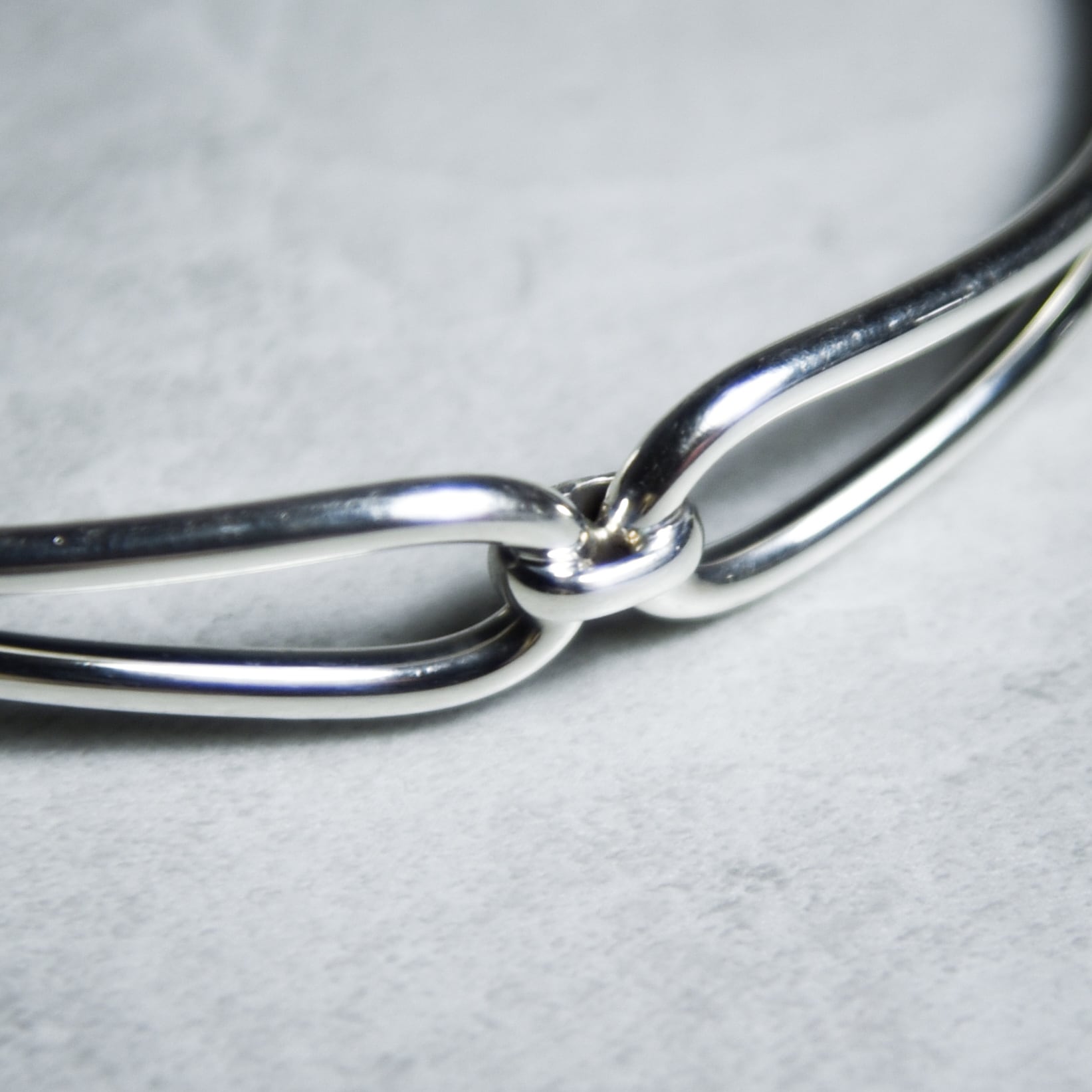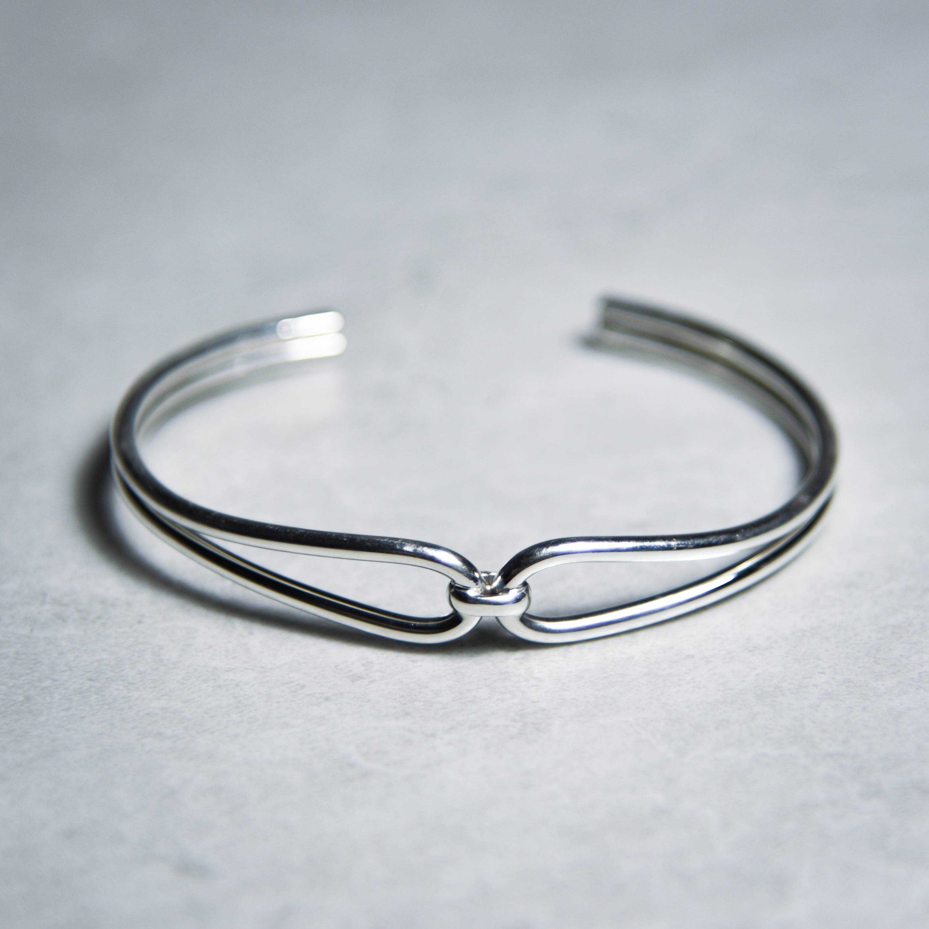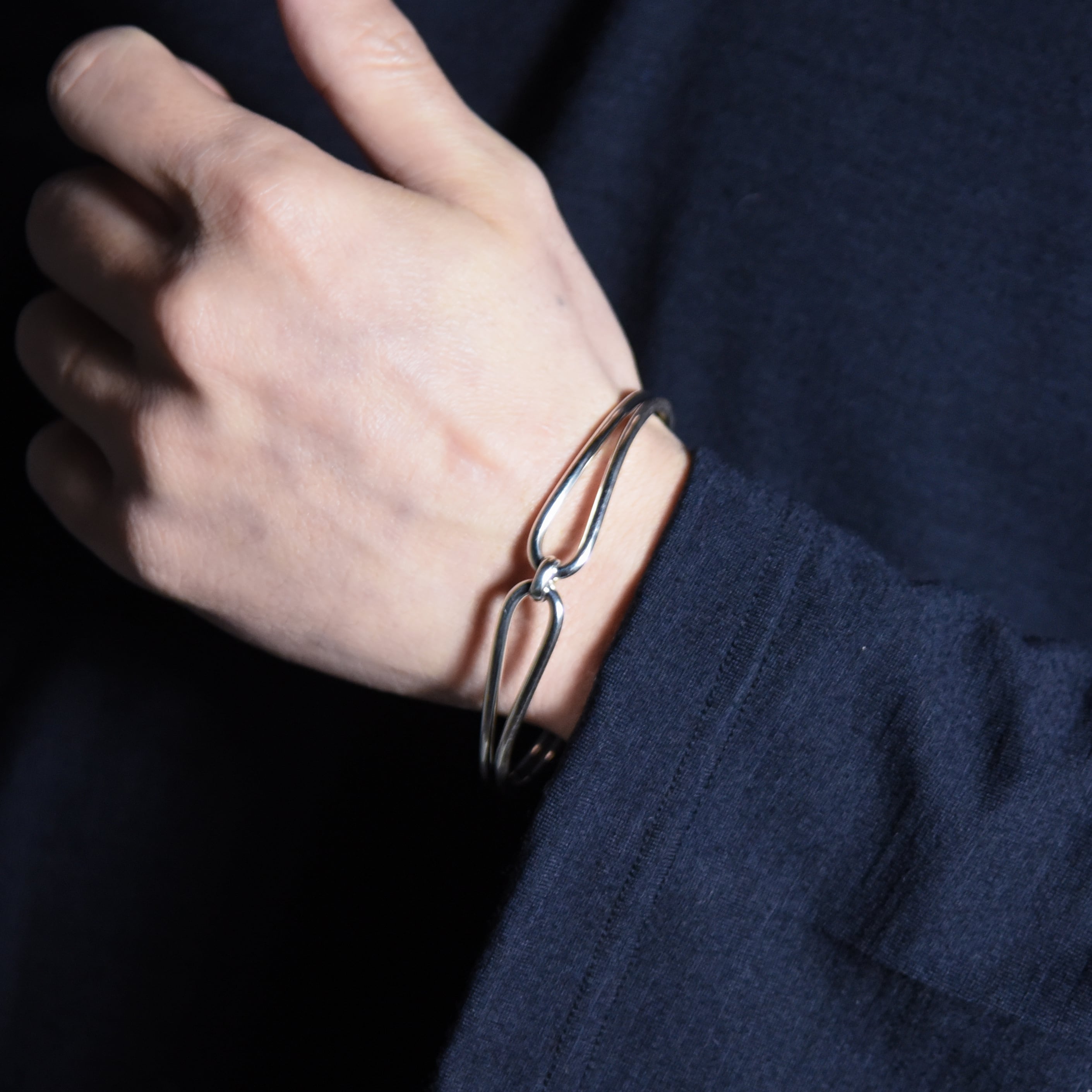 2本の細いラインの隙間から肌が透けて見えるため、ボリュームのあるバングルとは対照的に華奢な印象を与えます。