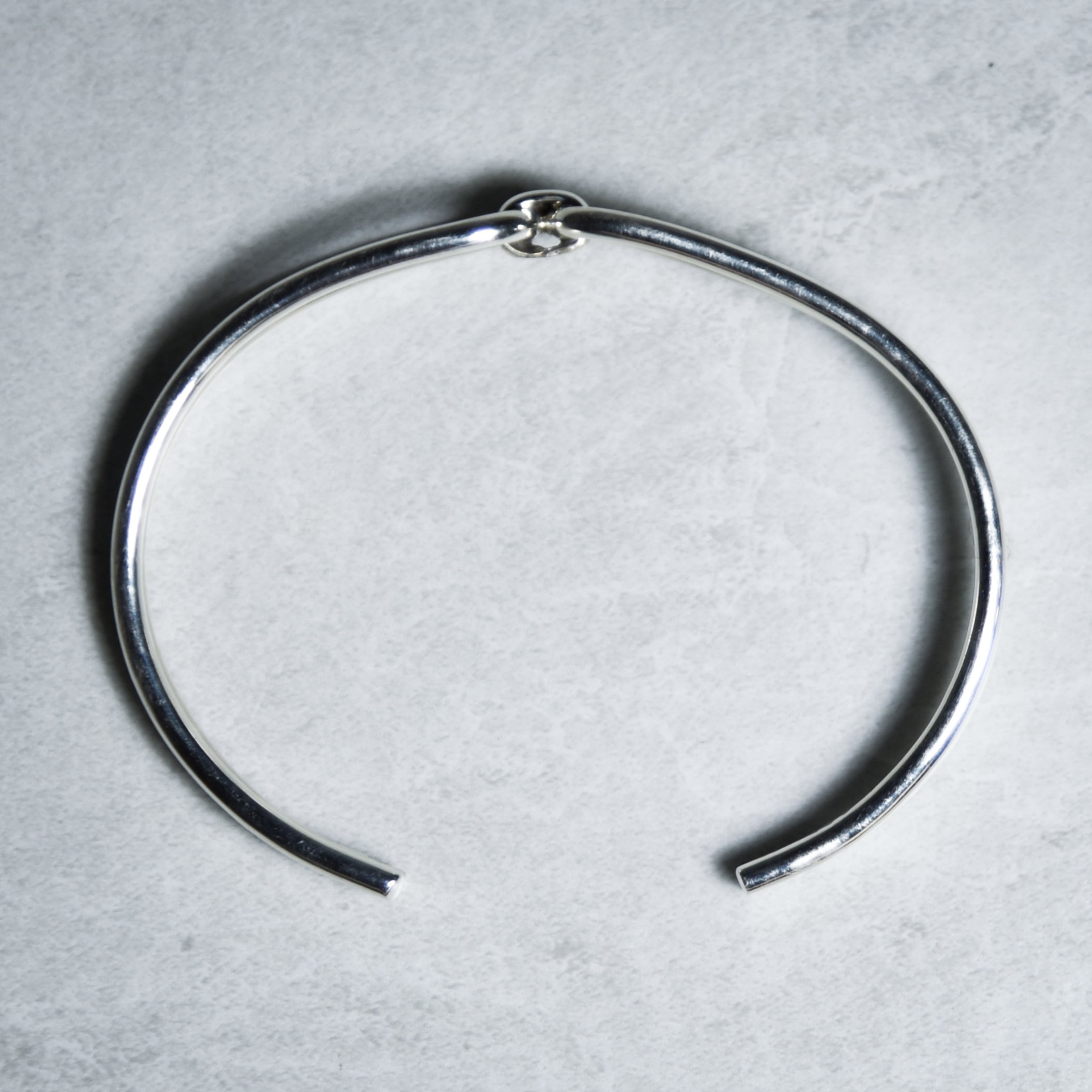 装飾は削ぎ落とし、線の美しさで構成しているため、洗練されたミニマルでクリーンな印象を受けるバングルです。
