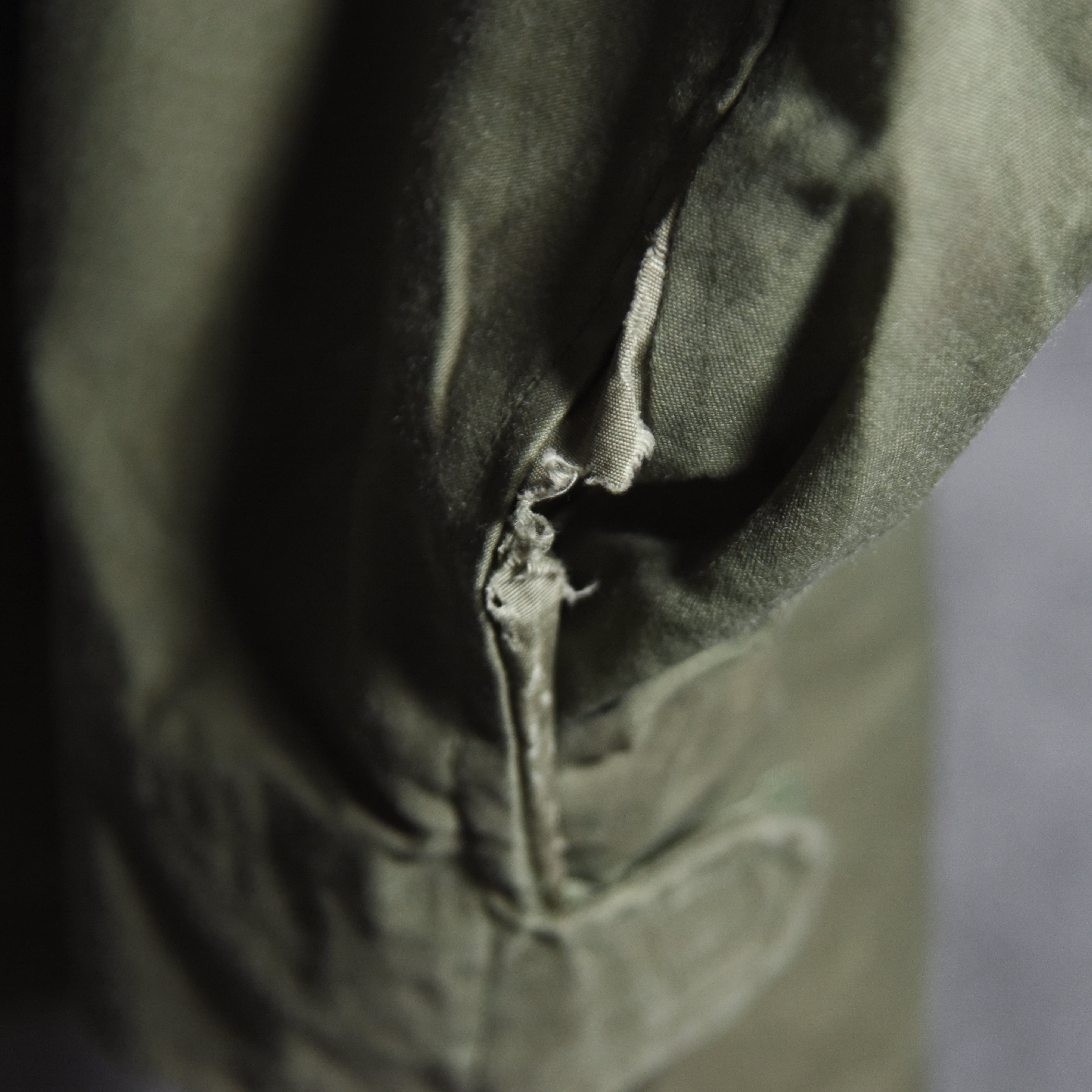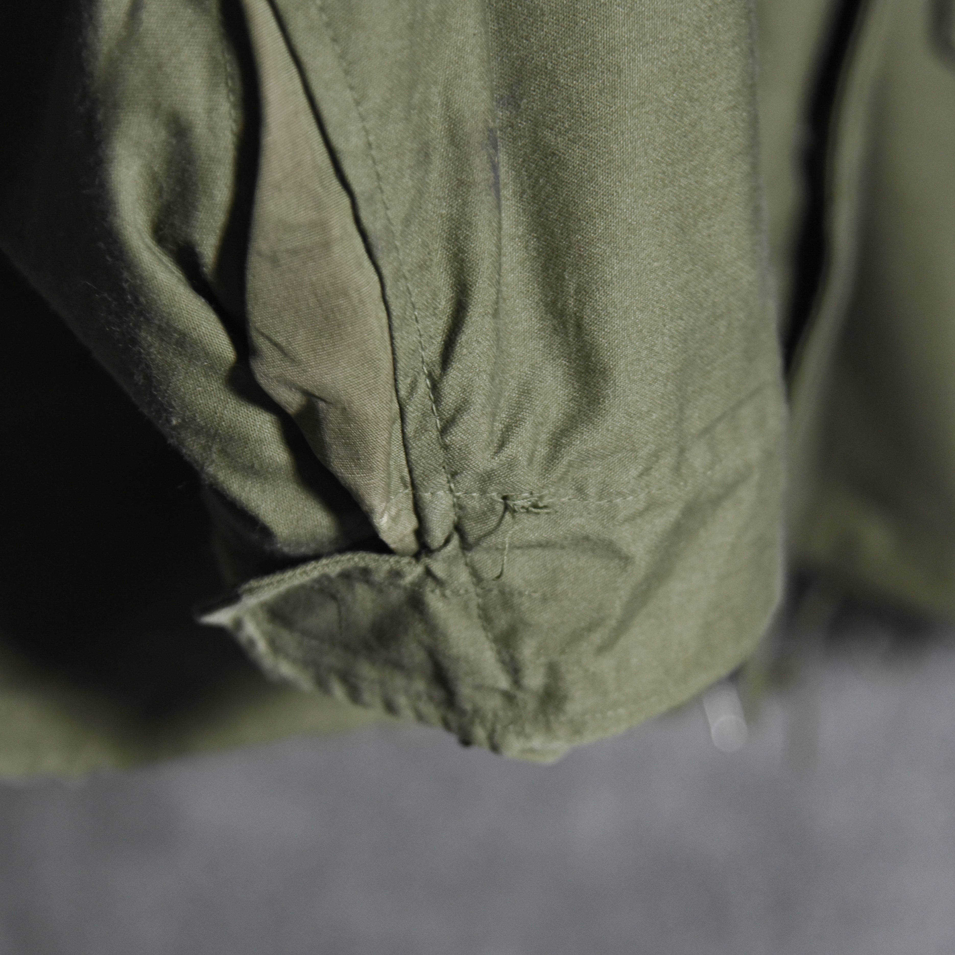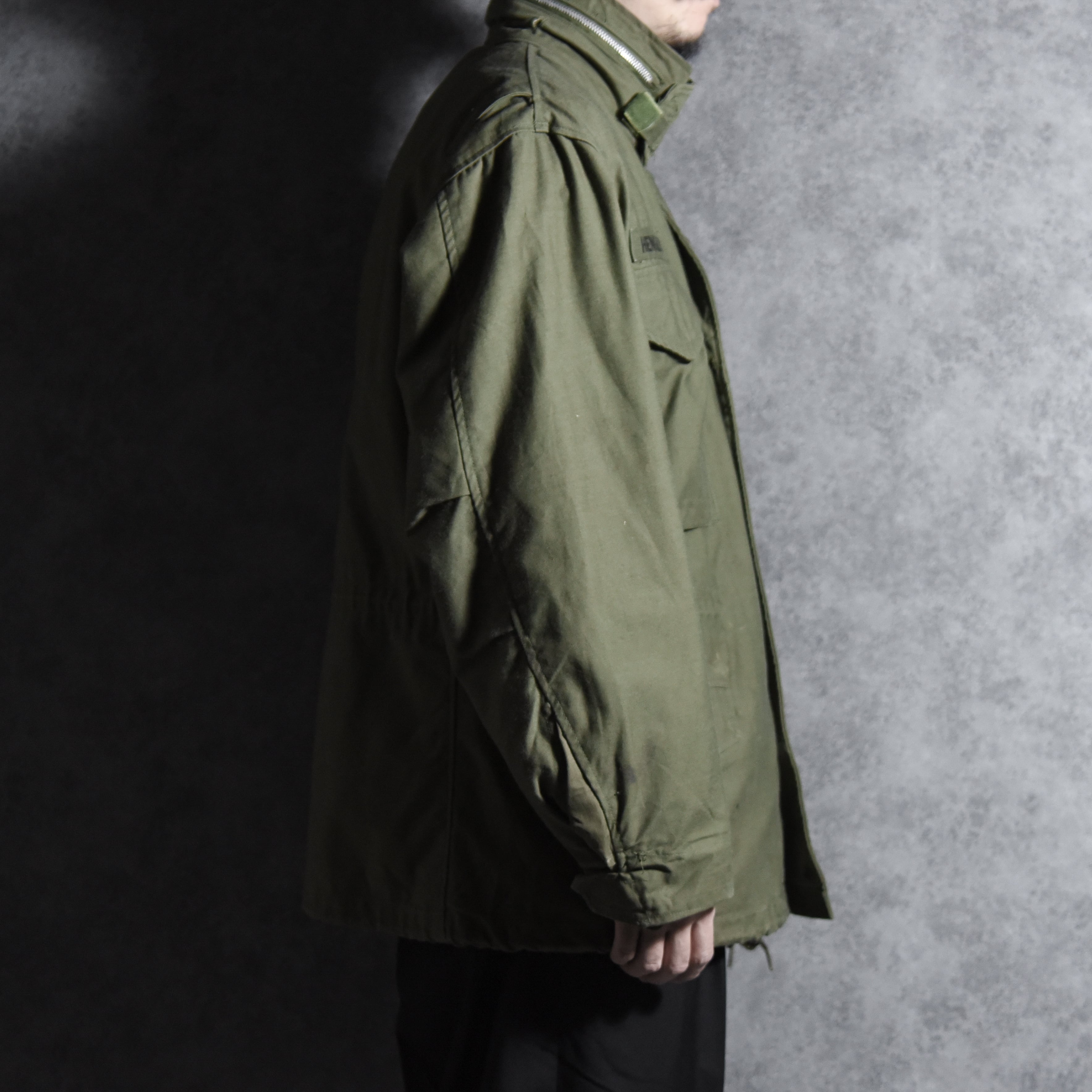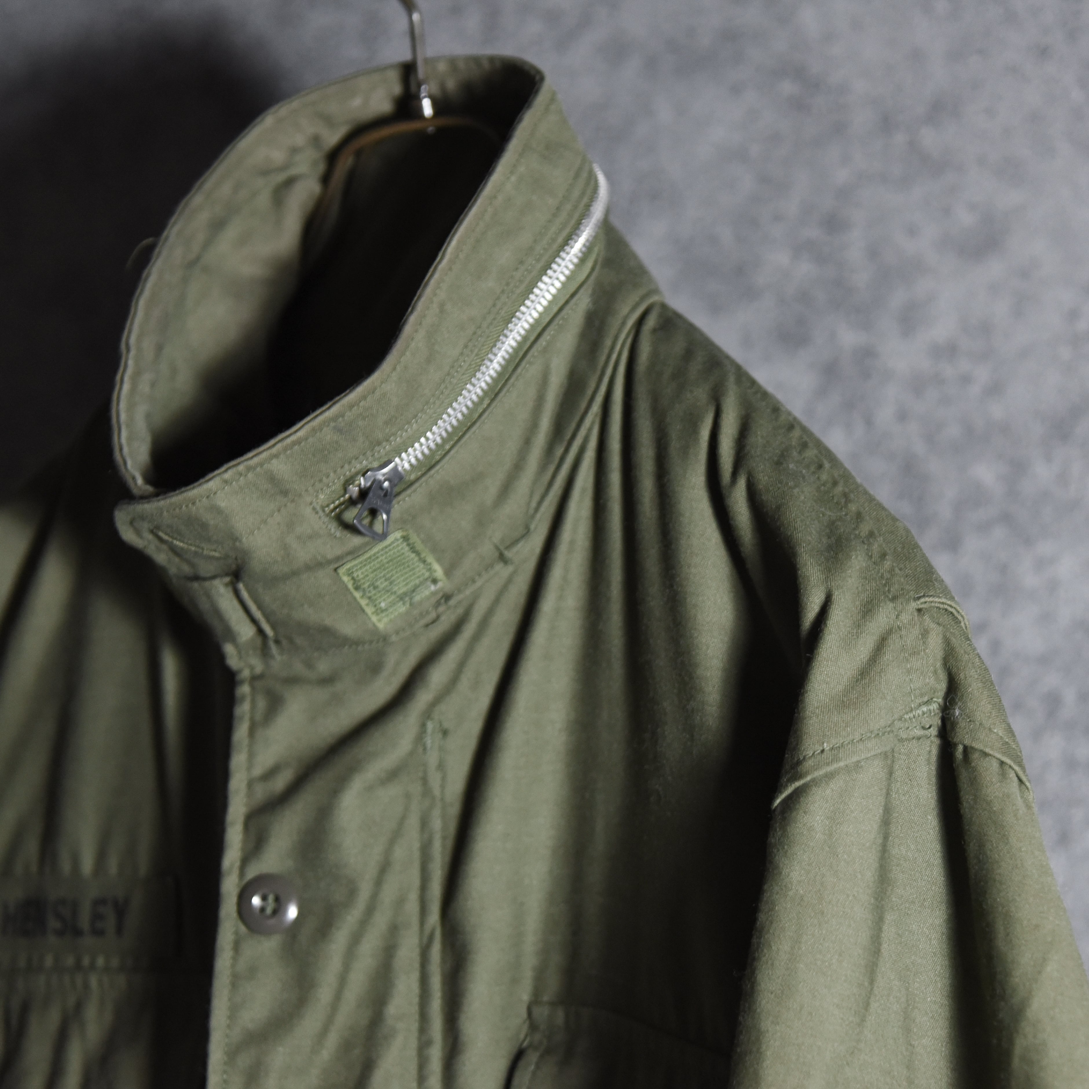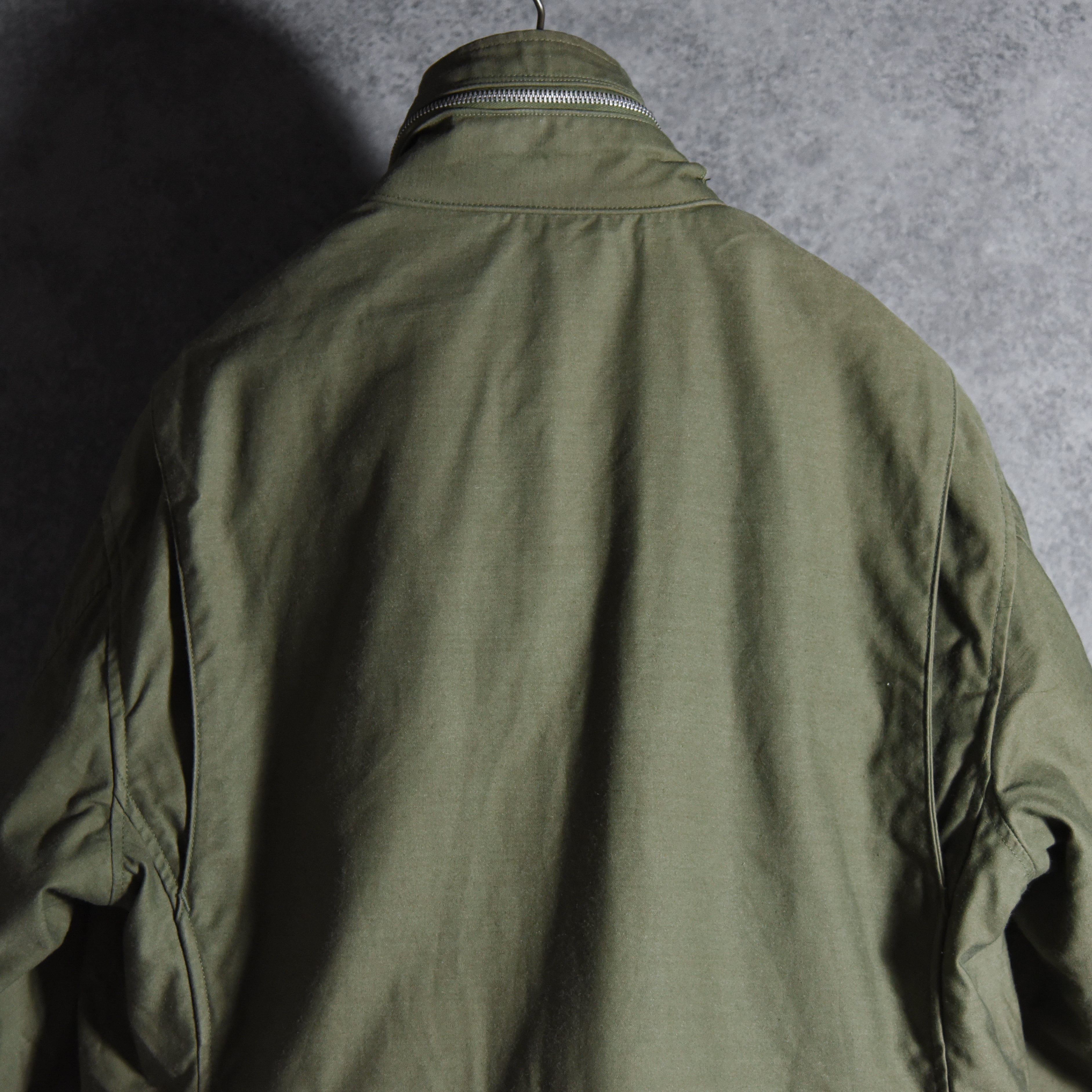 こちらの個体は65-66年の1年間のみ生産された非常に希少なエポーレットなしの最初期モデルで、ベースとなったM51フィールドジャケットにはエポーレットが付いており、後継のM65の2ndモデルにも付くため、この最初期モデルでしかあり得ないディテールというところもマニア心をくすぐります。