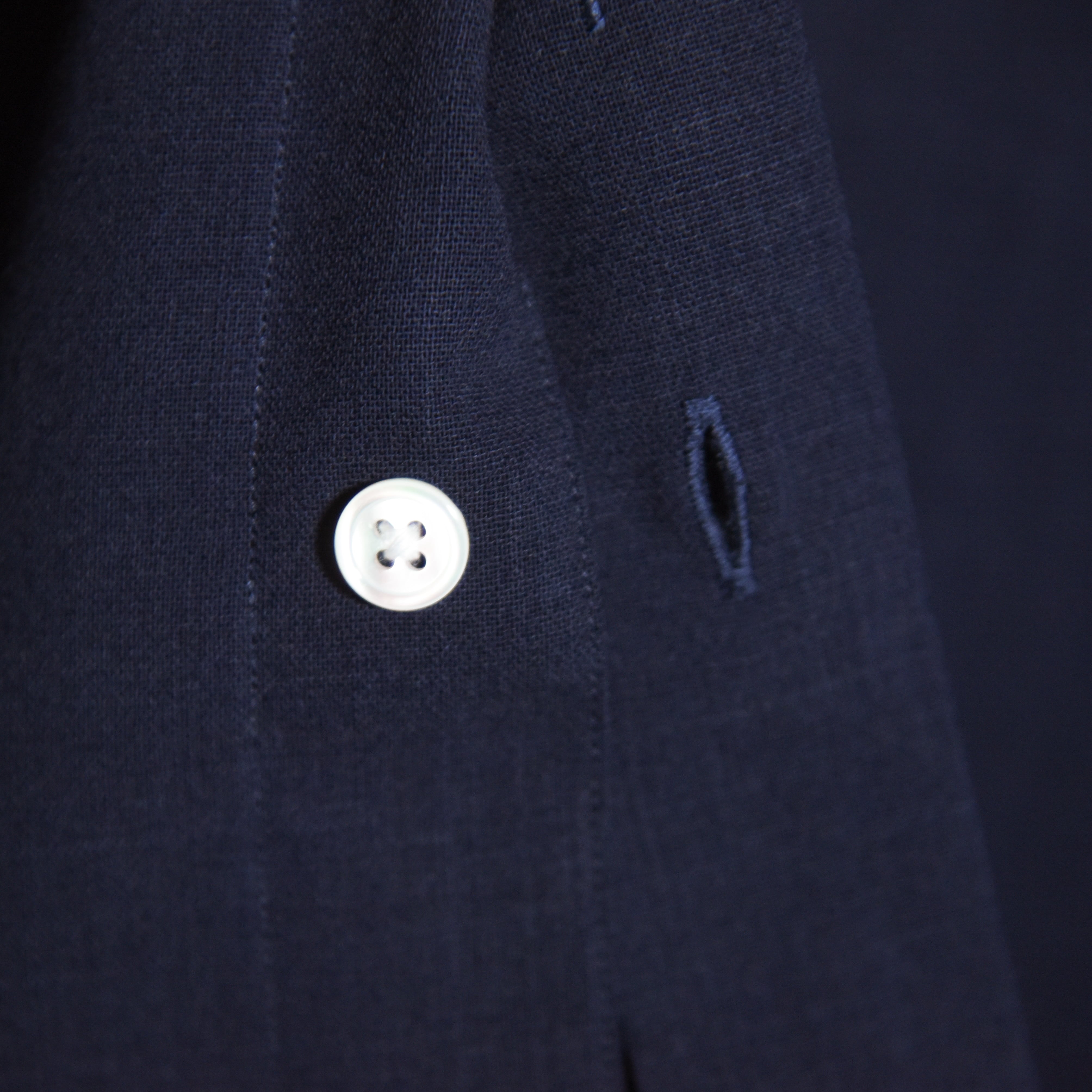 またボタンは天然の貝ボタンで、NAVYには光沢が美しい高瀬貝、BROWNには深い色味が特徴の茶蝶貝から削り出したボタンを使用しています。