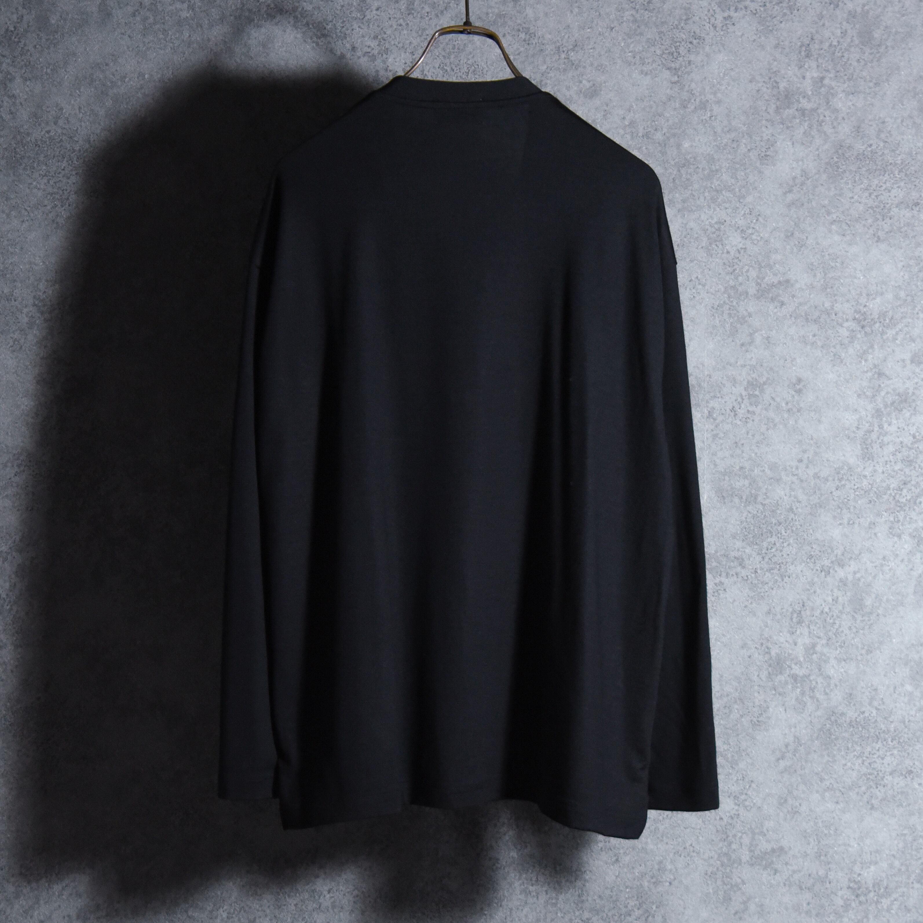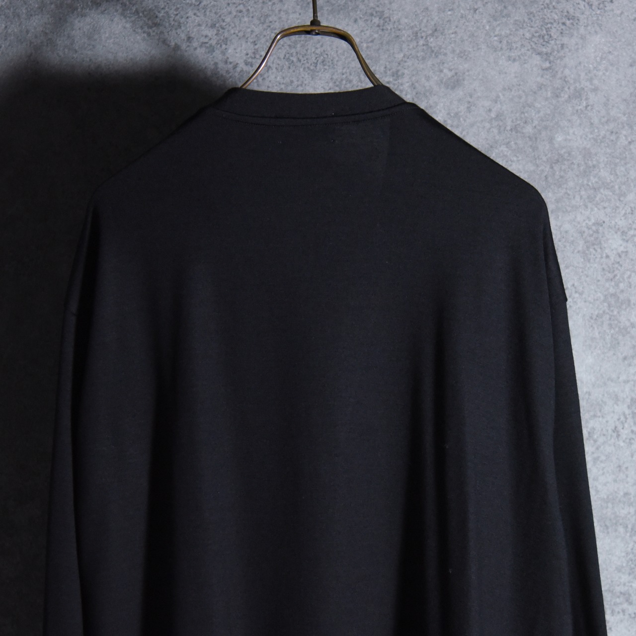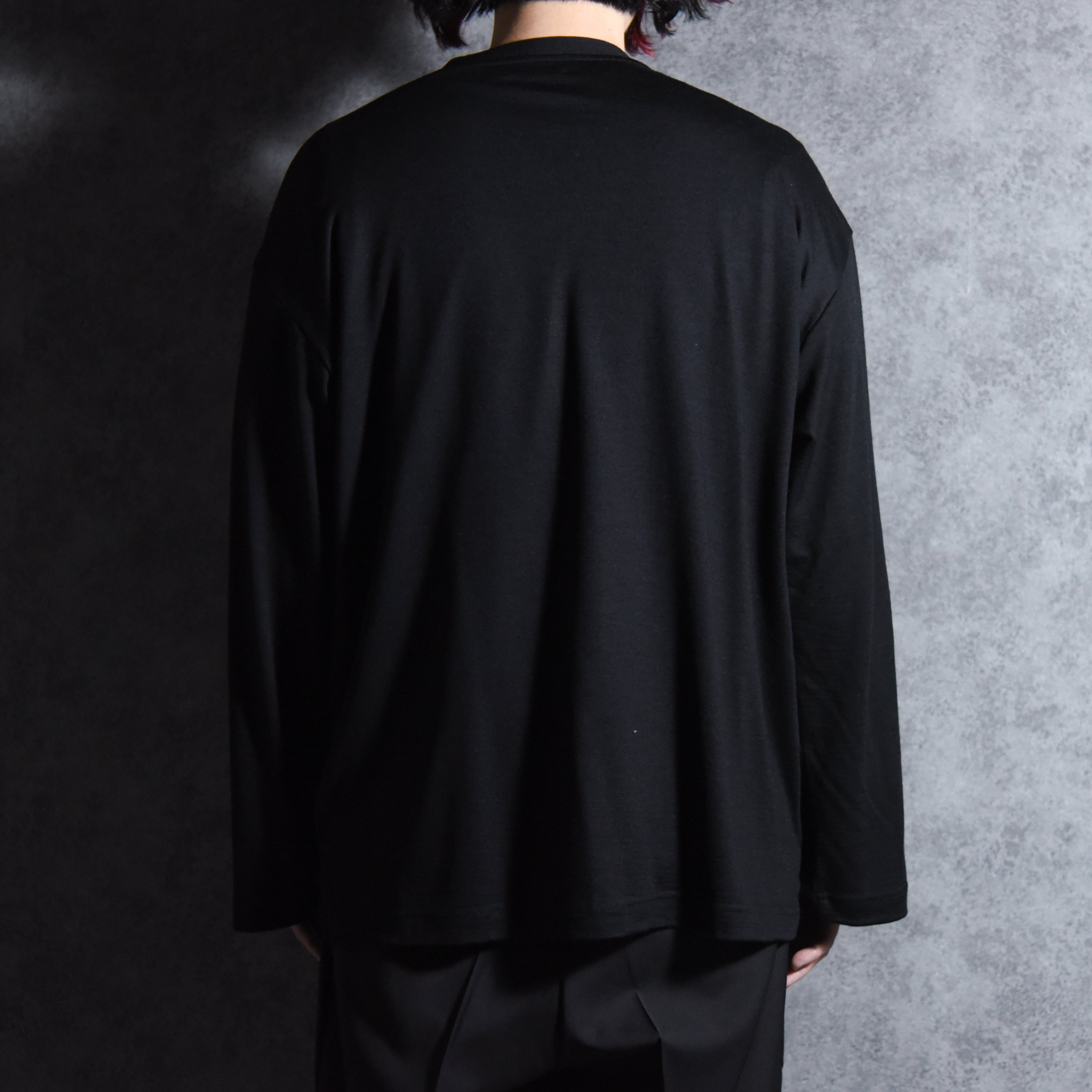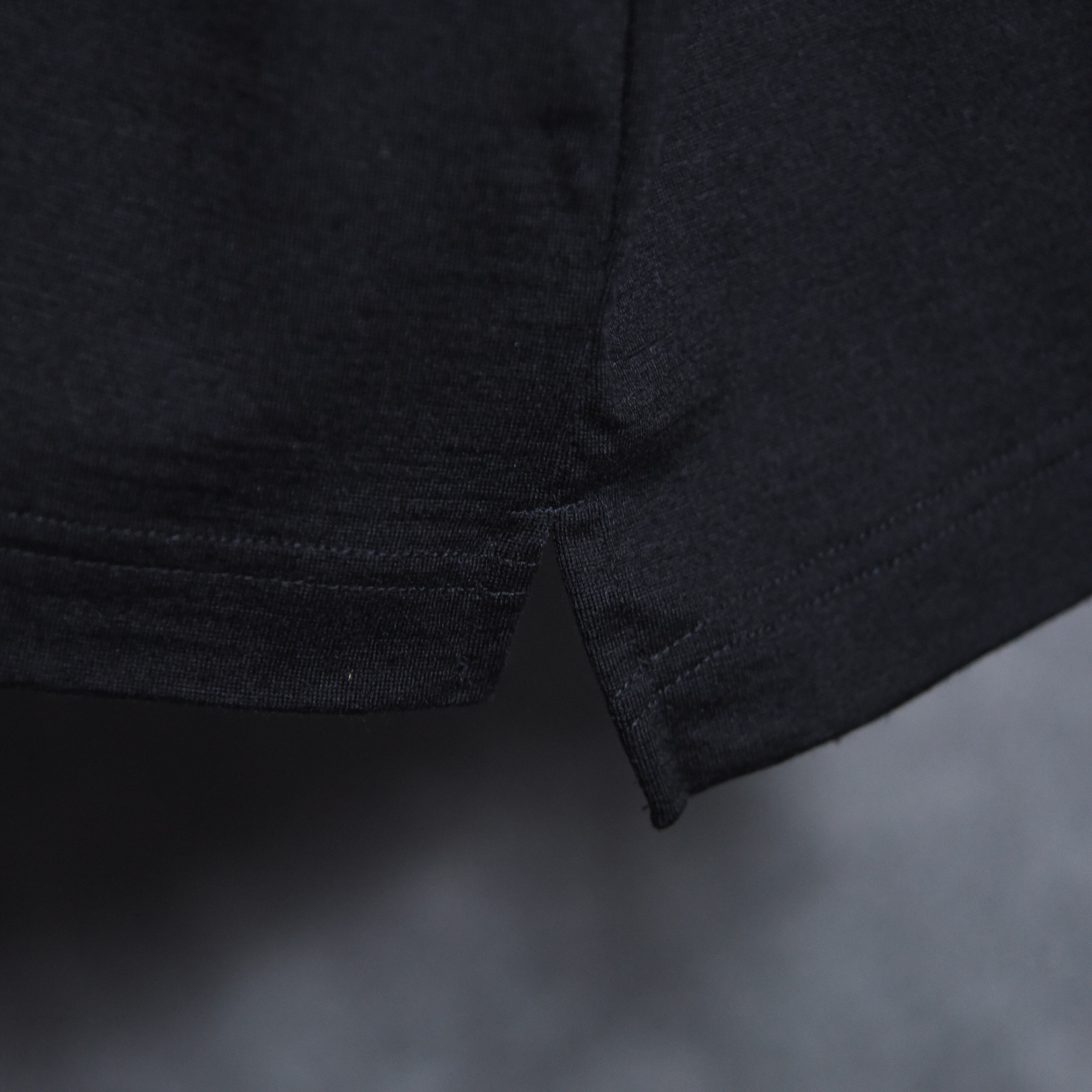 カットソーでは一般的な縫製仕様ですが、サンプル段階で何種類もの縫い方を試し、ミシンの速度を落とすなど生産効率を度返しして、柔らかいウール地の風合いを活かしつつ、最も綺麗に縫える方法が追及されています。
