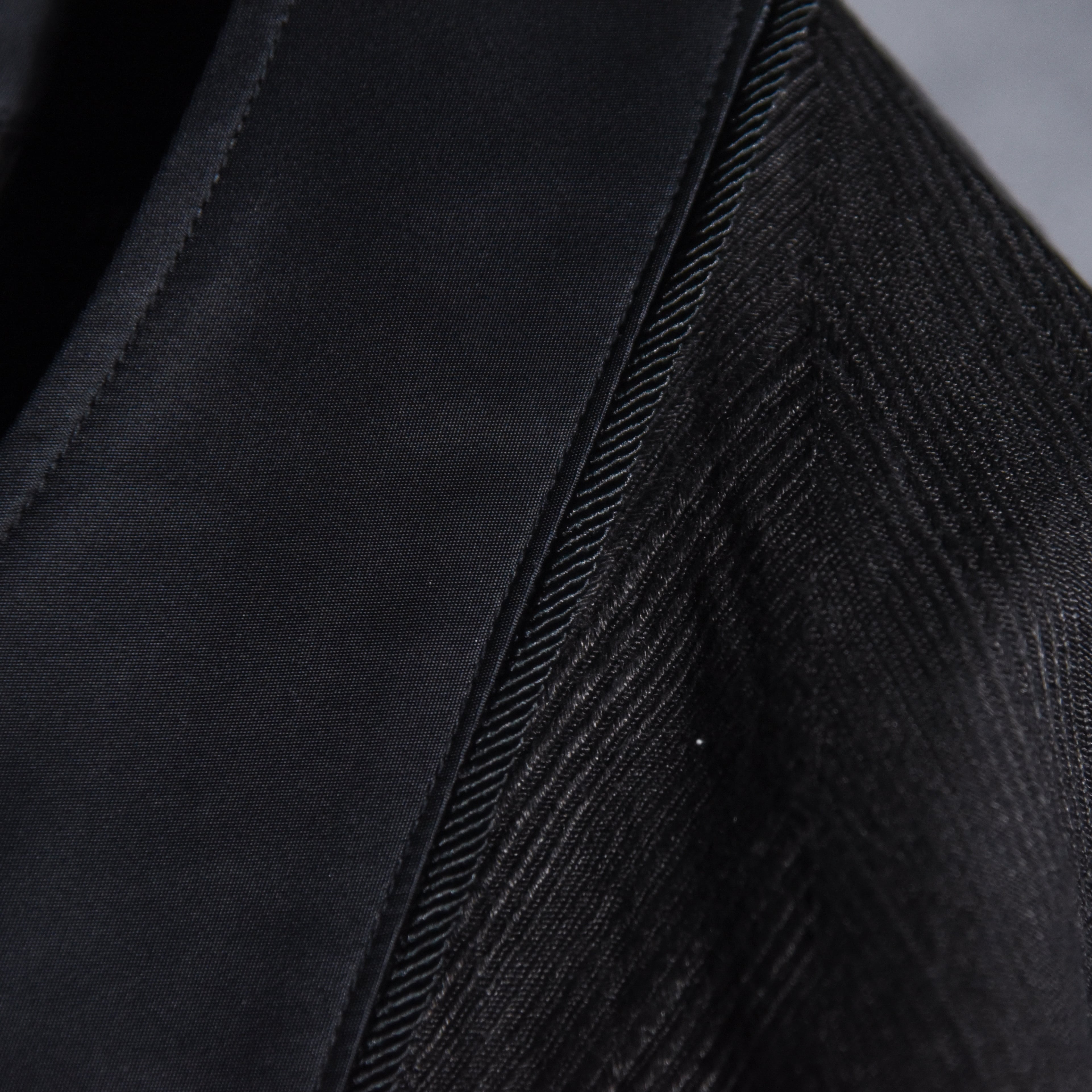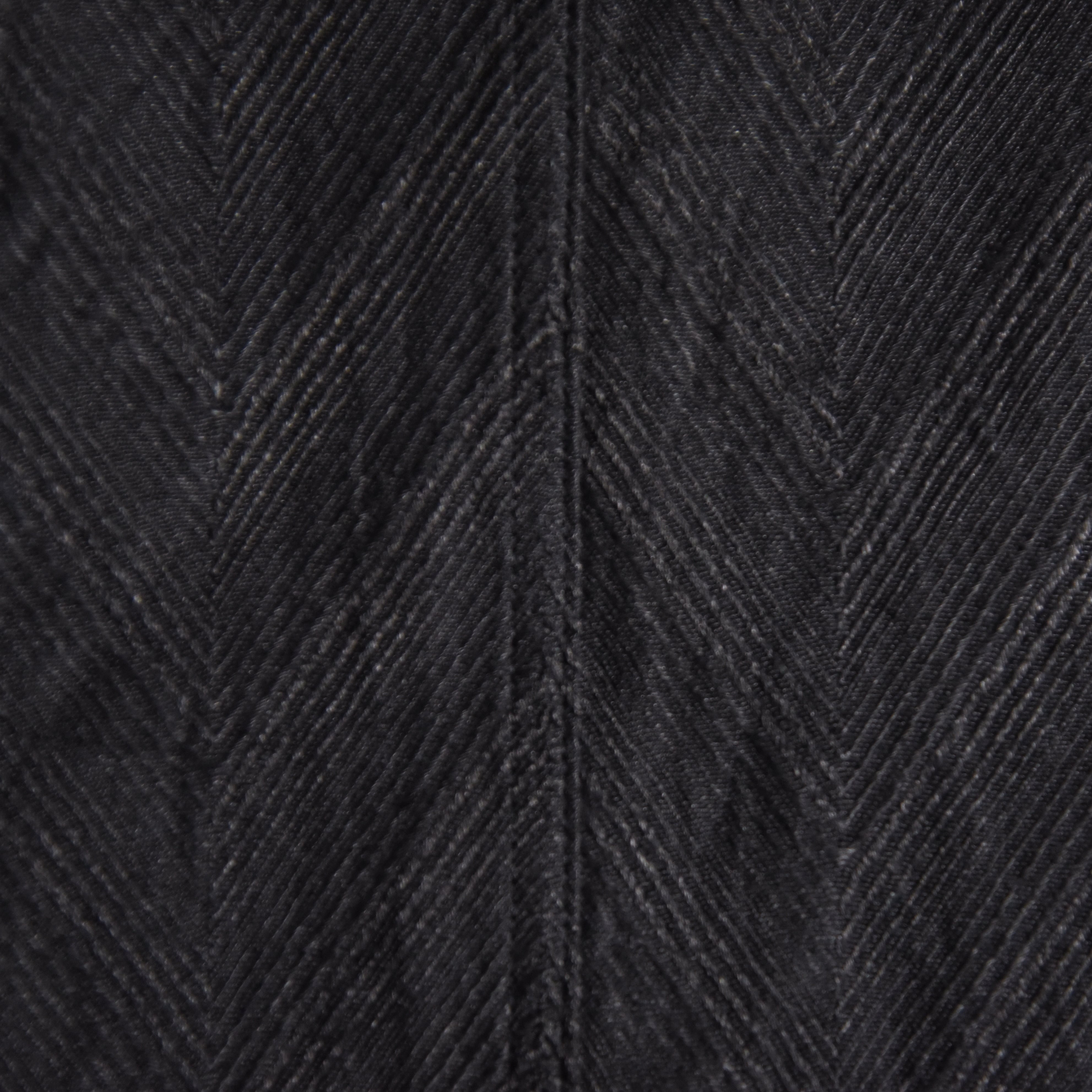 一般的なヘリンボーンよりかなり大柄の特徴的なリピートで、国内でも現存数の少ないジャガード織り機によって生み出された、まるで彫刻のような立体感を持つ唯一無二の表情が魅力です。