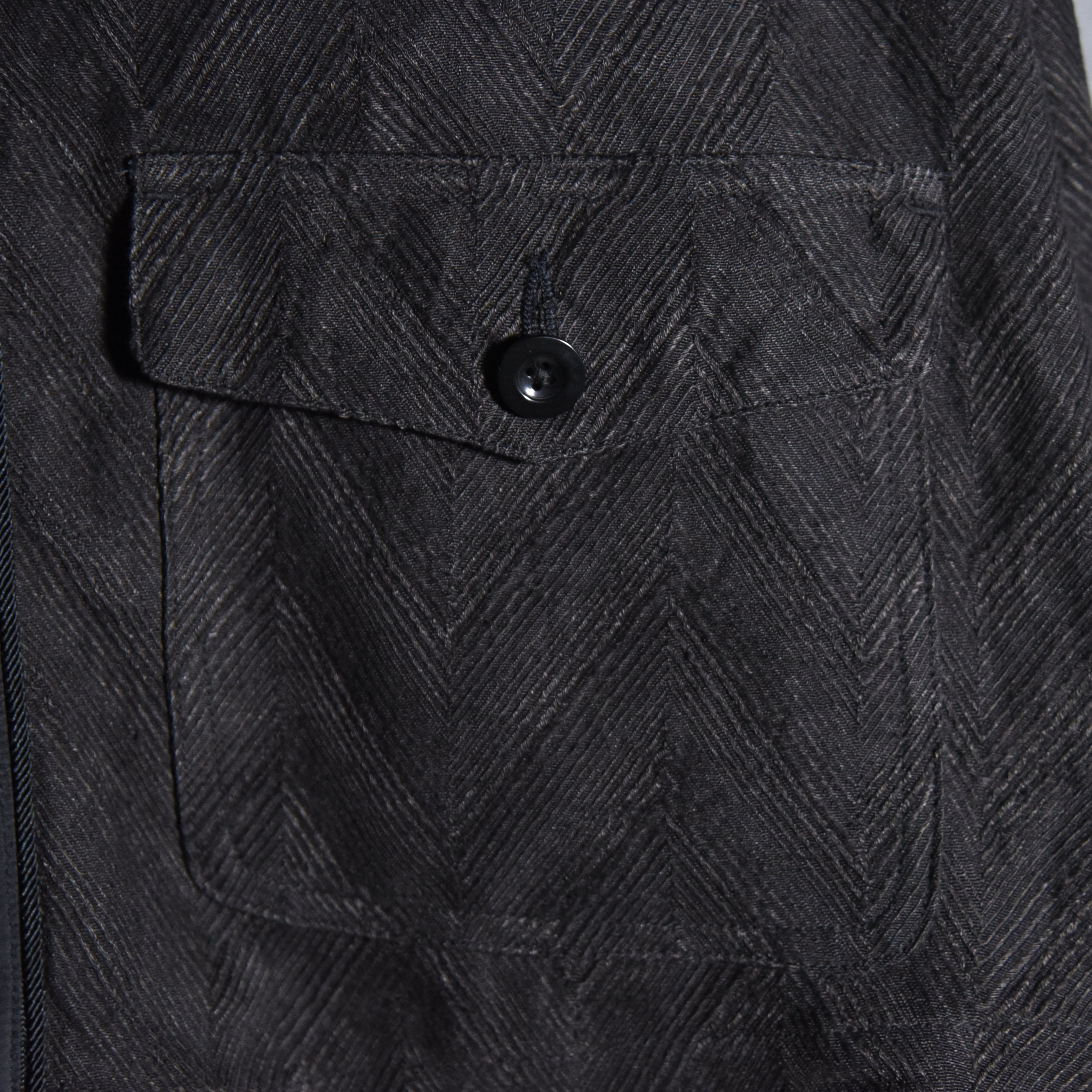 1900年代初頭のフランスのサーヴァントジャケットのスタイルを踏襲しつつ、デザインや素材使いをアレンジし、全く新しいジャケットにリモデルされた圧倒的存在感を放つ一着。