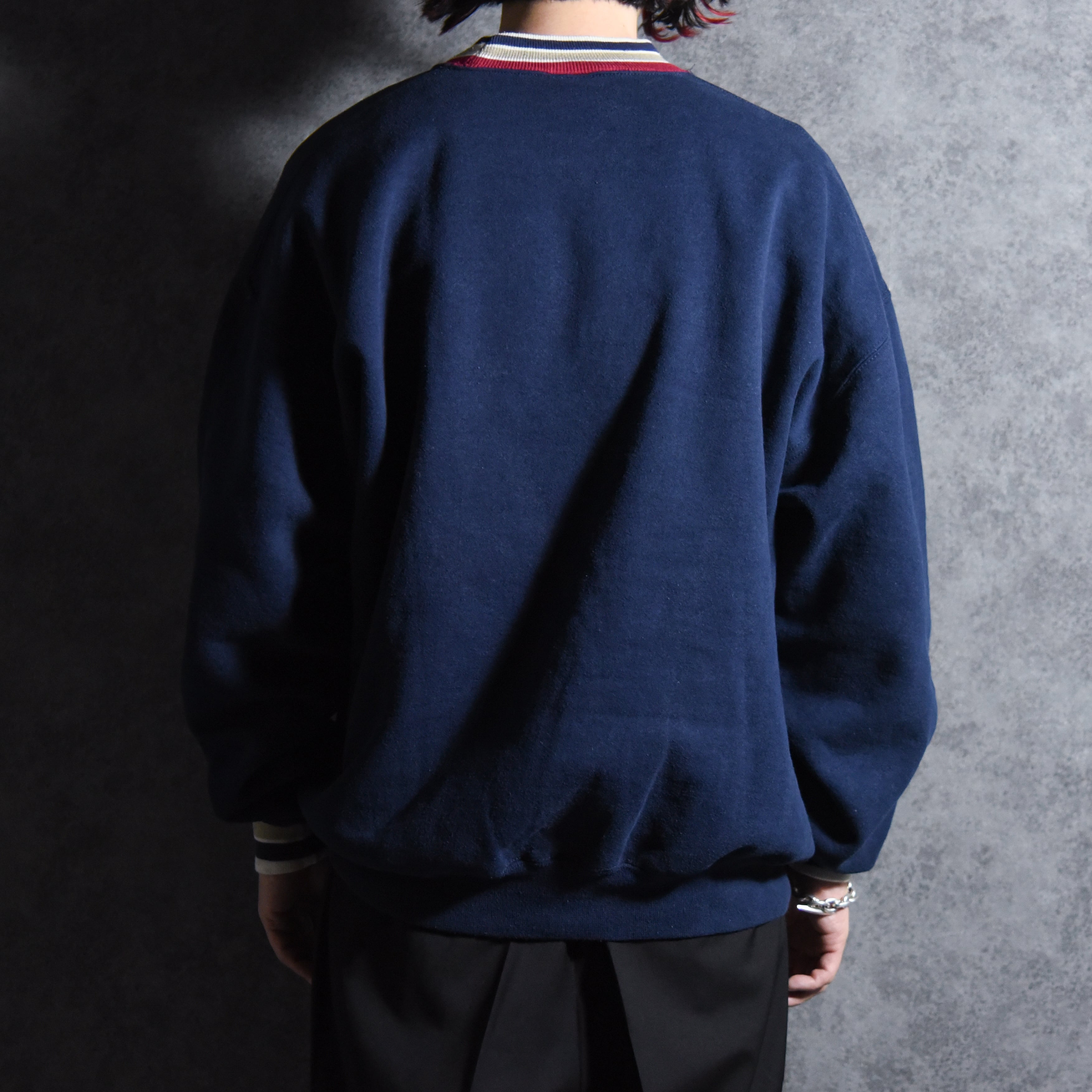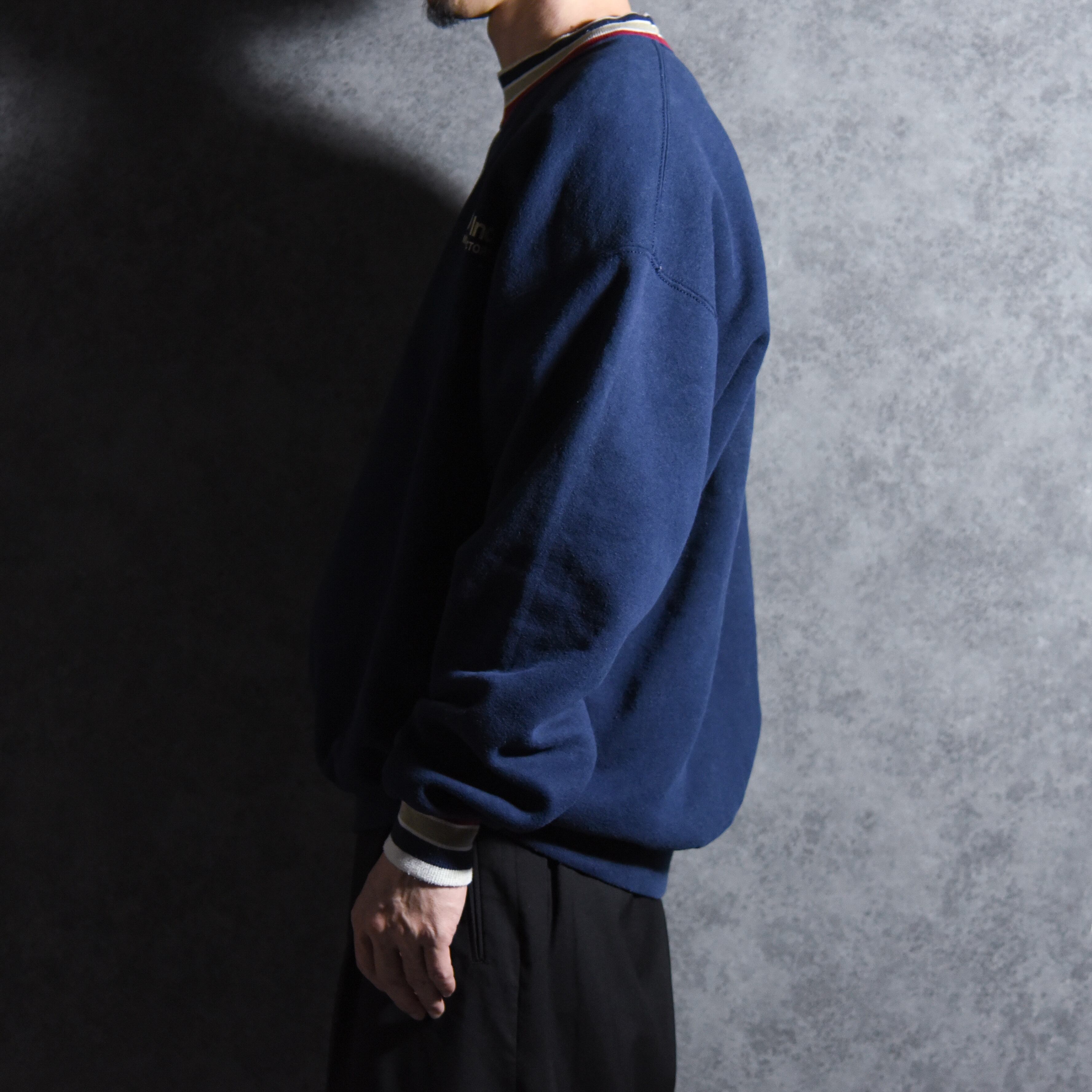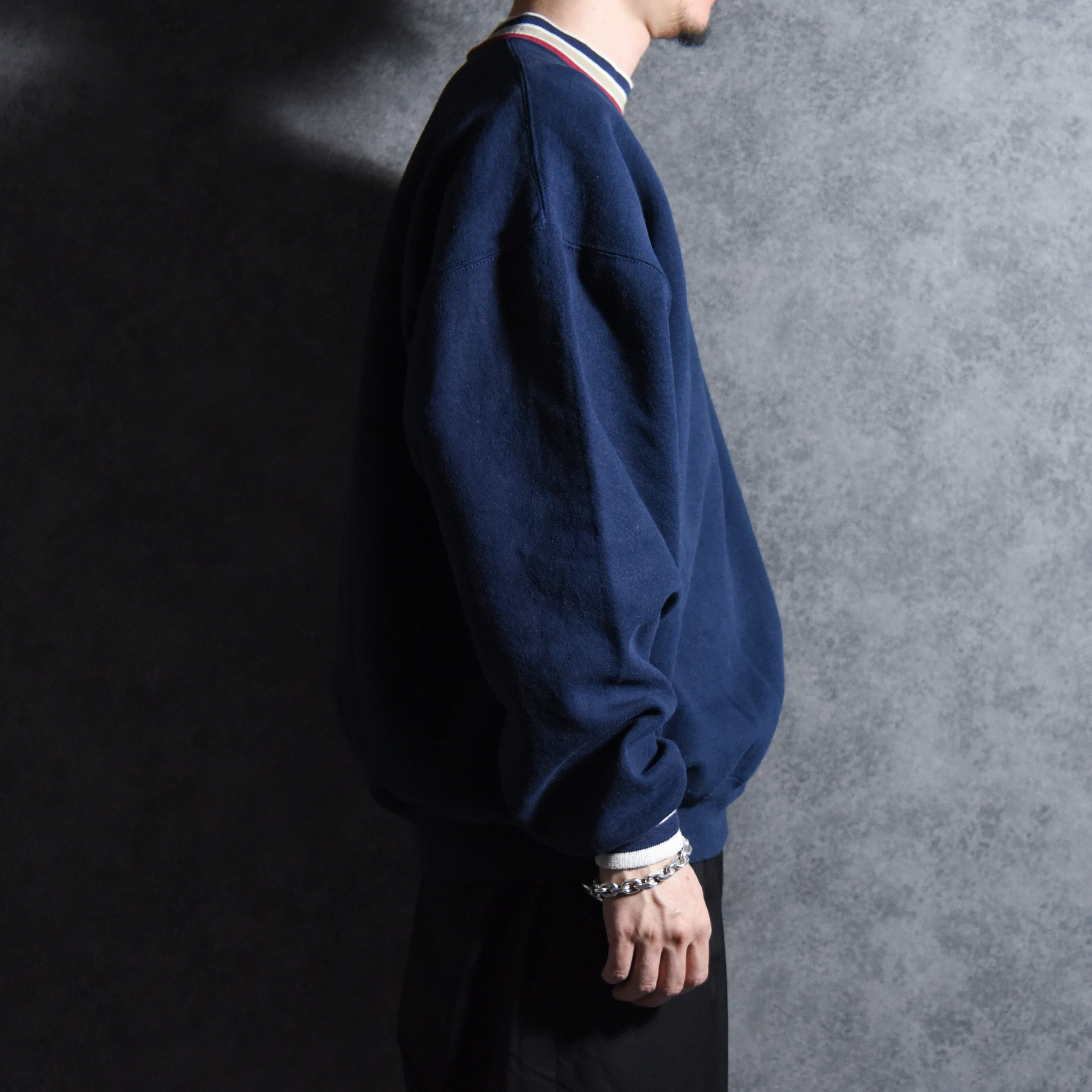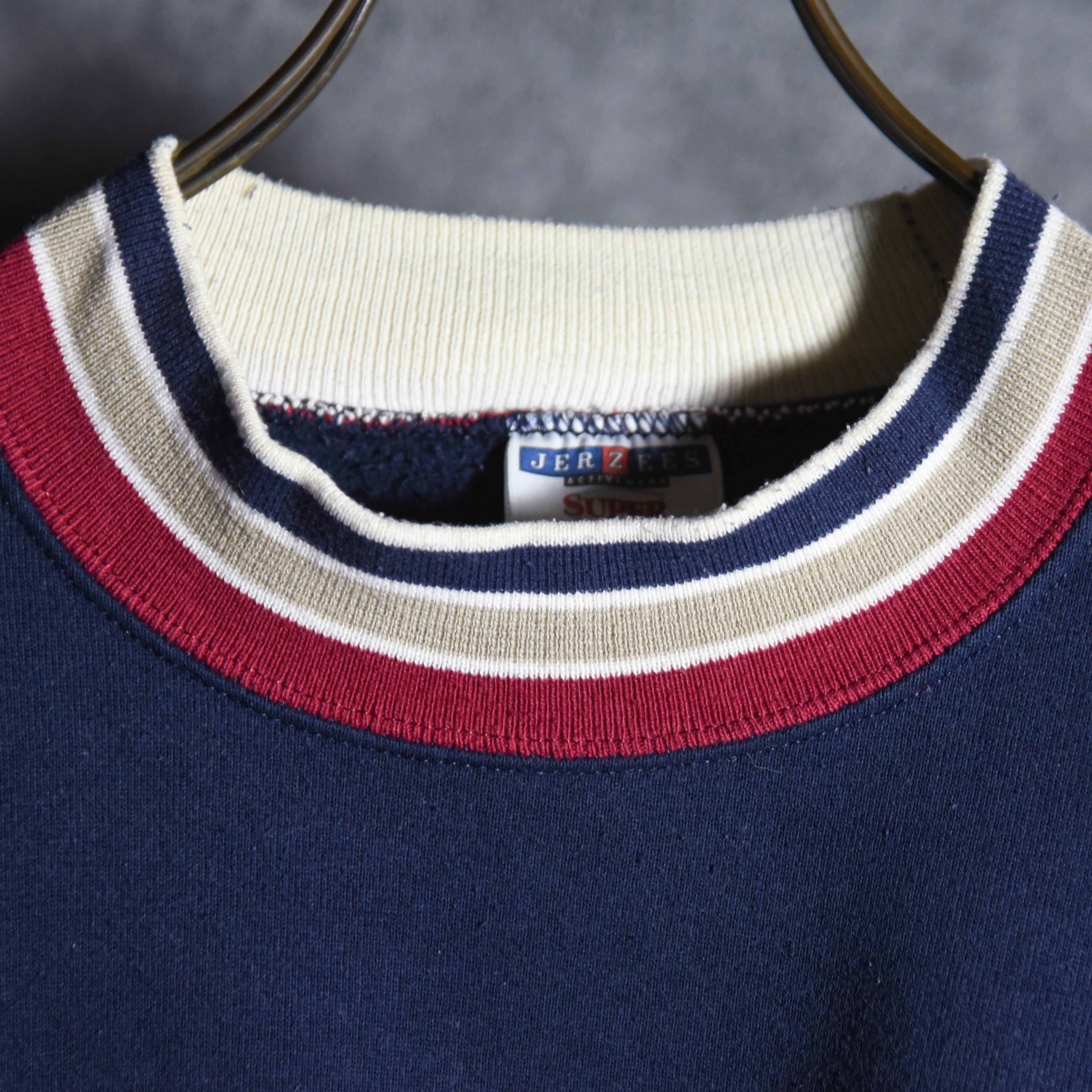 90s JERZEES Line Rib Crew Neck Sweat Made in USA Black ジャージーズ ラインリブ クルーネック スウェット アメリカ製 ブラック