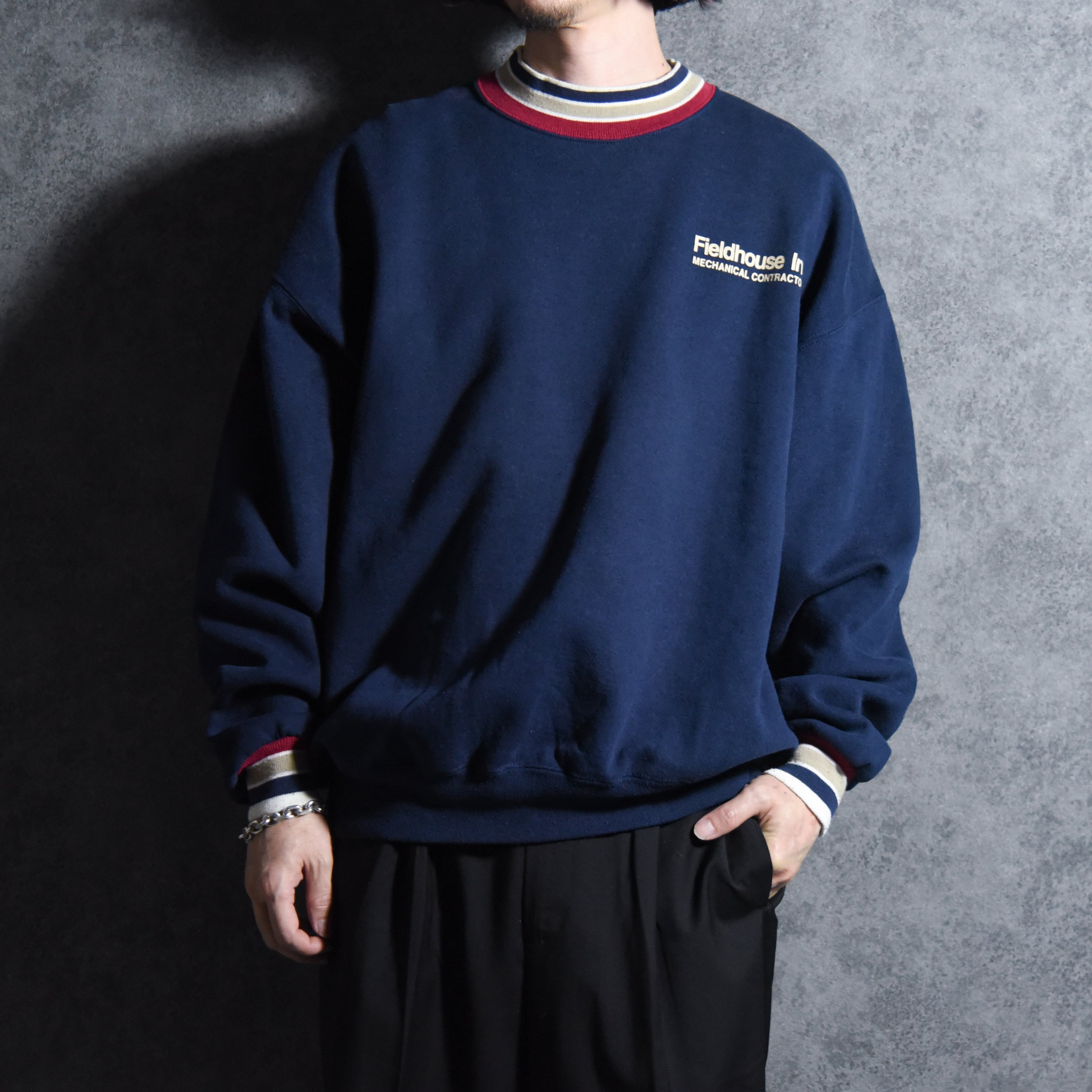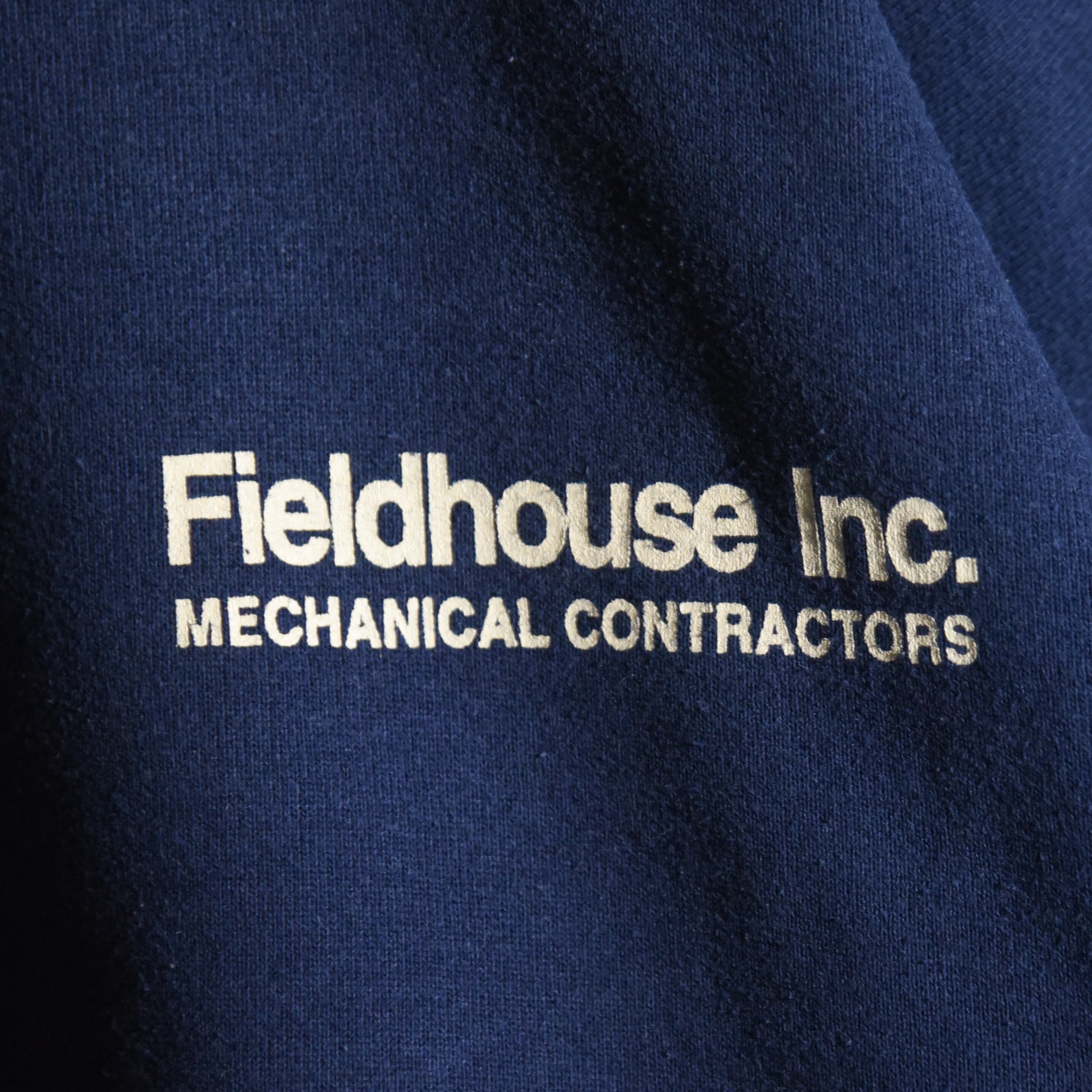 左胸のロゴのFieldhouse Inc. は、アメリカのインディアナ州ハイランドに拠点を置いていた商業施設や工場の巨大な空調システム、配管、冷凍・冷蔵設備などの設計から施工まで行う実在の企業です。