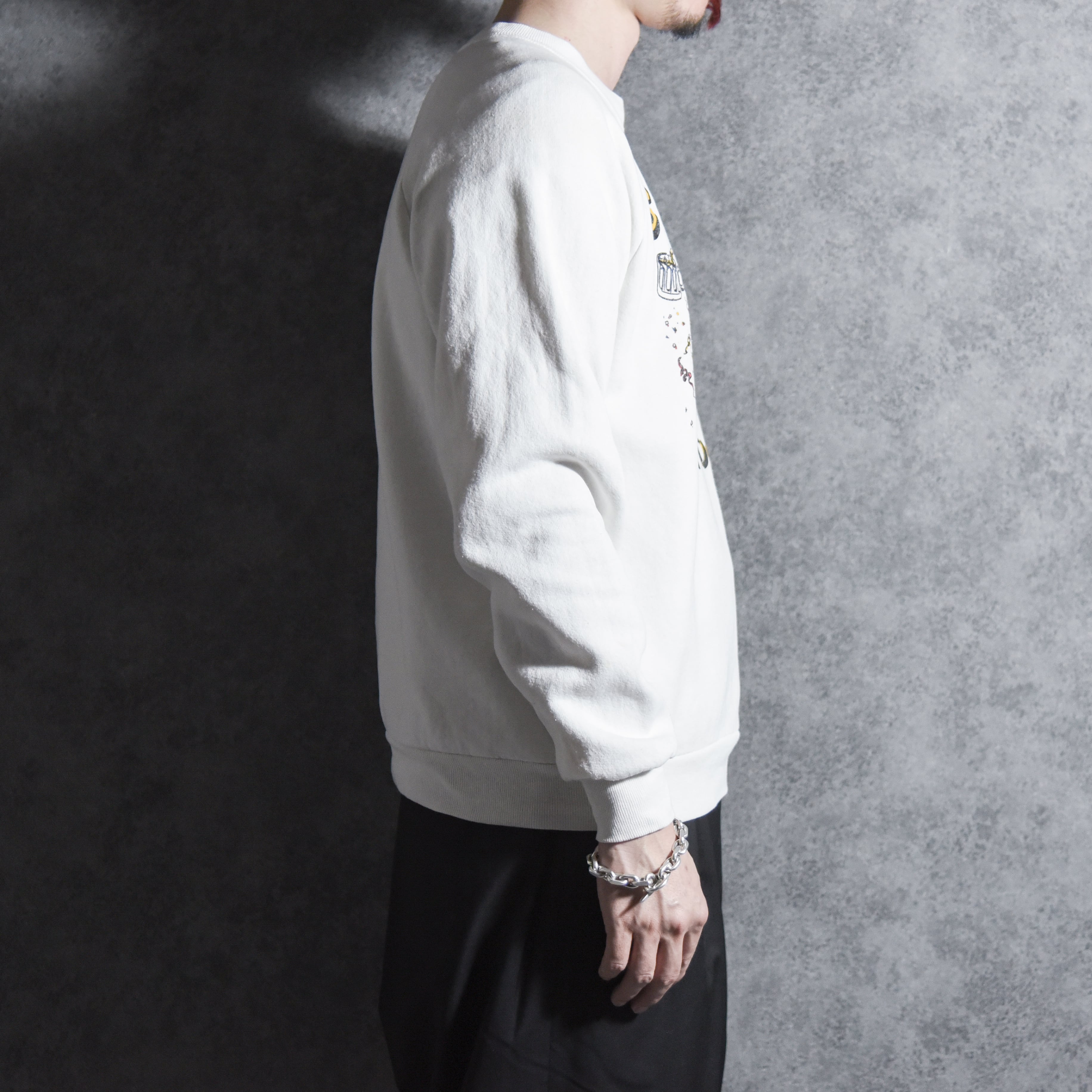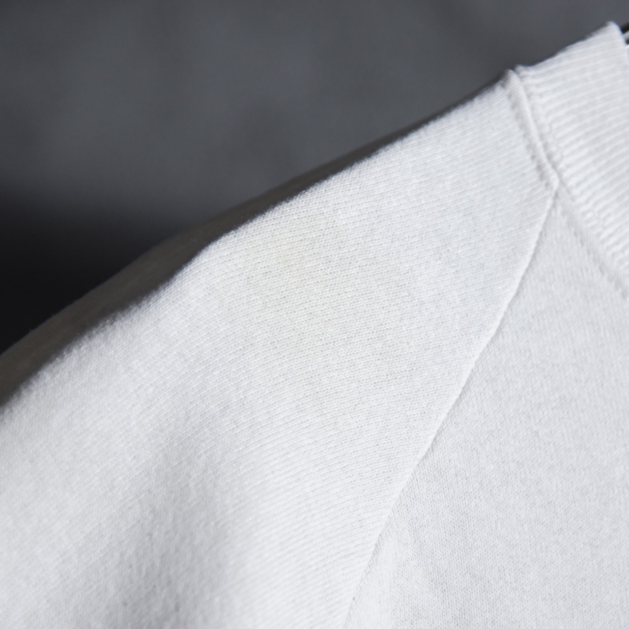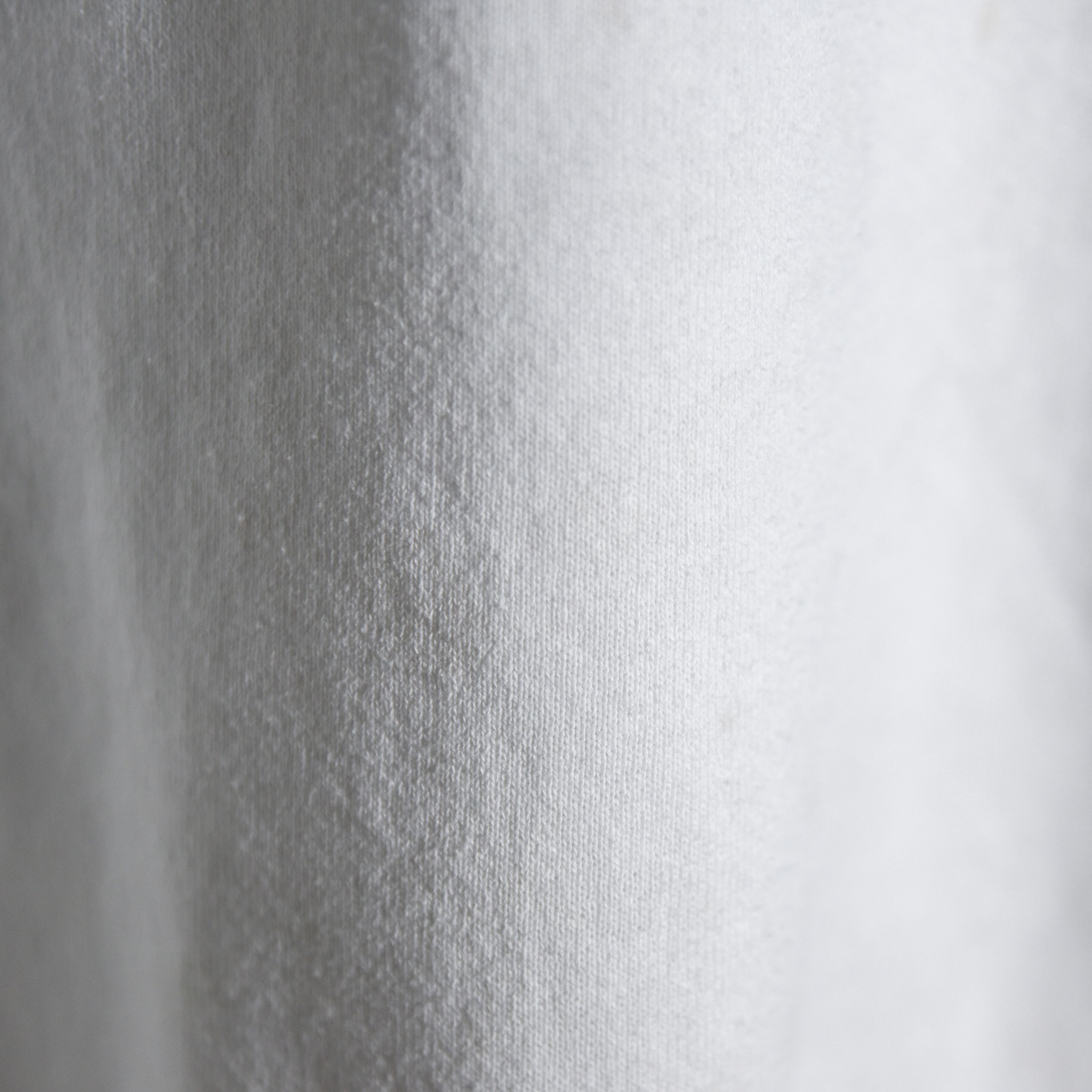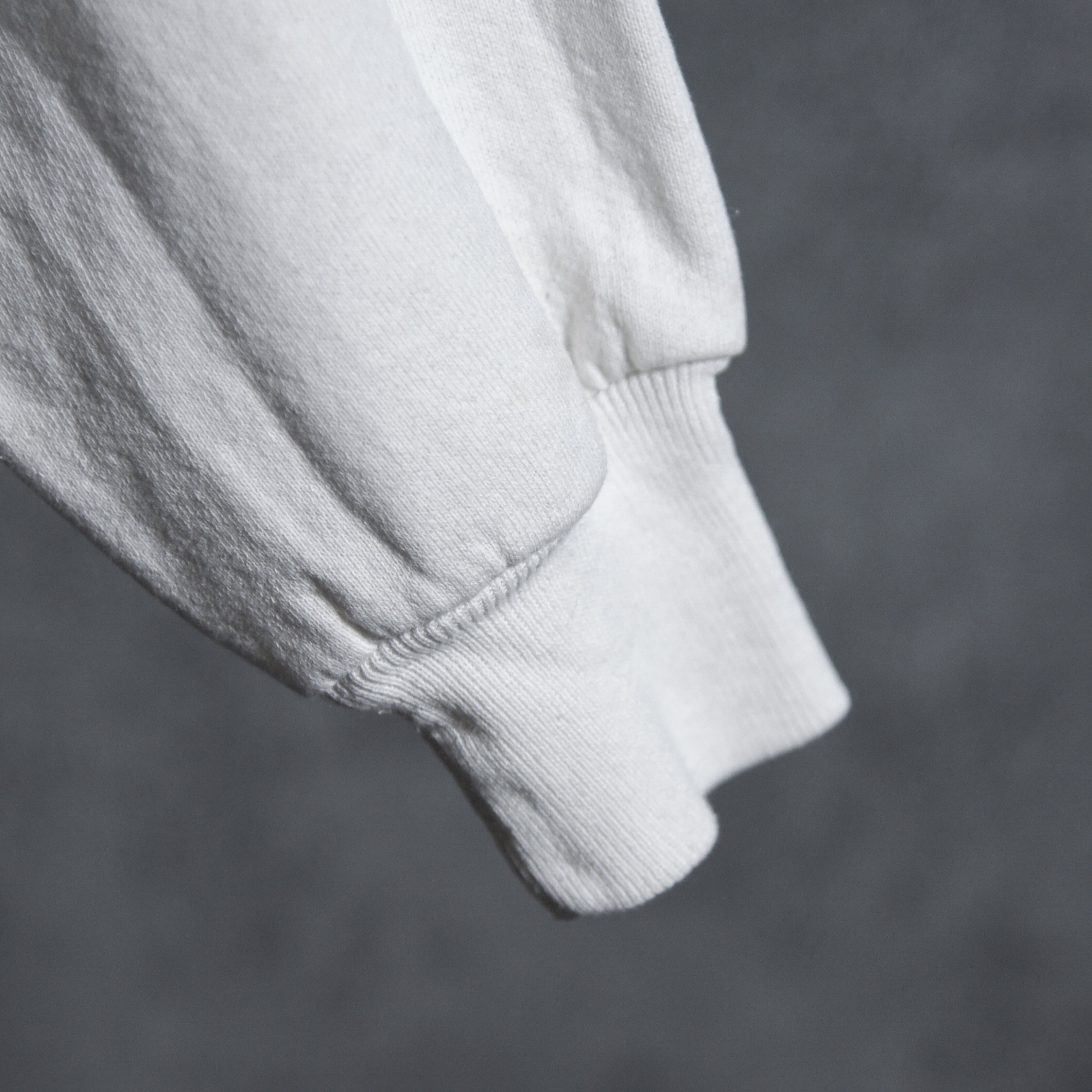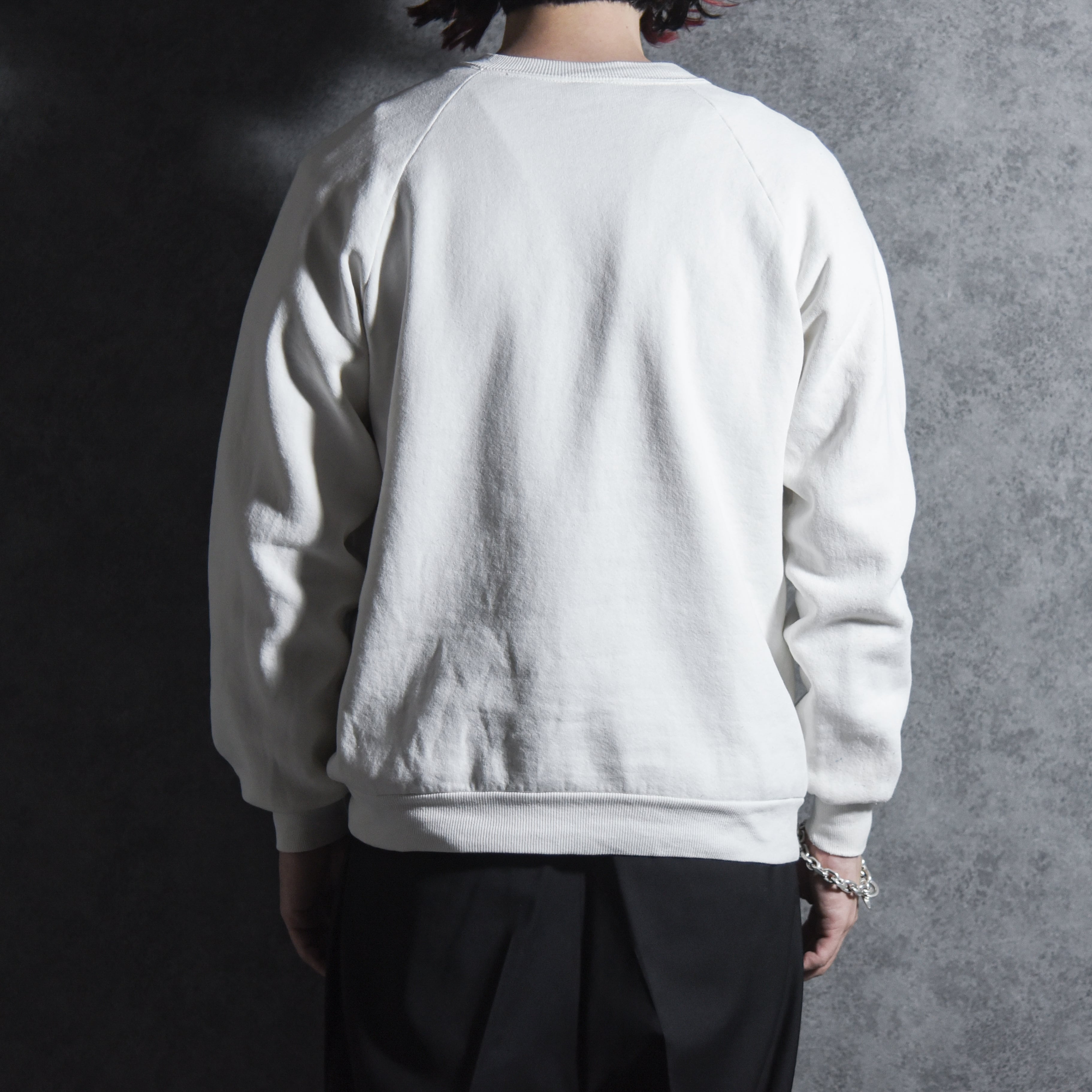 生地は柔らかさのあるコットン×ポリエステルの裏毛で、袖付けはラグランスリーブ、全体的に比較的コンパクトなメンズM程度のサイズ感ということもあり、すっきり一枚で着るのはもちろん、インナーとしても使いやすいデザイン、シルエットです。