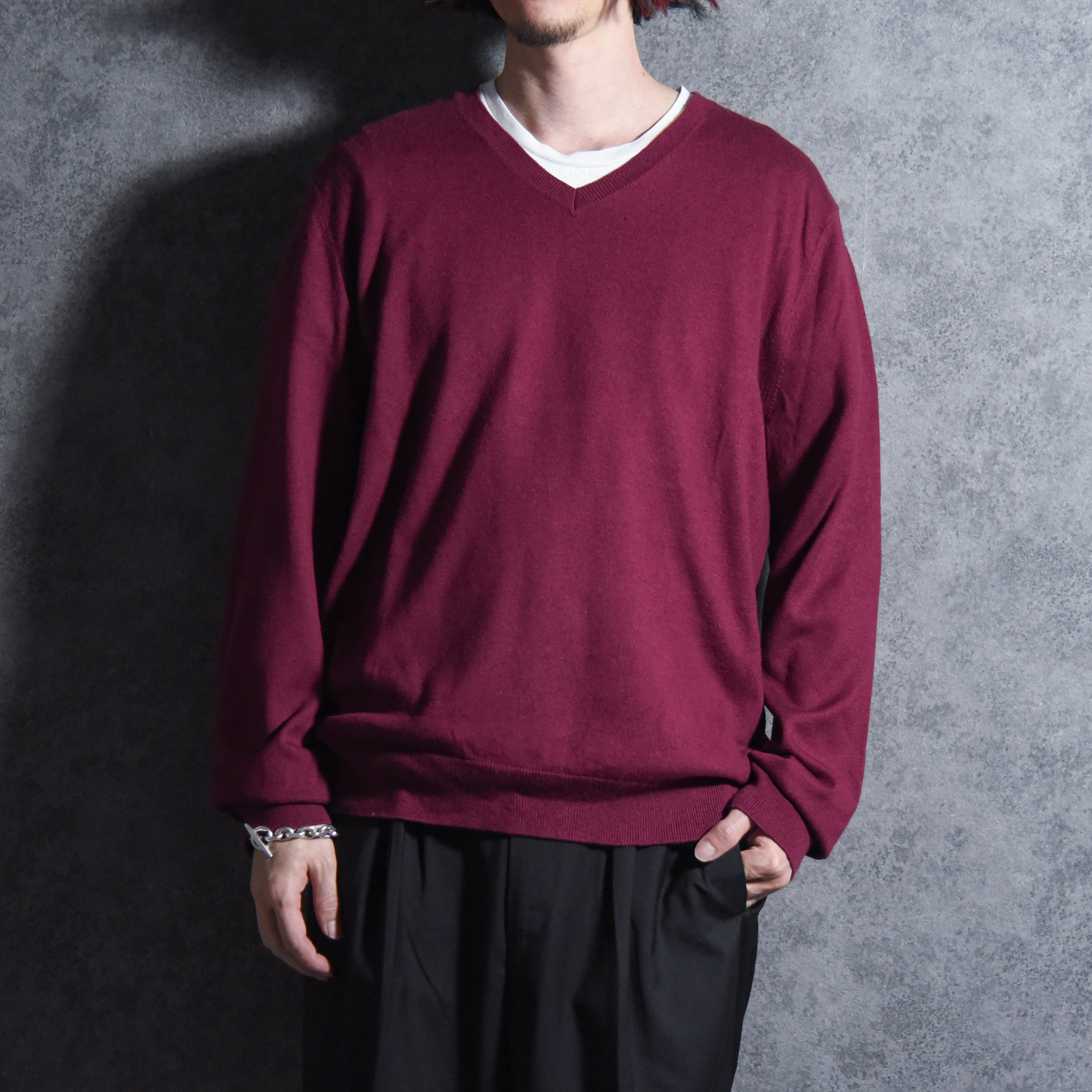 00s BANANA REPUBLIC Silk Cotton Cashmere V Neck Sweater バナナ リパブリック Vネック ヴィンテージ セーター ワインレッド
