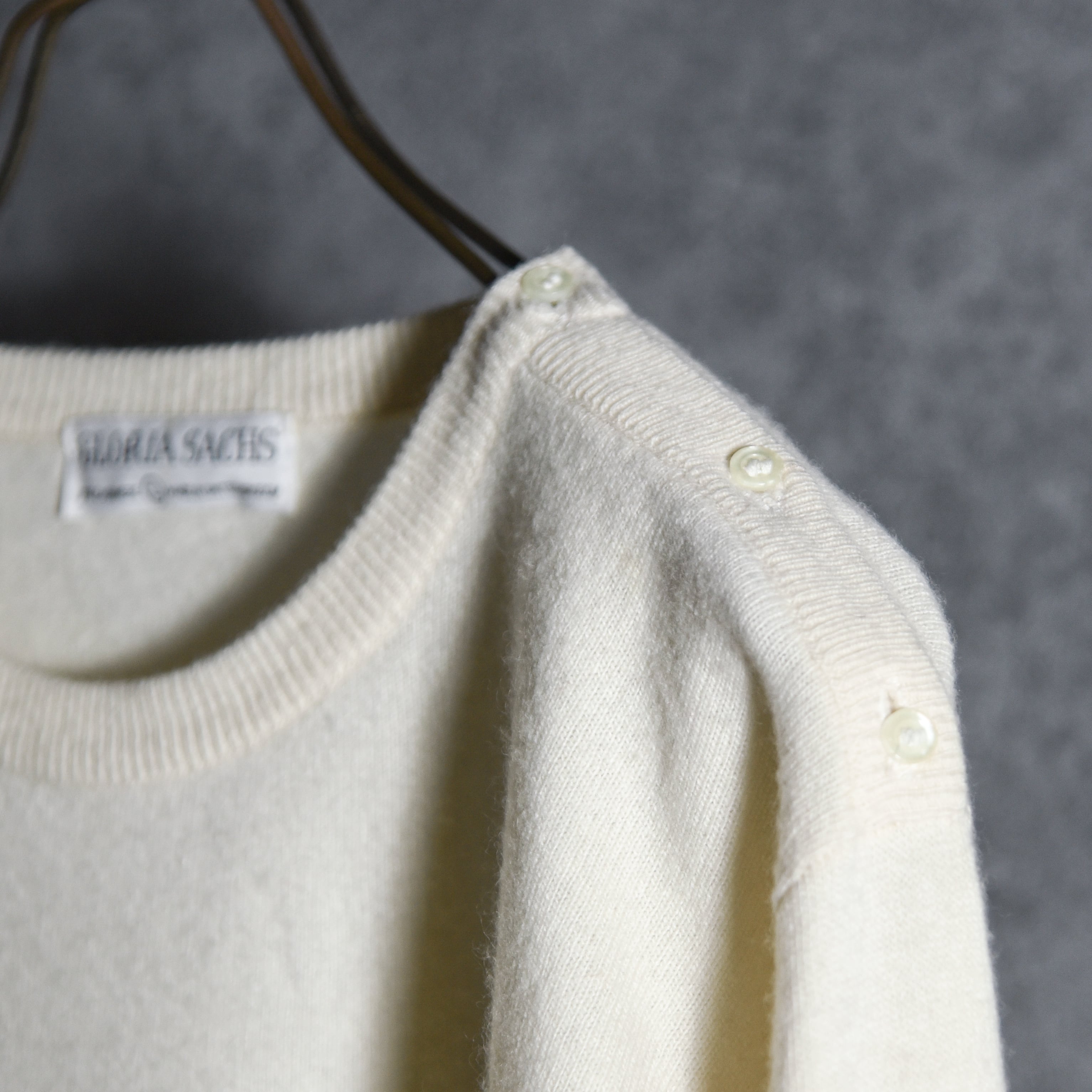 80-90s Gloria Sachs Cashmere Crew Neck グロリア・サックス カシミヤ クルーネック ショルダーボタン ニット