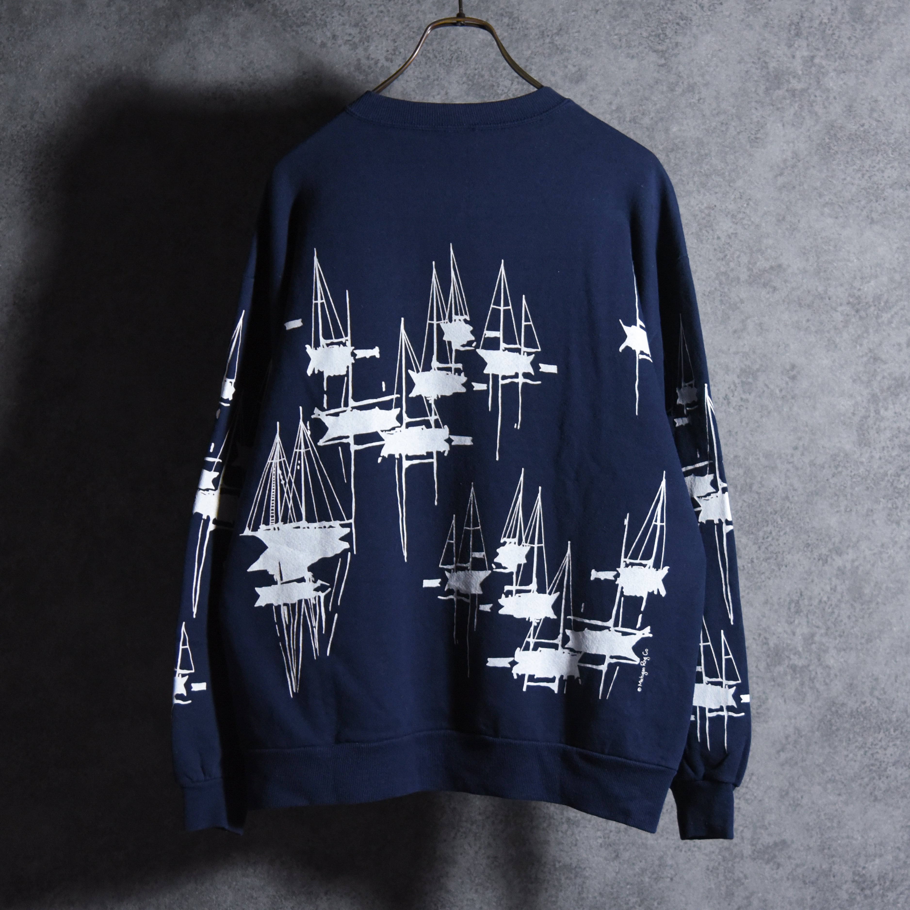 90s Michigan Rag Yacht All Over Print Crew-neck Sweat ミシガンラグ ヨット 総柄 クルーネック スウェット
