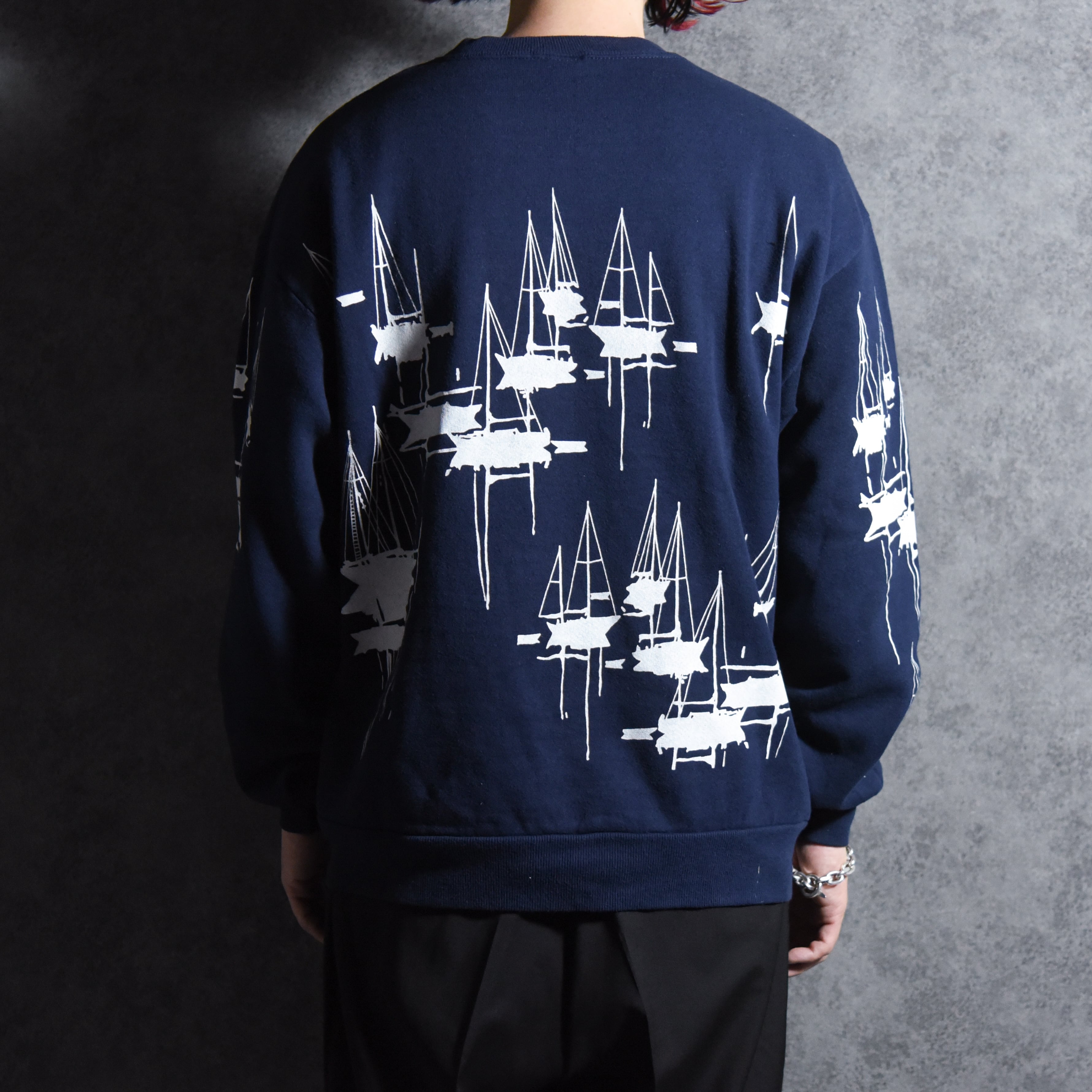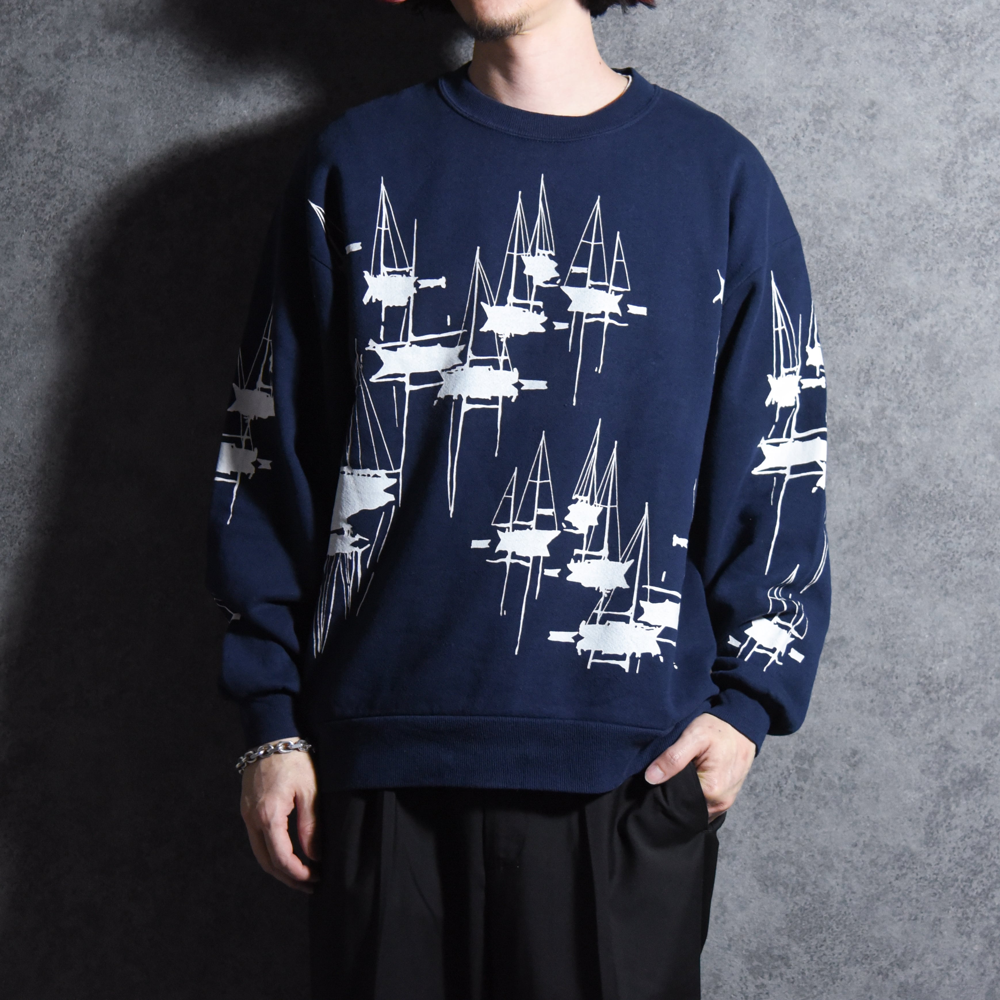 ミシガンラグより、90年代製のヨット総柄クルーネックスウェットをご紹介。
