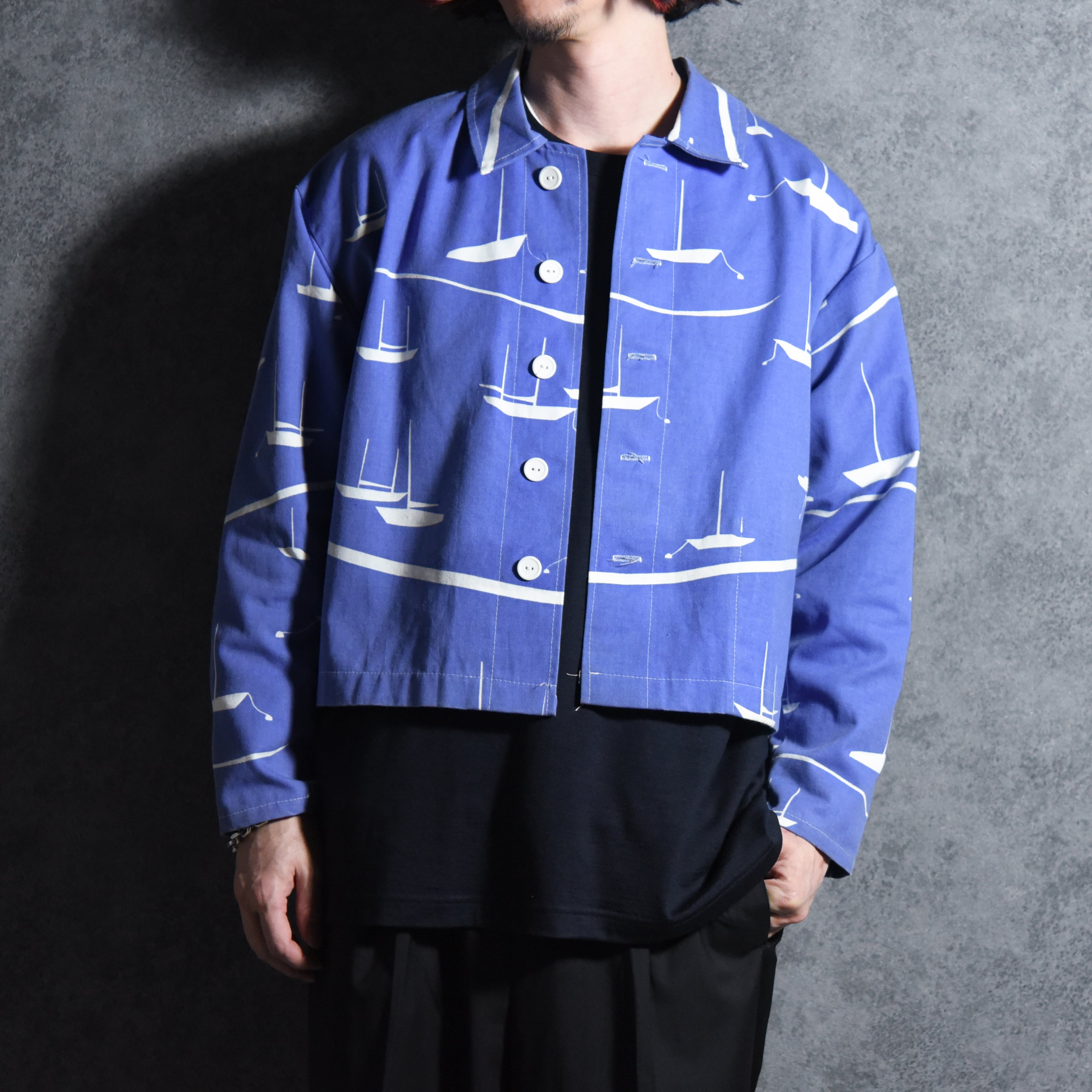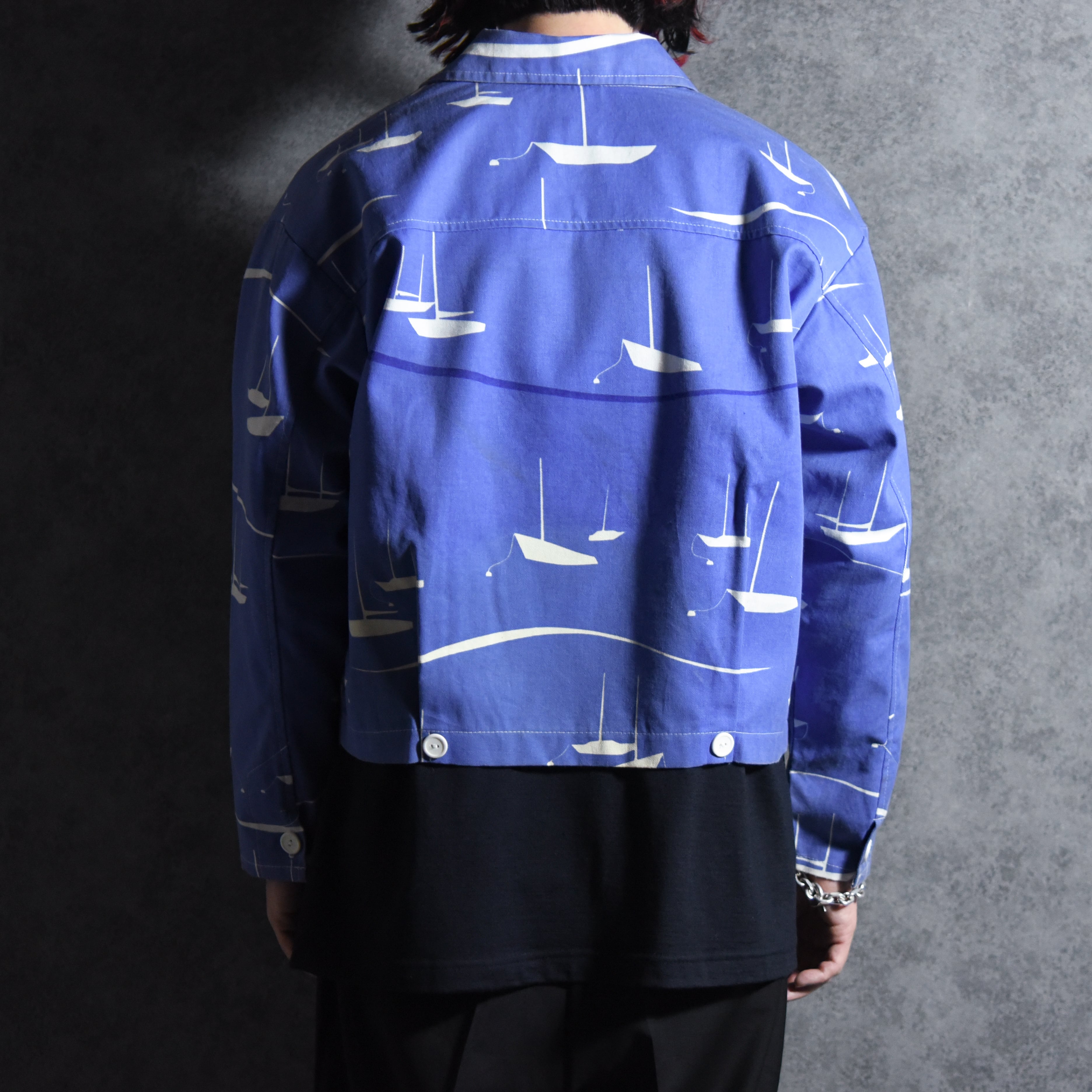 スウェットやヨットパーカーなどにマリンモチーフの総柄プリントを施したデザインが特徴で、今回入荷したショートジャケットもミシガンラグを象徴するようなヨットの総柄が特徴。