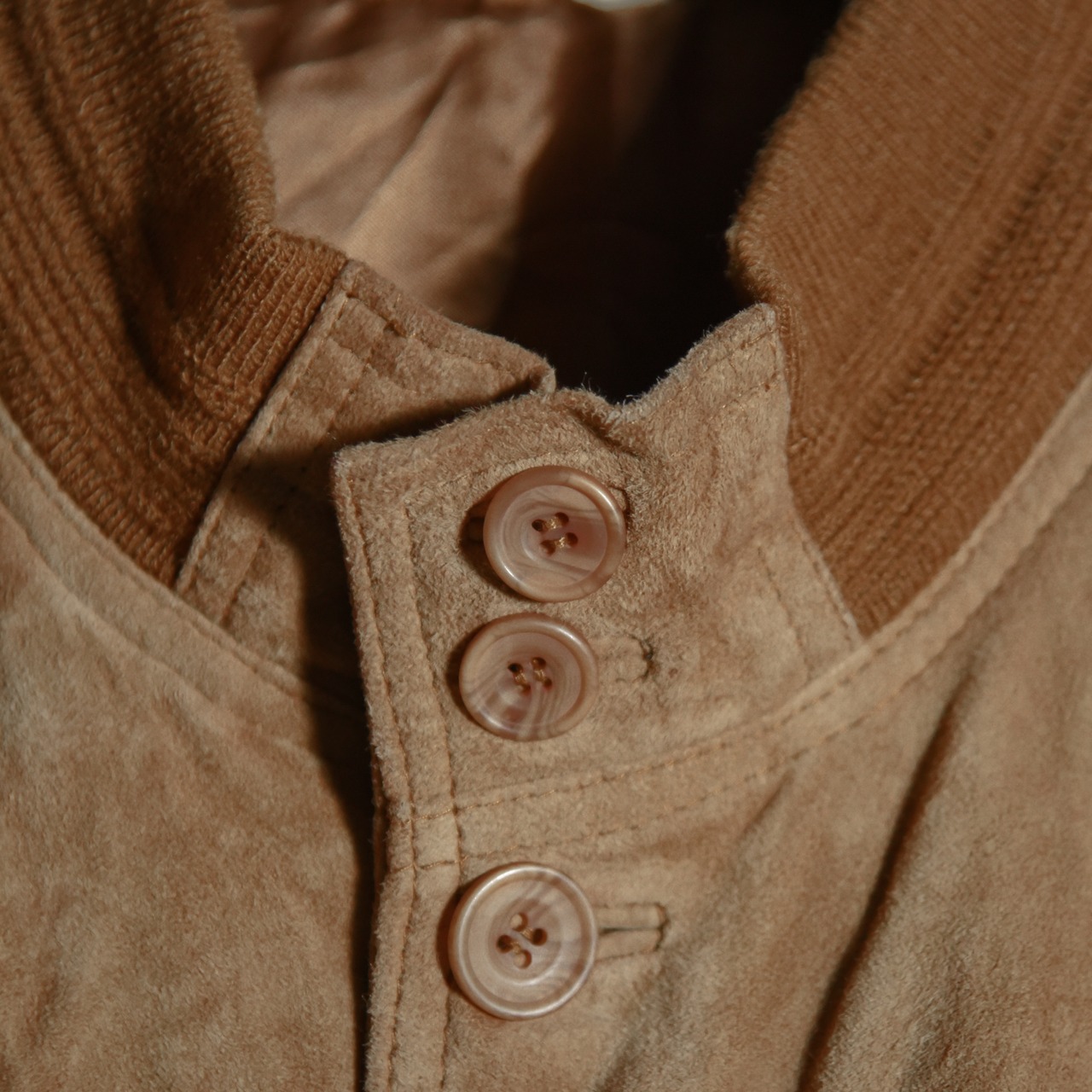 春や秋の街角には、パンナ色のやわらかなベージュや太陽を思わせるテラコッタの短丈スエードブルゾンが映え、それこそが当時のイタリアンカジュアルを象徴する風景でした。