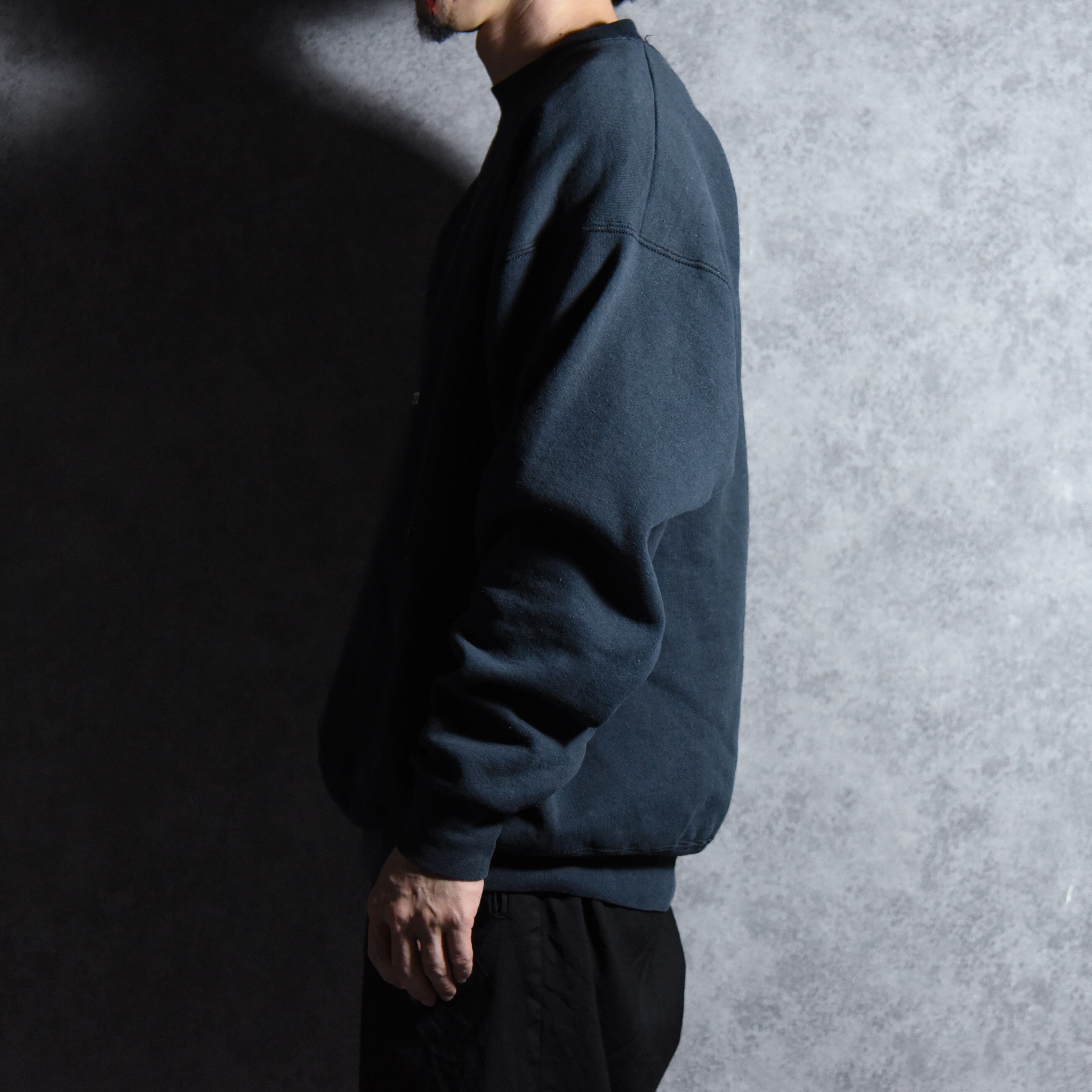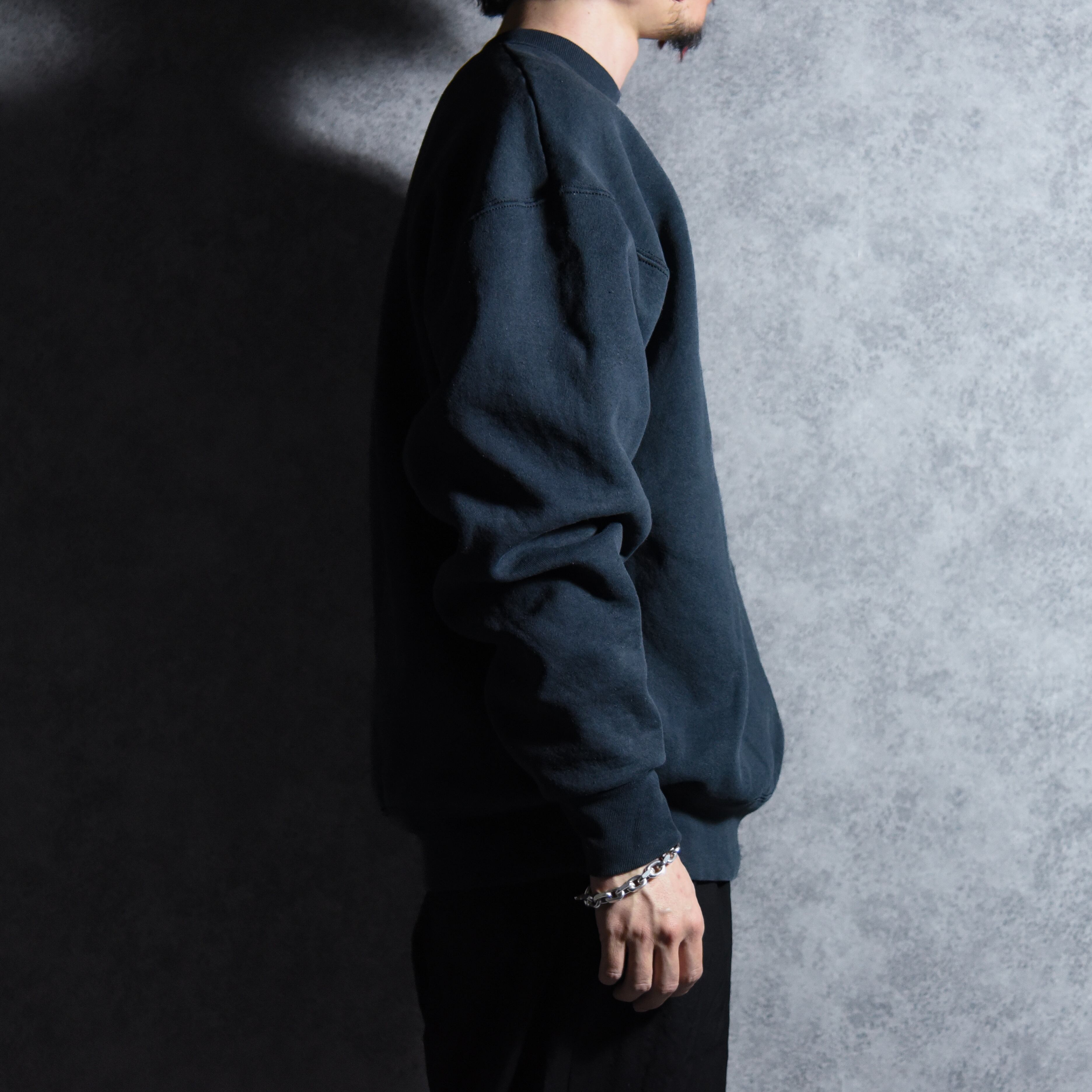 シルエットは身幅、肩幅ともに余裕のあるこの年代らしいボックスシルエット、フェードしたブラックの雰囲気も良いグッドピース。