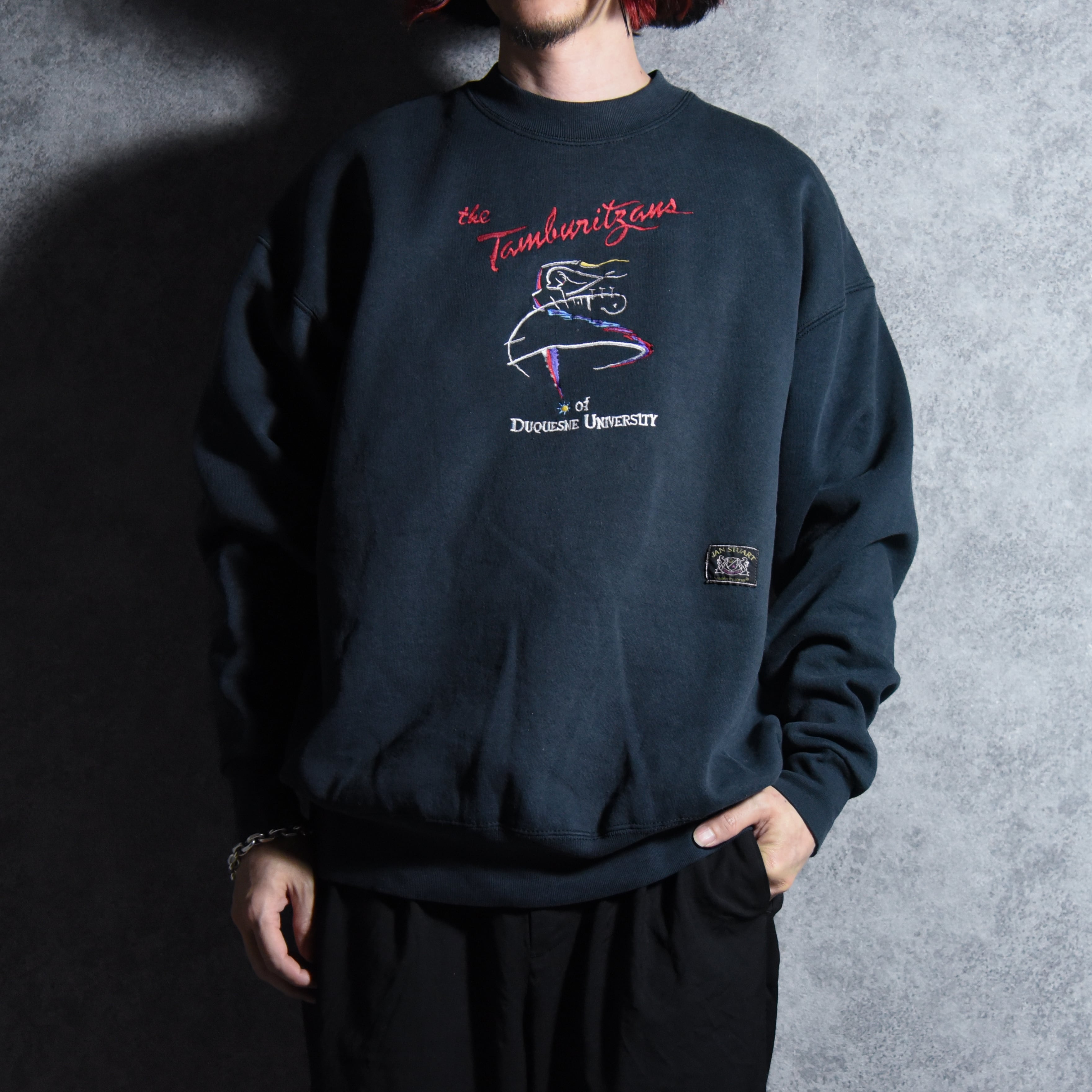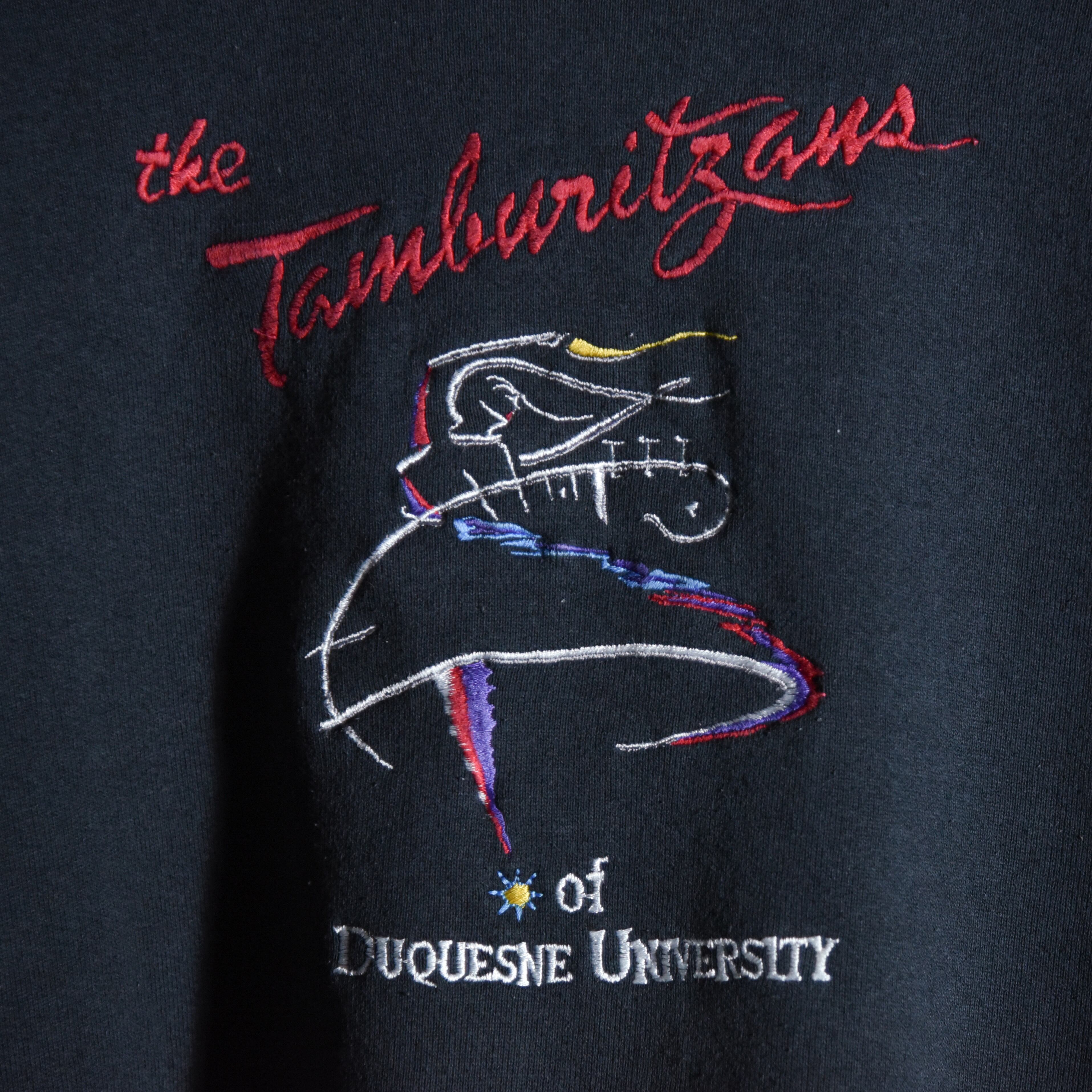 90s FRUIT OF THE LOOM the Tamburitzans of DUQUESNE UNIVERSITY Souvenir Crew Neck Sweat Made in USA Black フルーツオブザルーム スーベニア クルーネック スウェット アメリカ製 ブラック