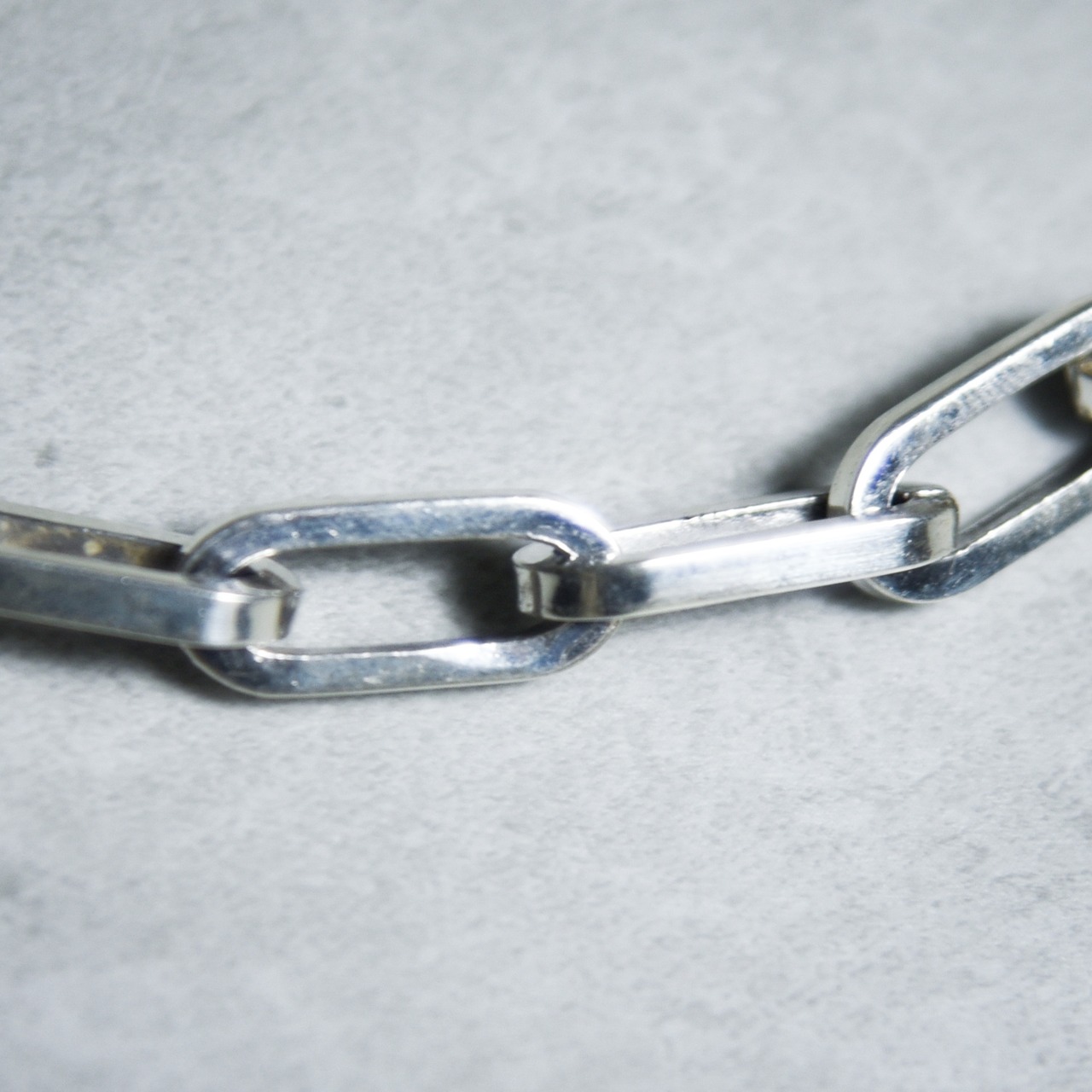 いわゆるオーバル型のベーシックのチェーンでパーツには大きめのコマが採用されたボリュームのある一本。