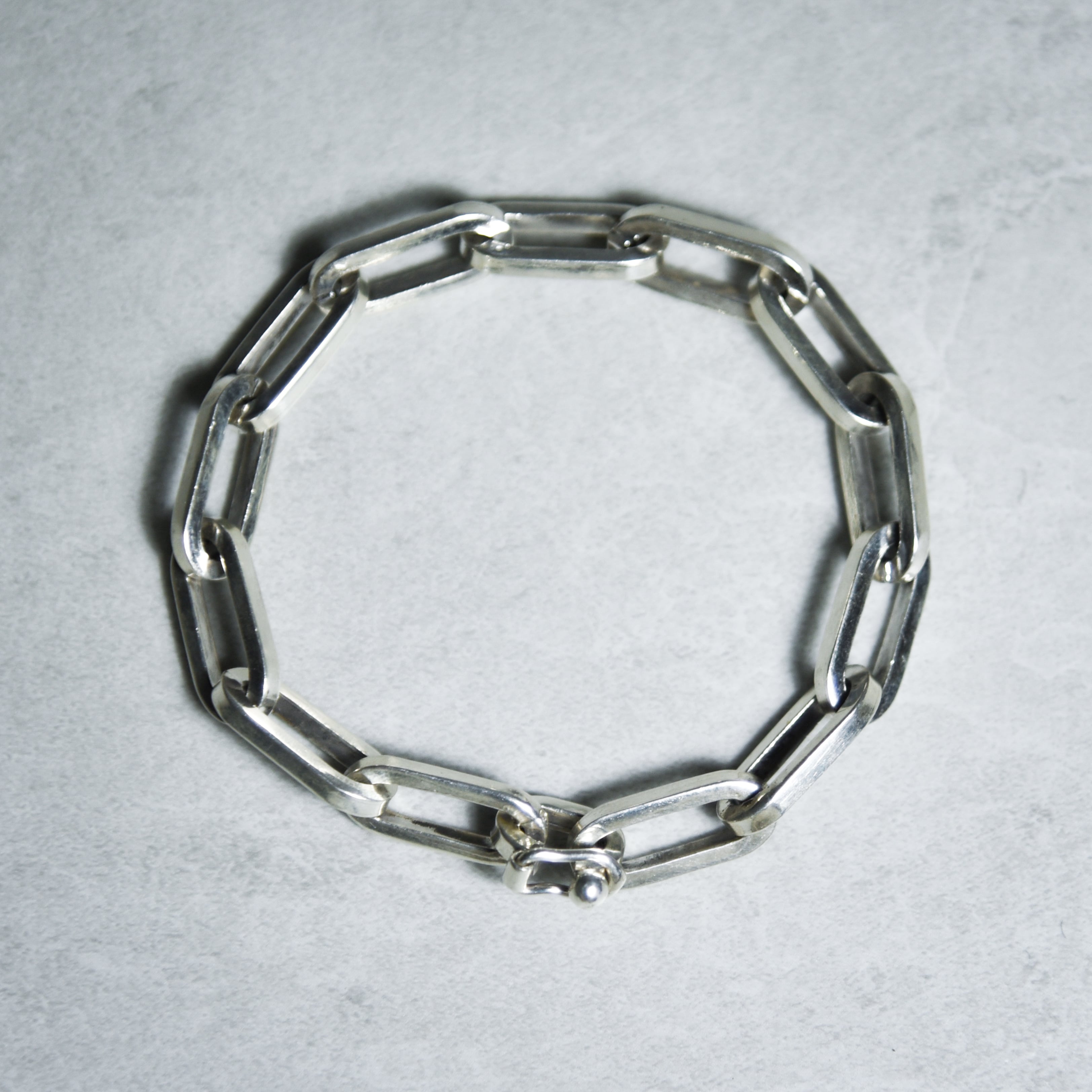 シンプルで飽きのこないミニマルなデザインと確かな存在感、純度の高いシルバー950が採用された希少なブレスレットです。