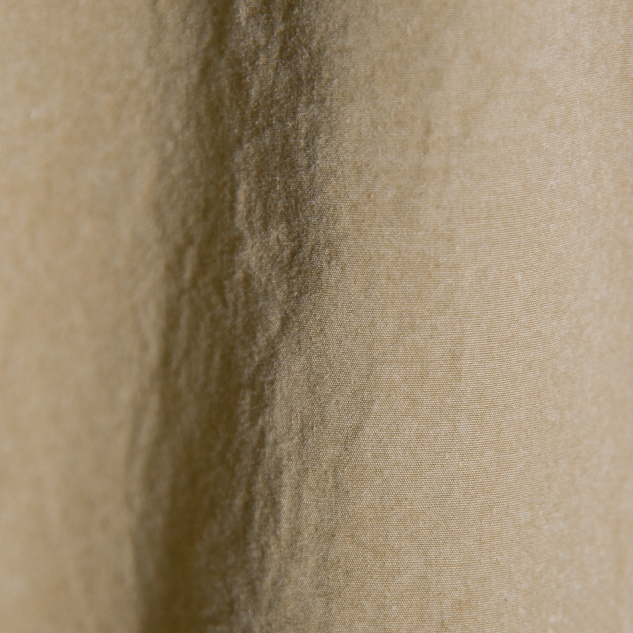 素材には高密度に打ち込んだコットン生地を使用。最近ではシルケット加工を施すことが主流ですが、敢えてシルケット加工を省くことで綿本来の素朴な風合いを楽しめるのが特徴です。