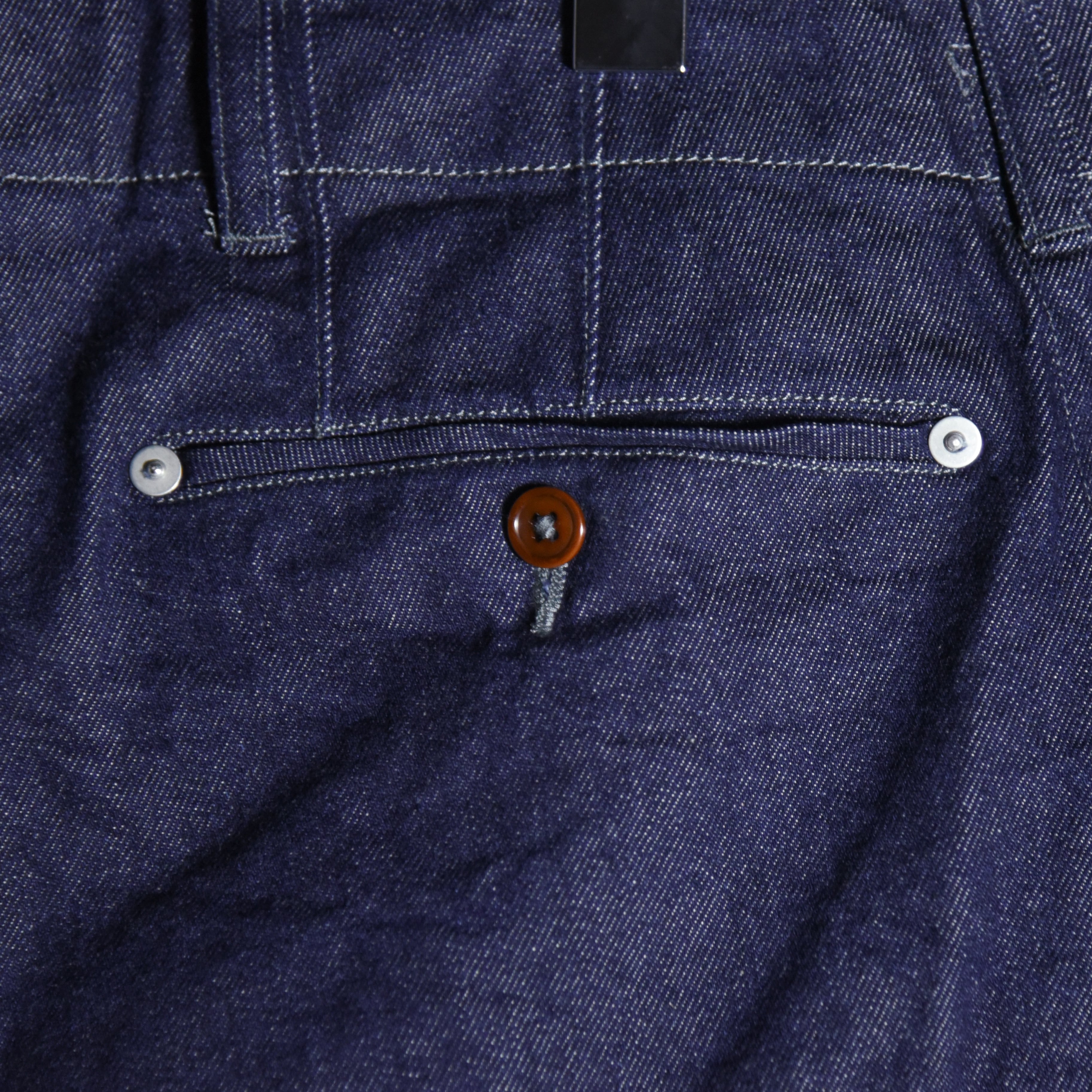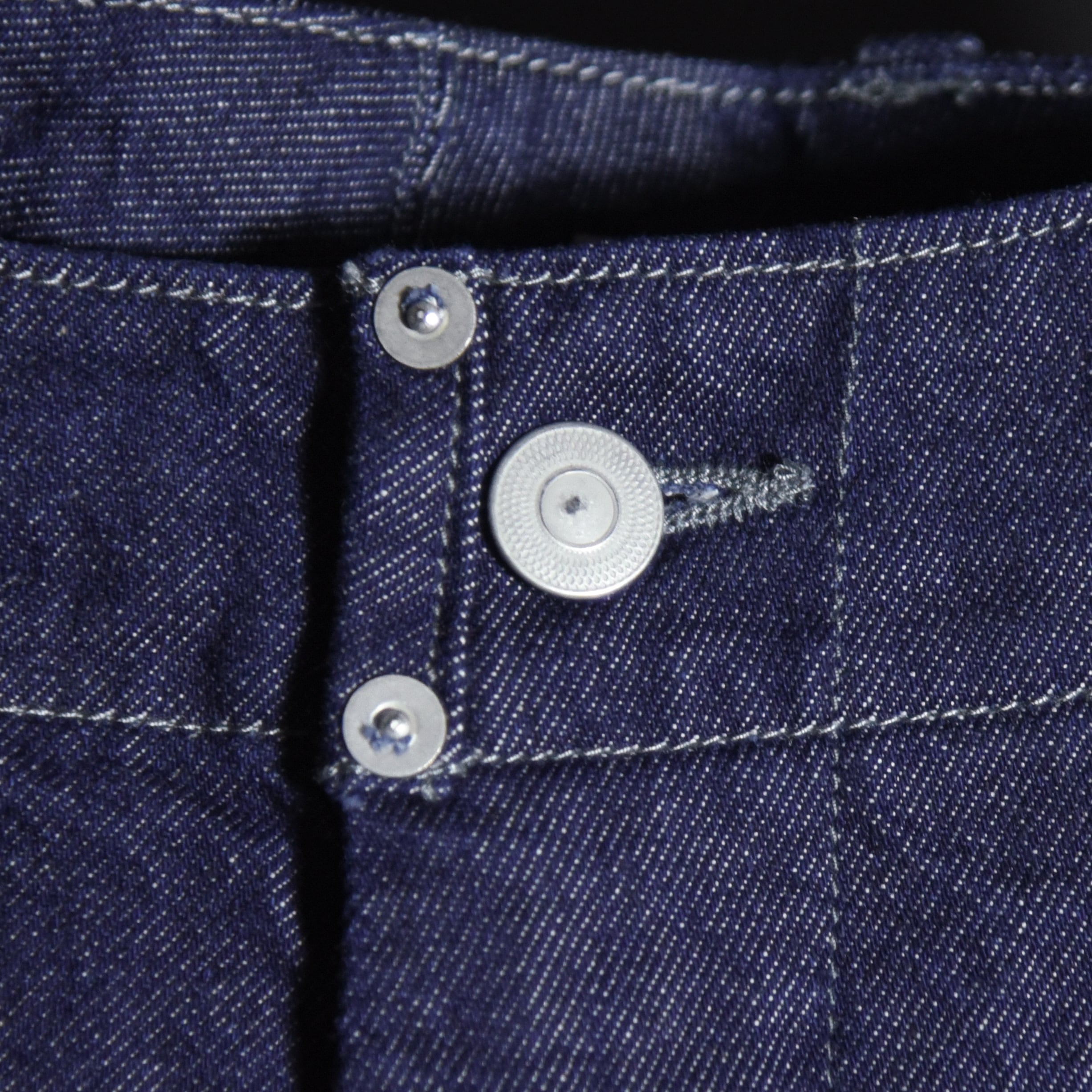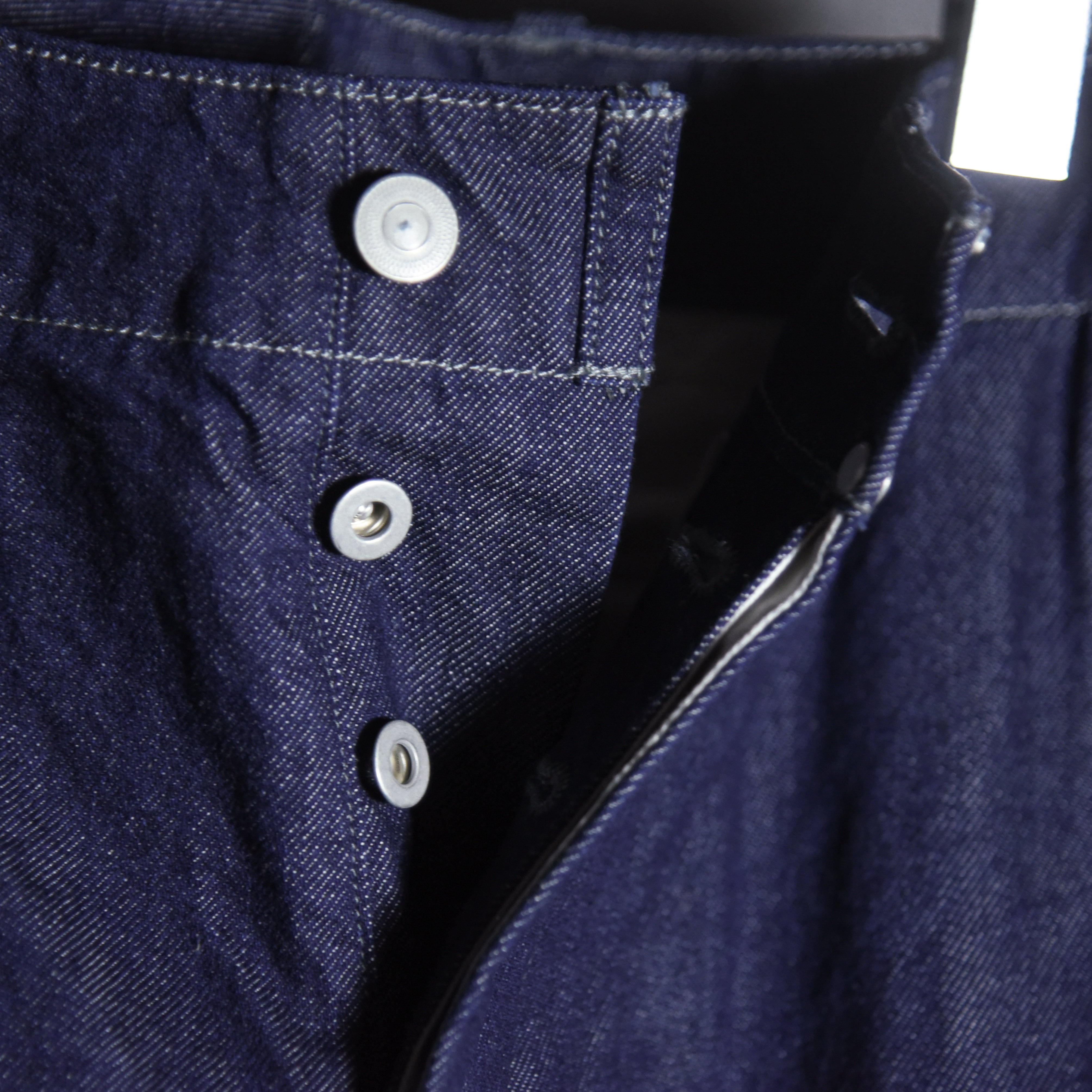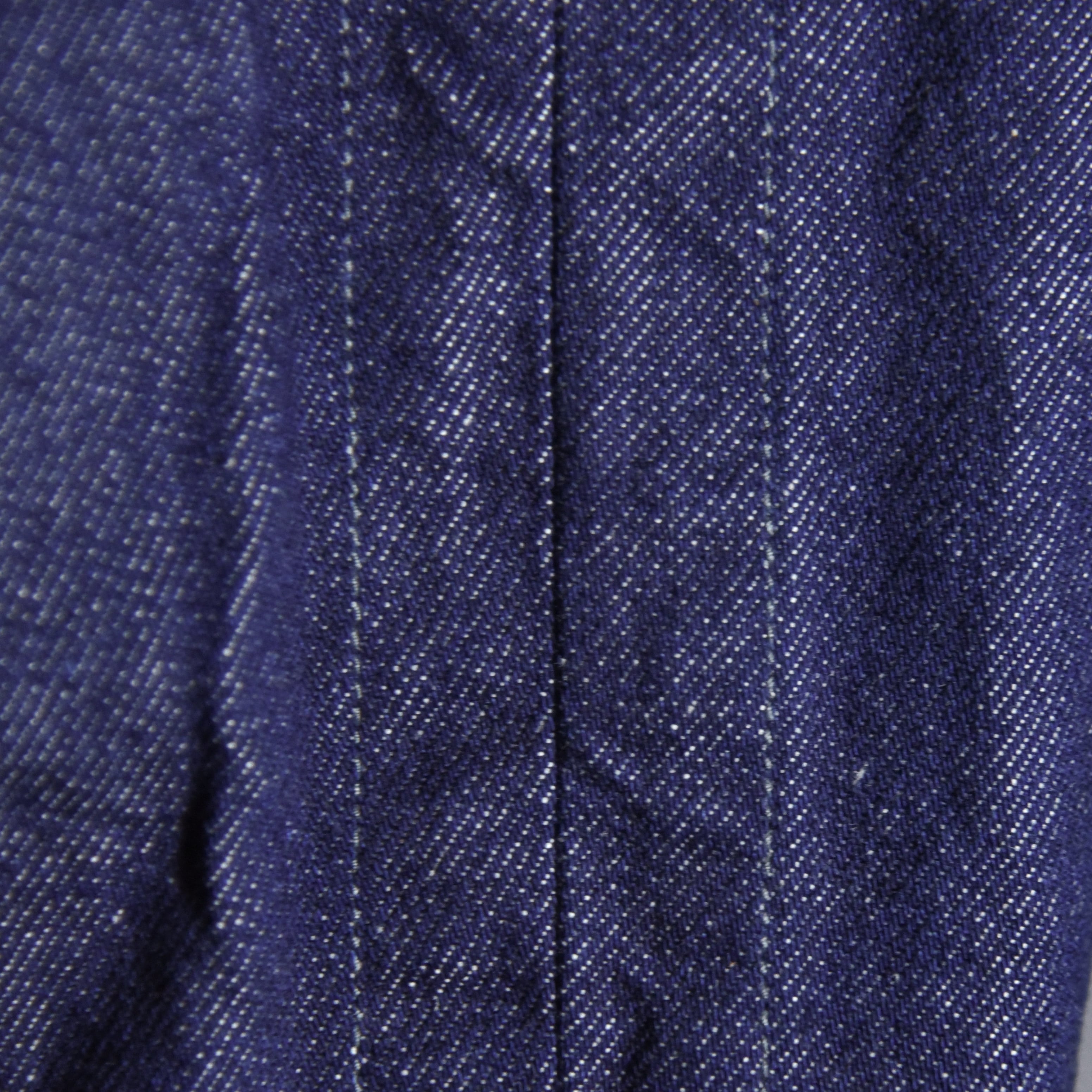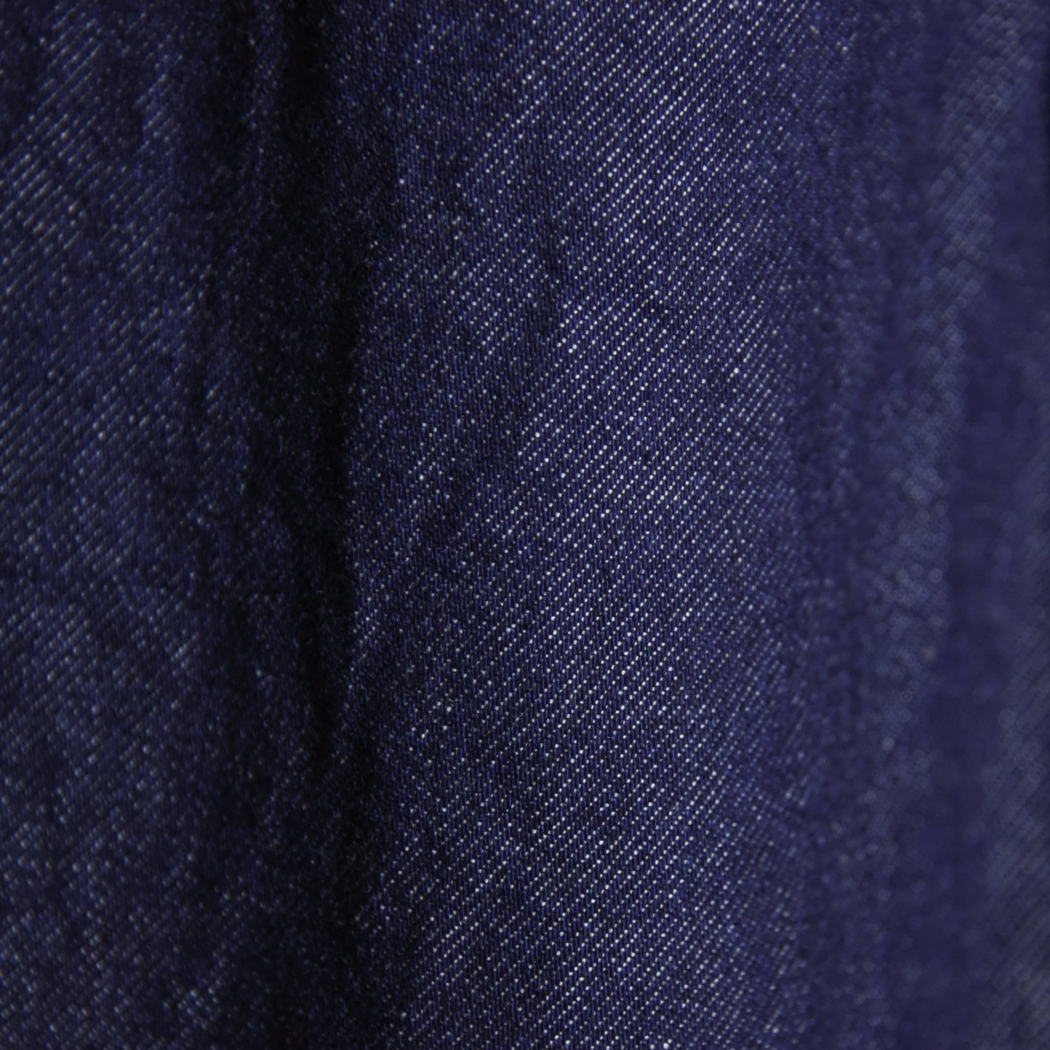 素材には経緯共にムラ感の少ない空紡糸で織り上げたデニム生地を使用。