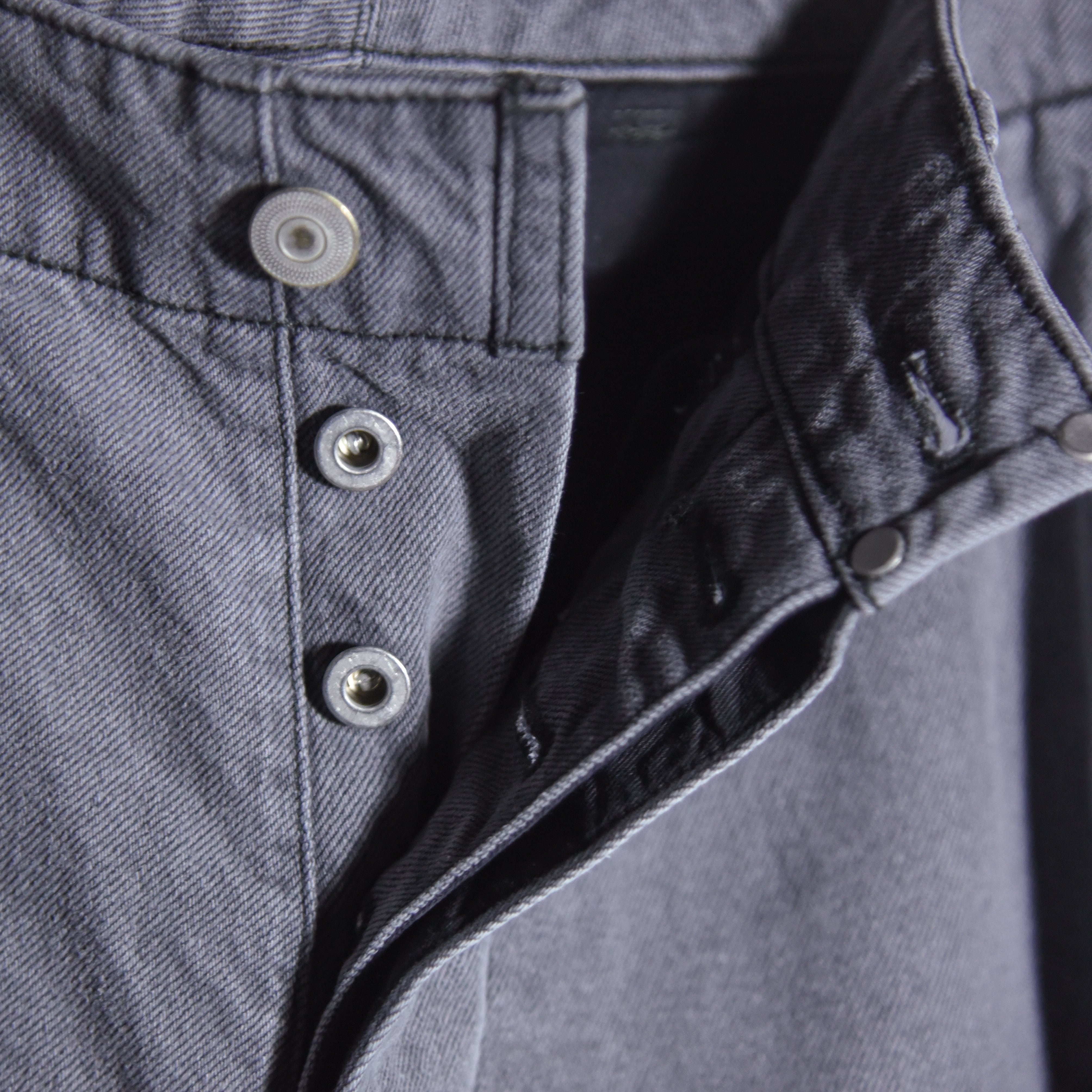 素材には経緯共にムラ感の少ない空紡糸で織り上げたデニム生地を使用。