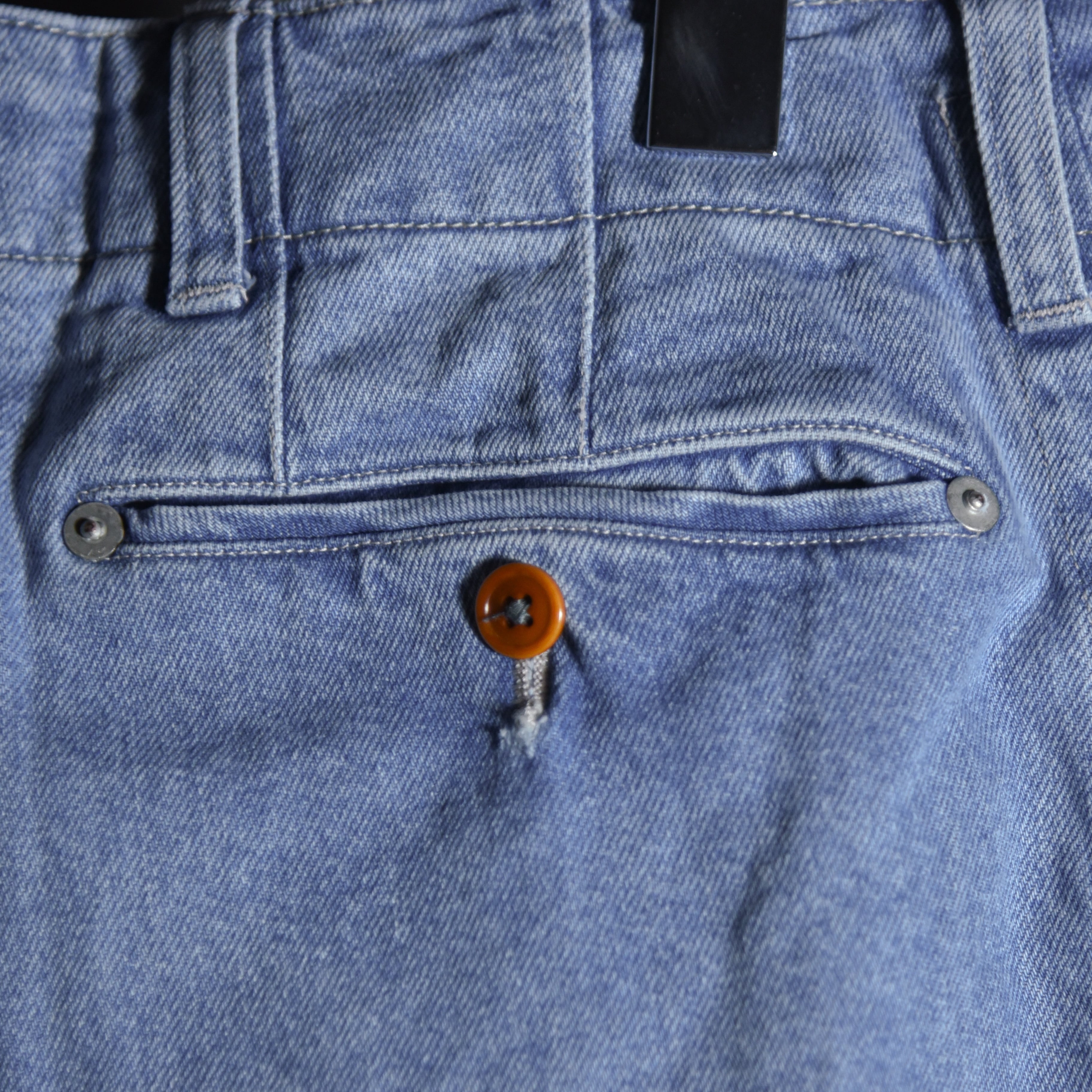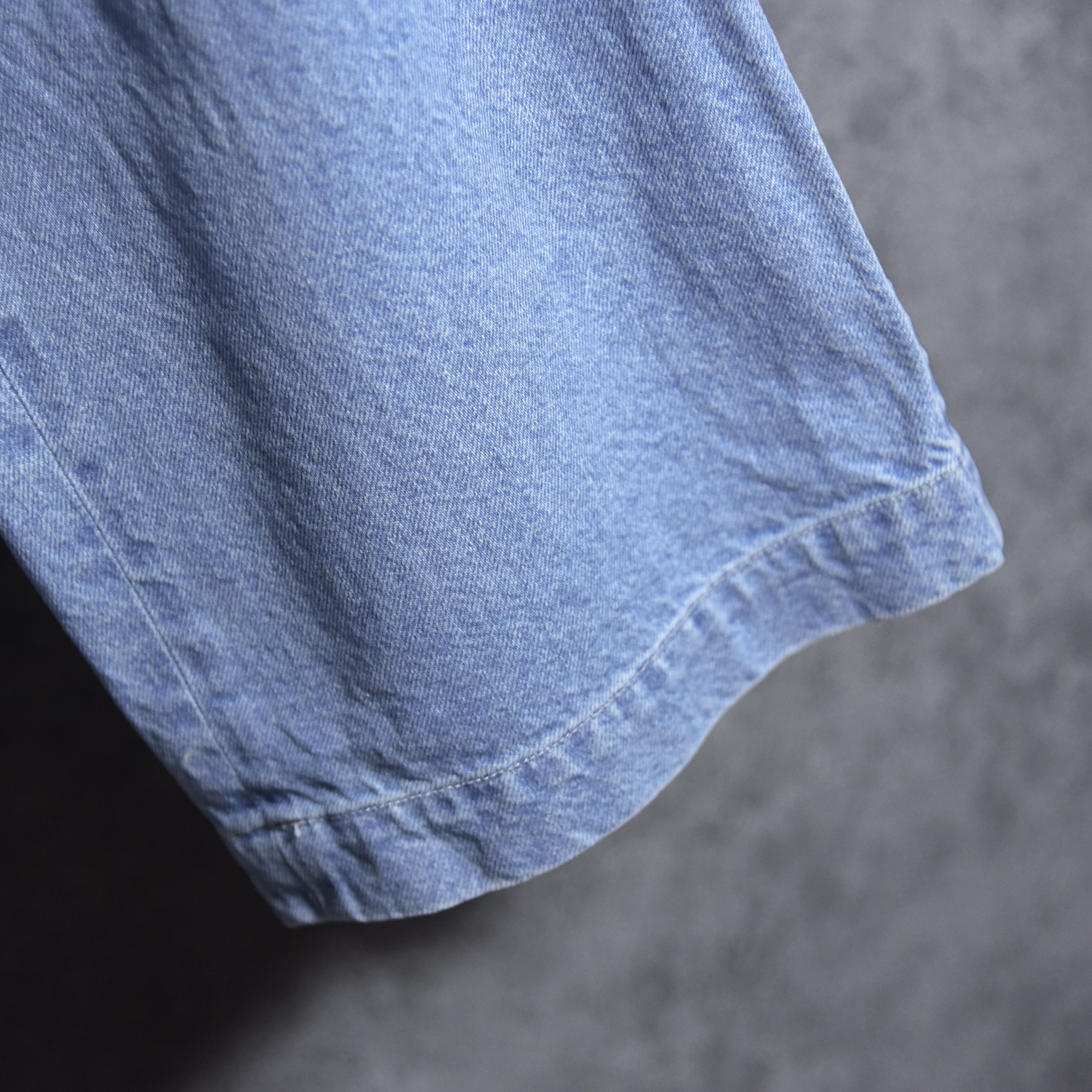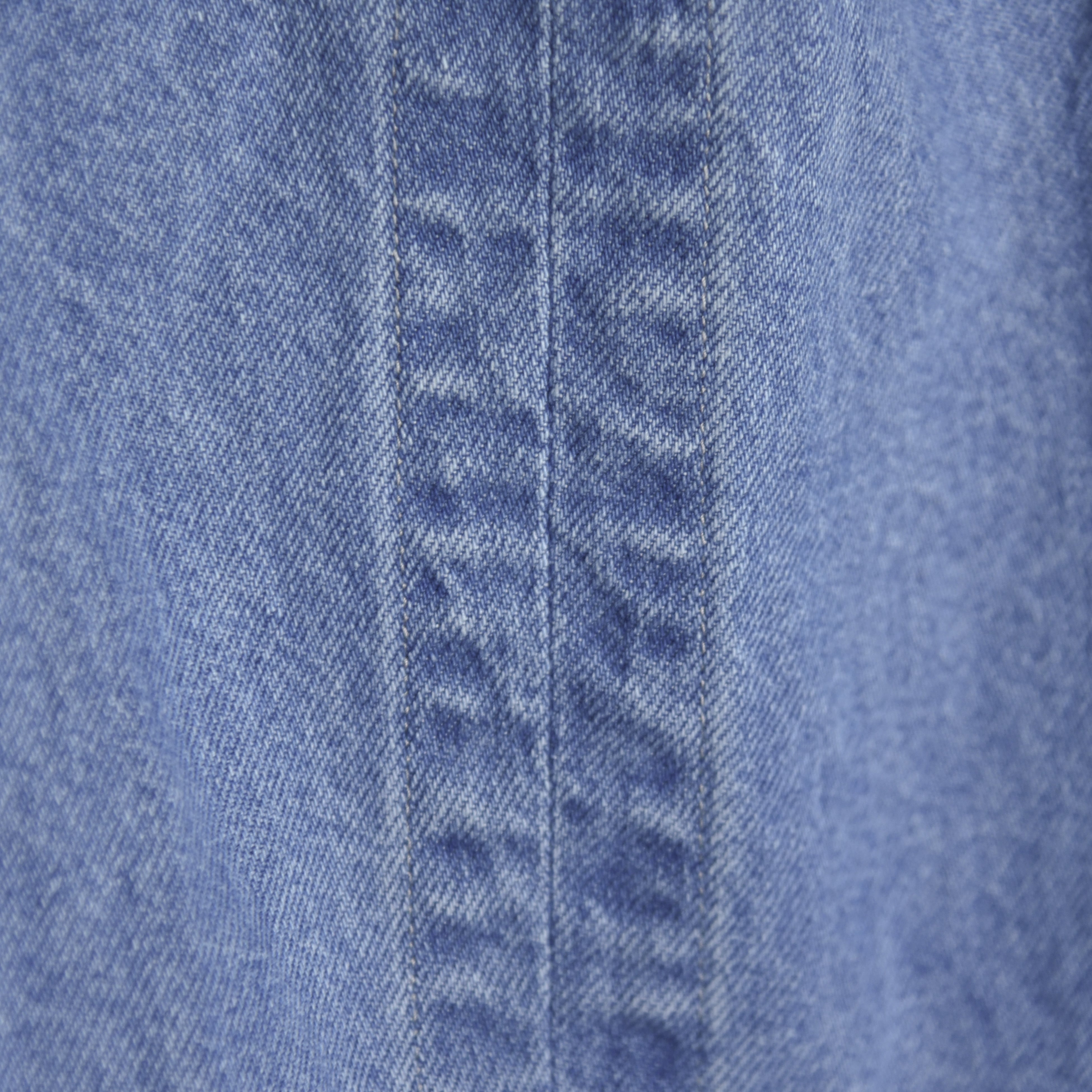 素材には経緯共にムラ感の少ない空紡糸で織り上げたデニム生地を使用。