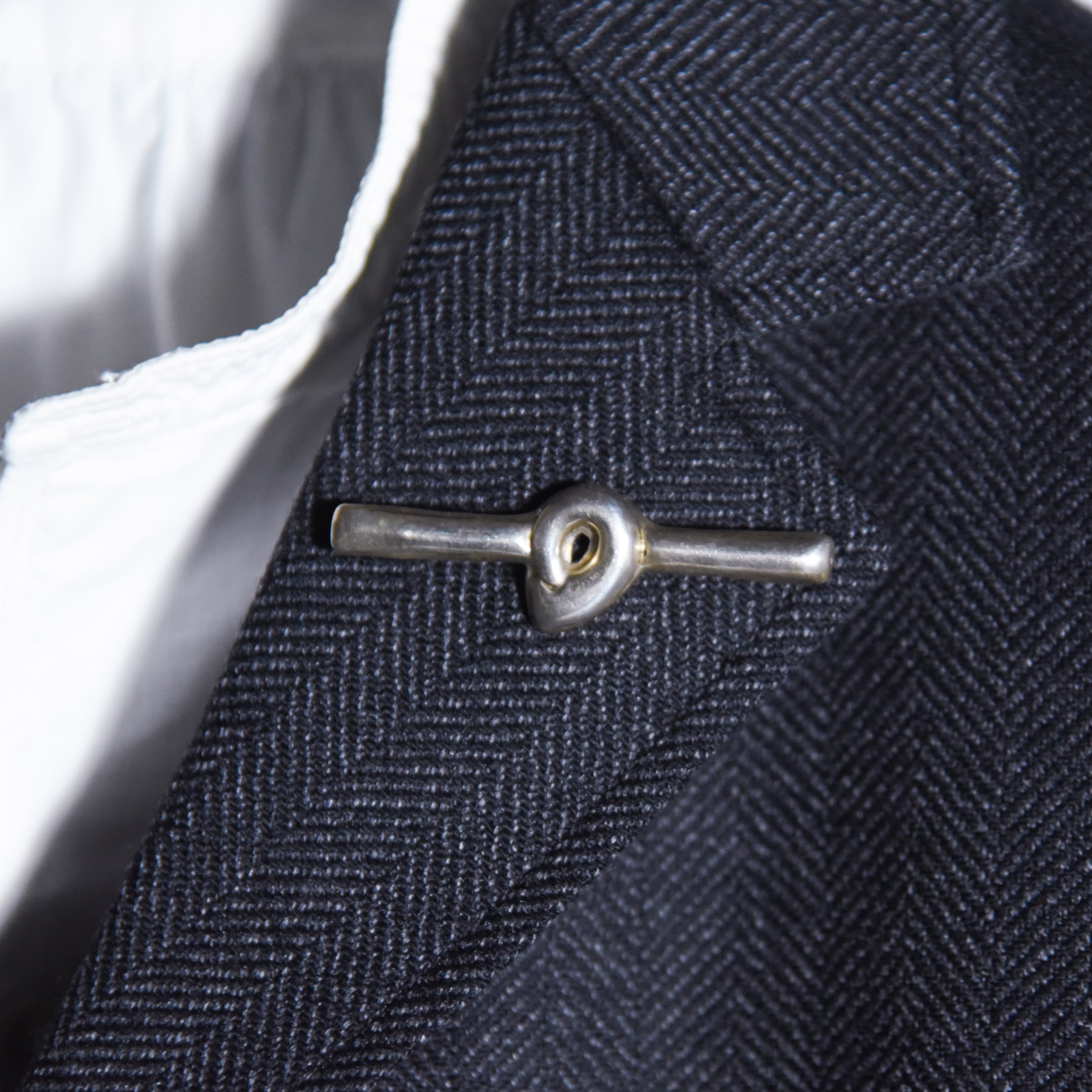 ラペルピンとして: トップの画像のようにジャケットフラワーホールやシャツやブルゾンの襟元につけるのはもちろん、 ハットピンとしてウールハットやパナマハットのリボン部分などにも相性の良いアイテム。