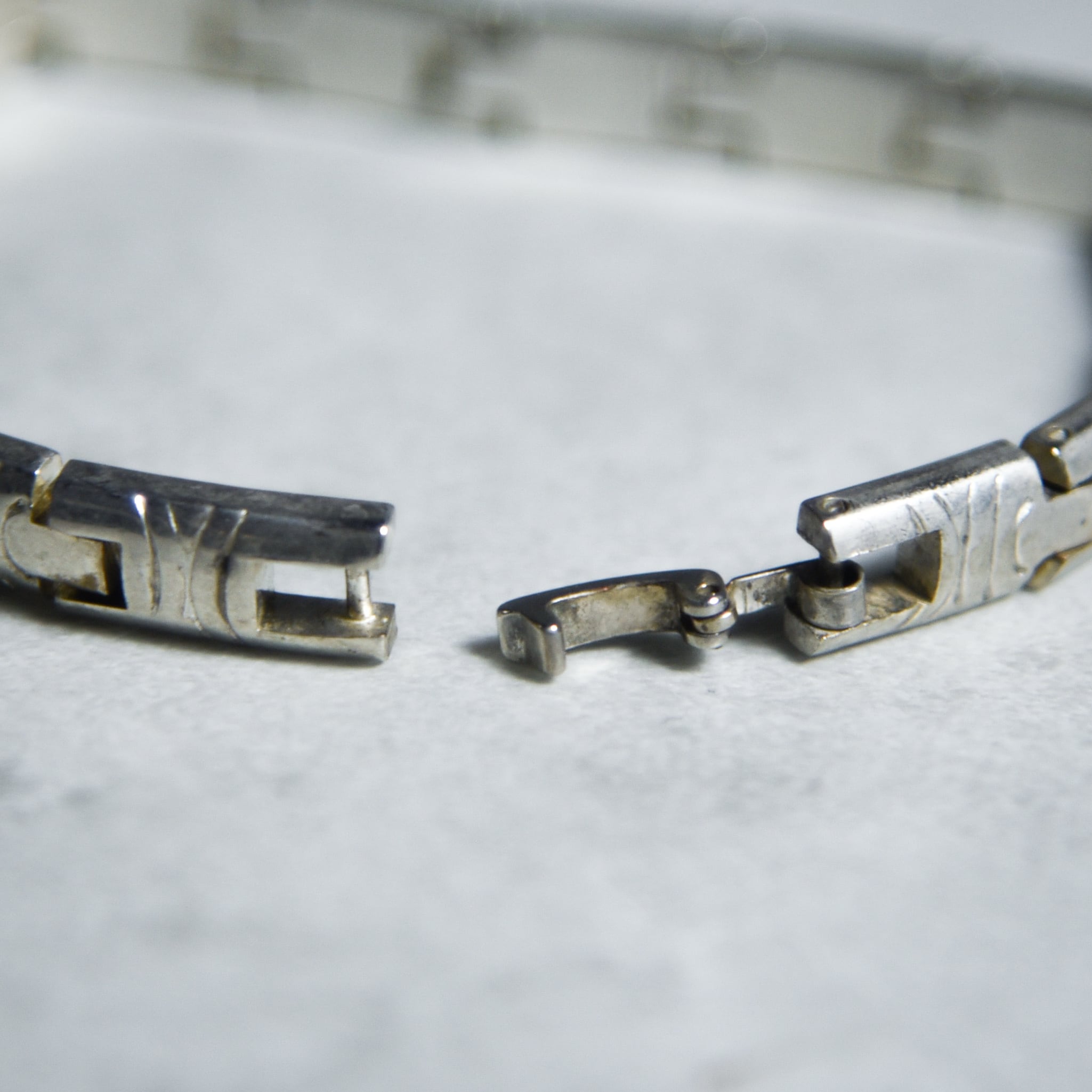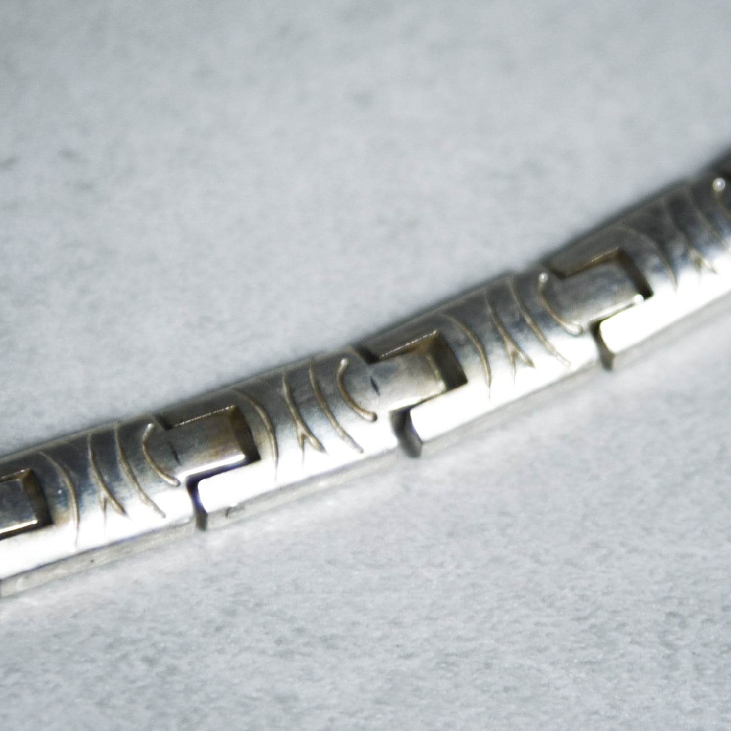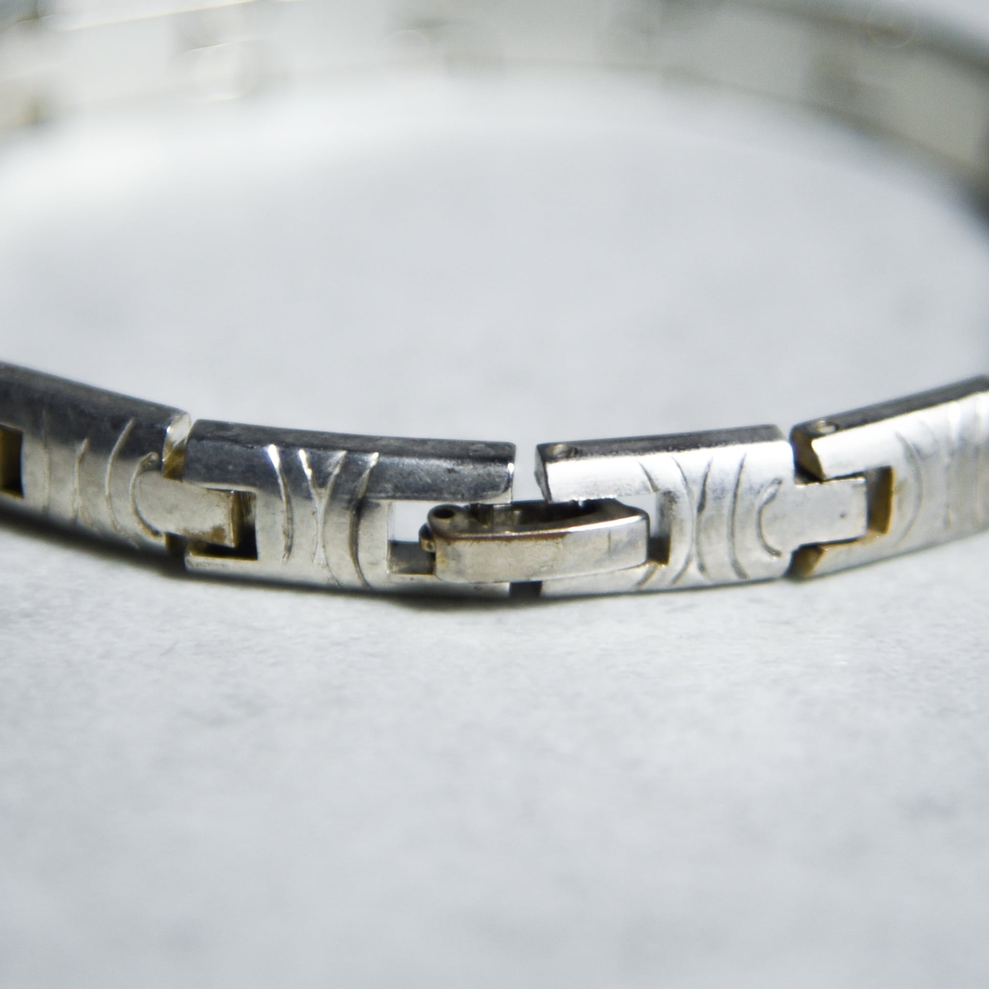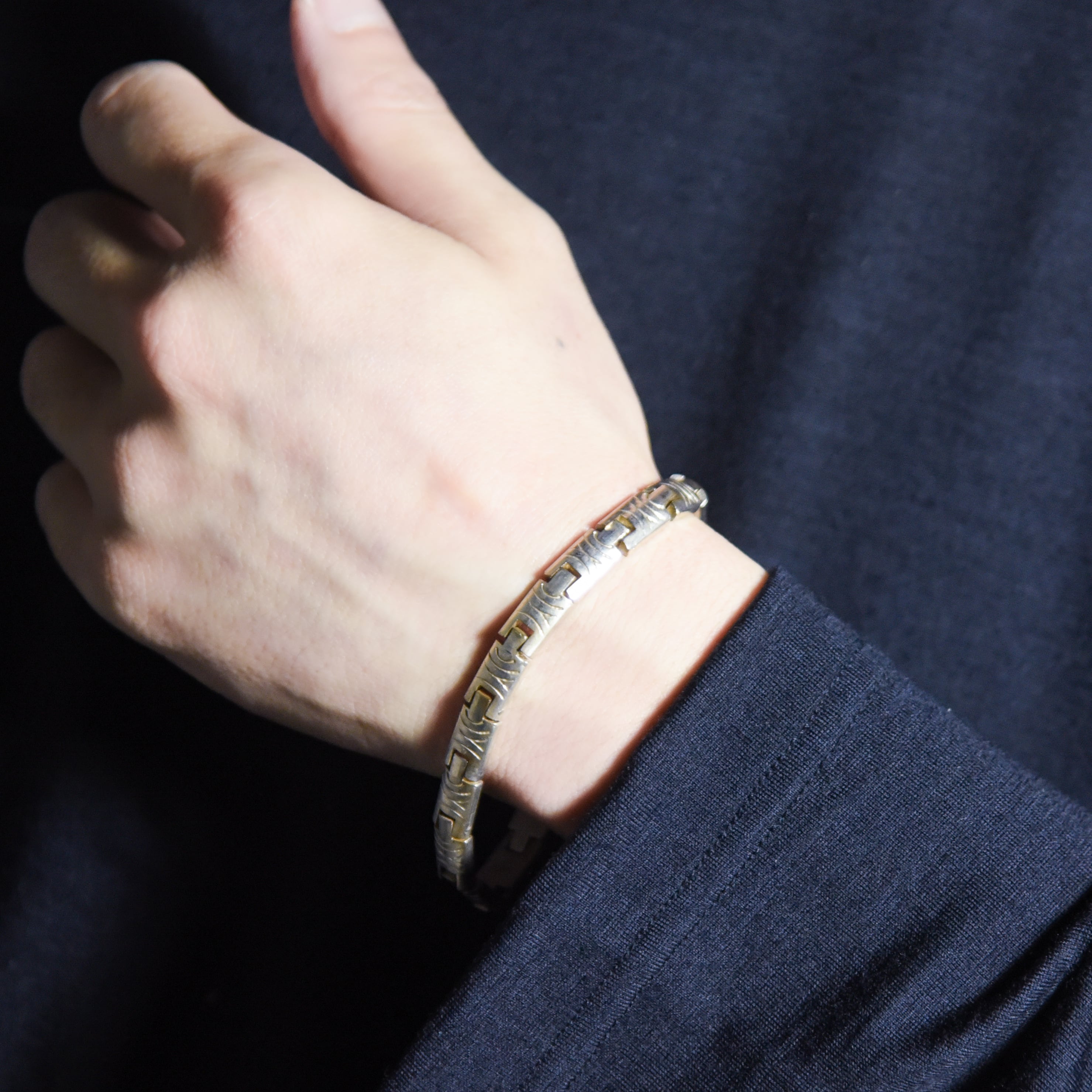 全てのパーツに細かなインレイが刻まれており、シルバーの持つ気品の中にオリエンタルな雰囲気も感じさせてくれます。