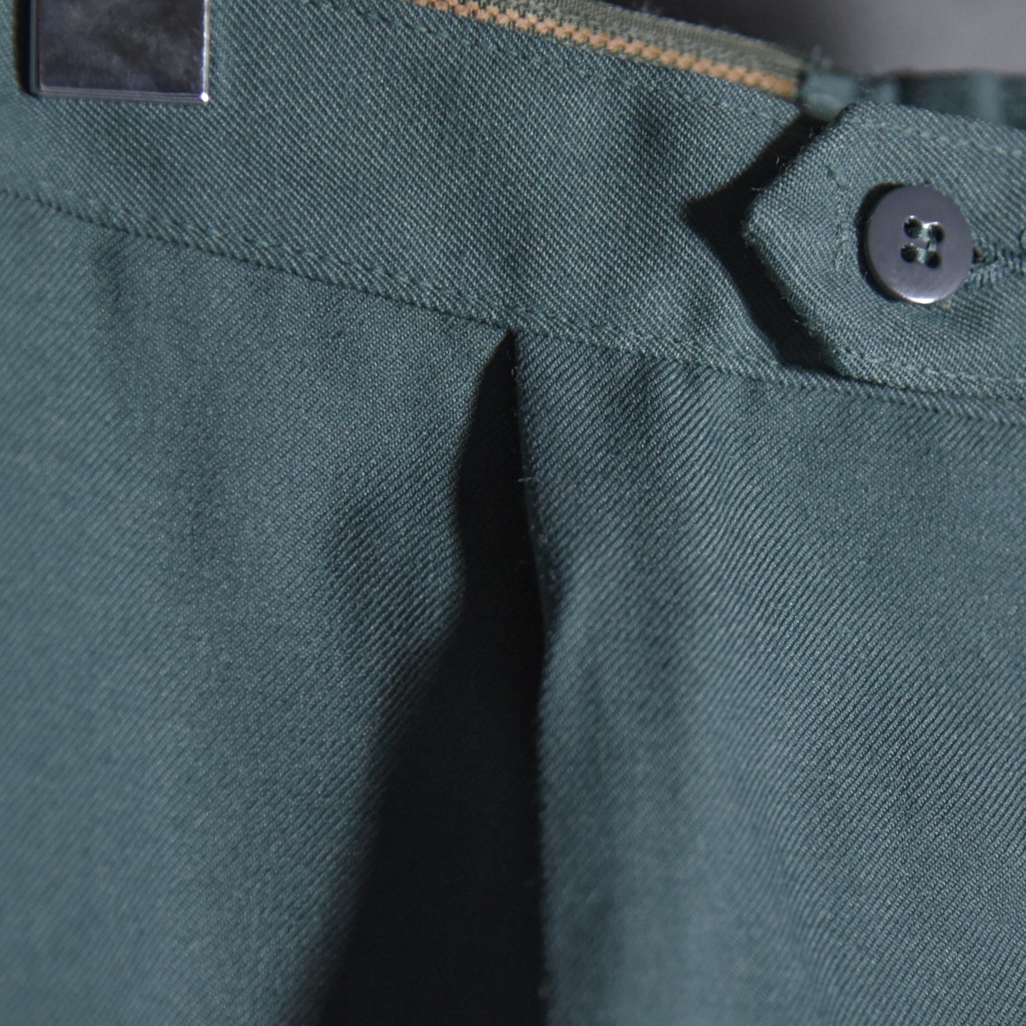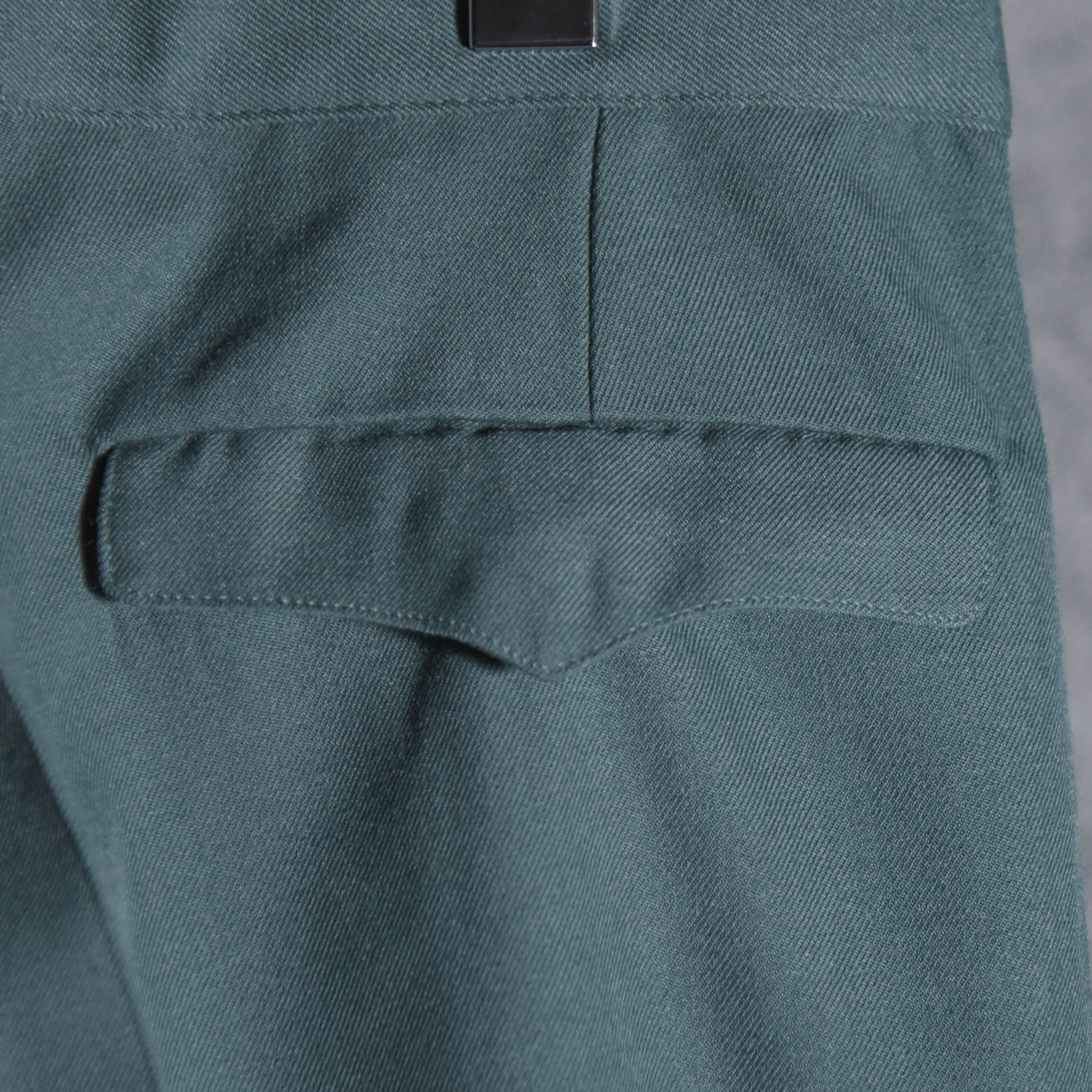 フロントあきはボタンフライ、サイドは両玉縁ポケット、片方のヒップには片玉縁のフラップポケット、さらにワンタックと、ドレスパンツに欲しい仕様を全て網羅しつつ、オーバーディテールではない普段使いに最適な逸品です。