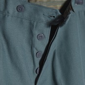 ベルトループまで廃したミニマルな仕様でウエストの調整は内側に配置されたボタンホールのあいたゴムで行います。