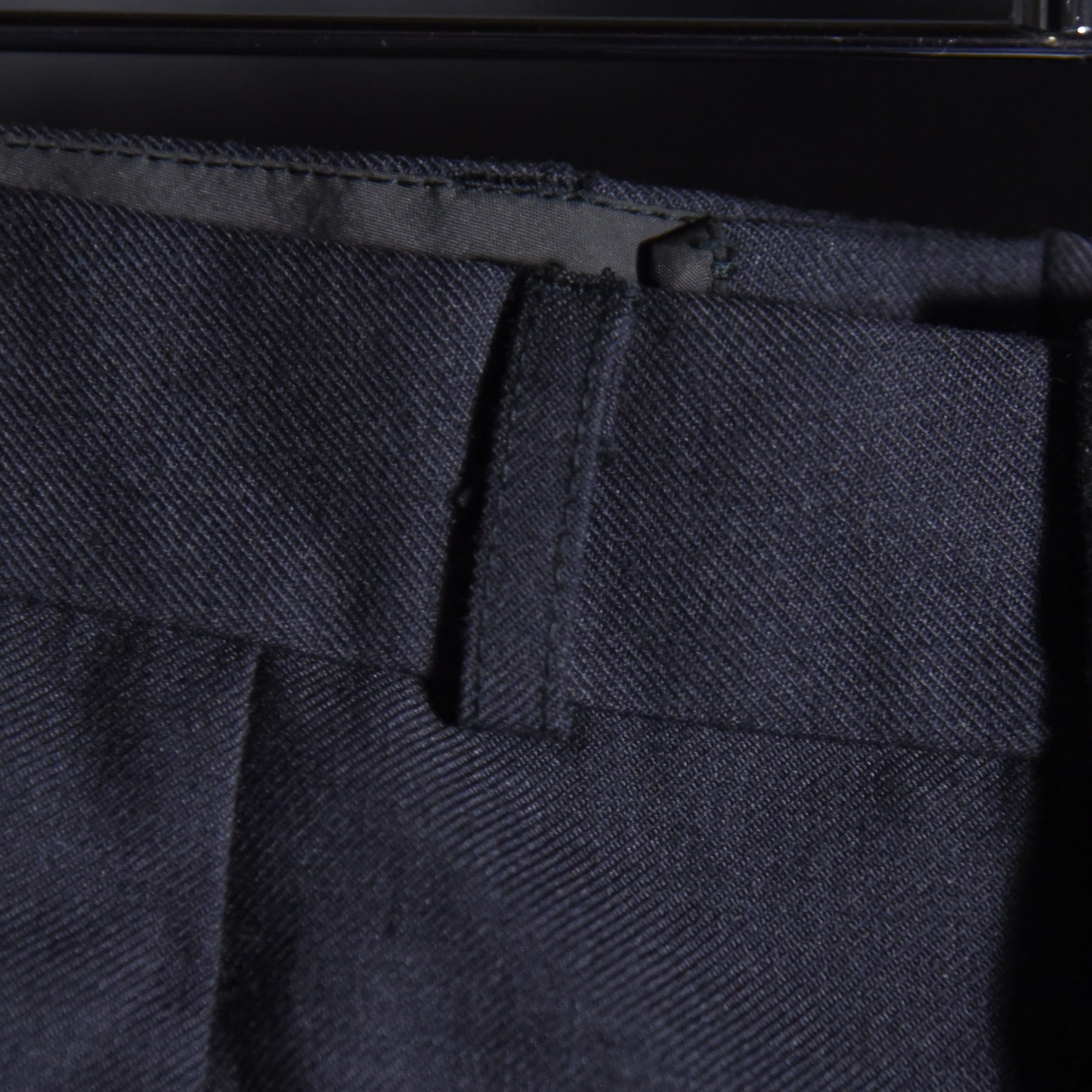素材はポリエステル混紡のウールサージが使用されており、シルエットは細過ぎず太過ぎない汎用性のあるパターンです。