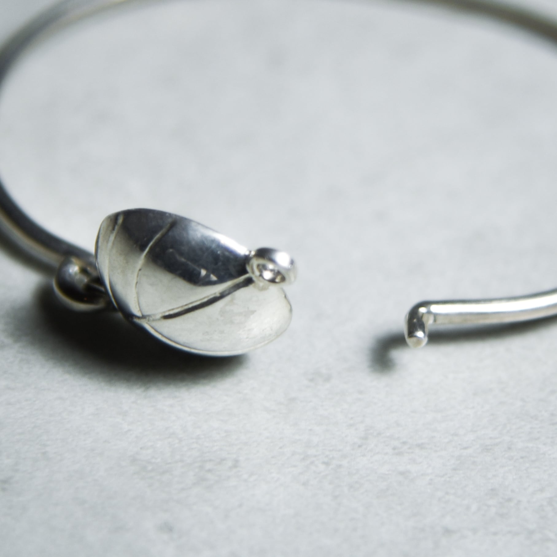 キシカンジュエリーに限らず、ヴィンテージのシルバーアイテムでもしばしば見かける留め具をデザインの主役にするという機能とデザインを両立させた構造。