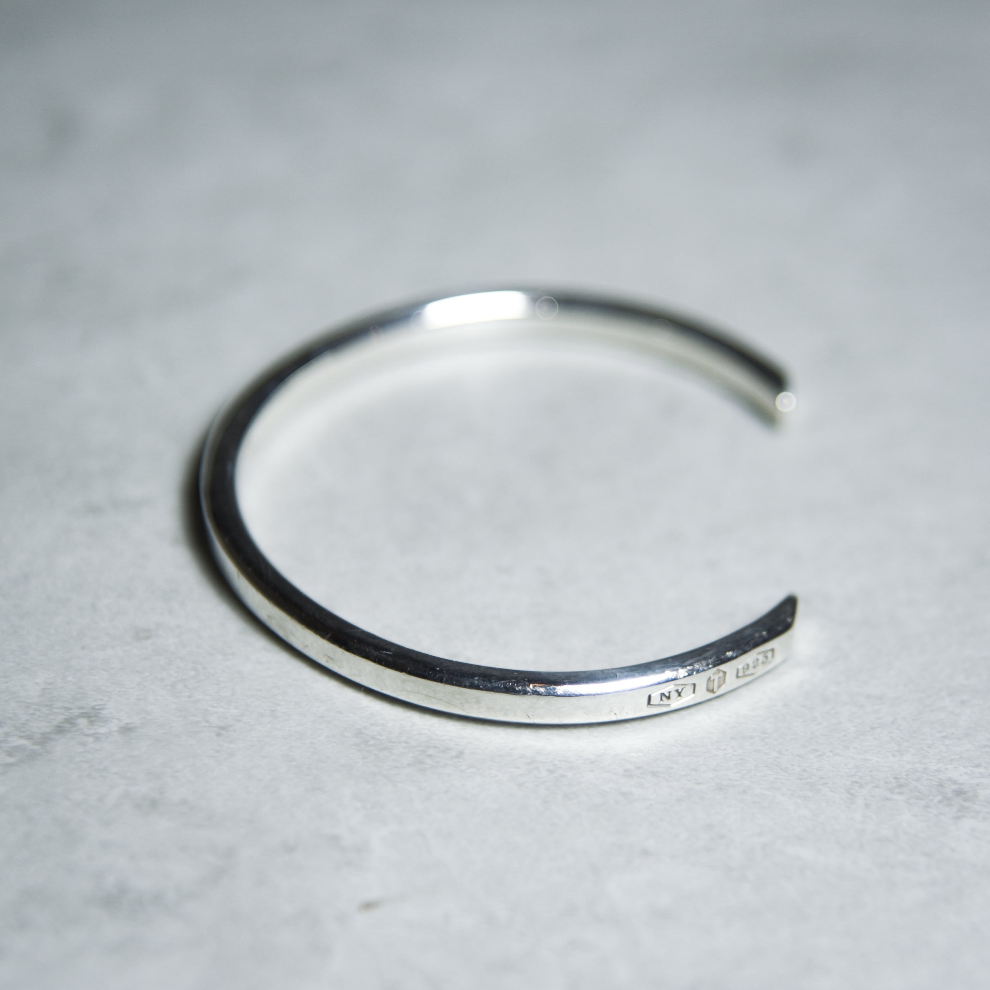 こちらのバングルはあえてセリフ体の刻印を等間隔で配置することでデザインとして昇華しているのが大きな特徴です。