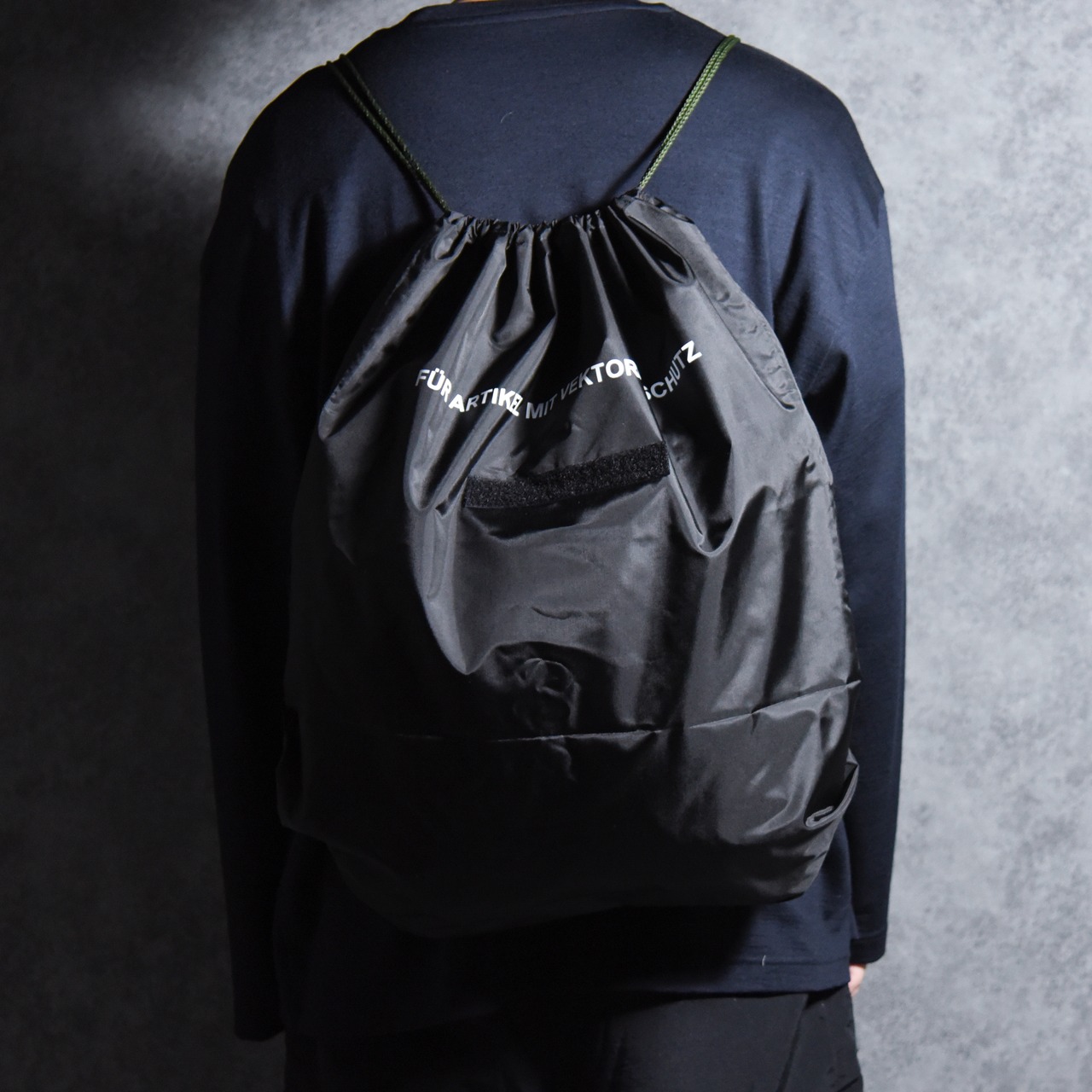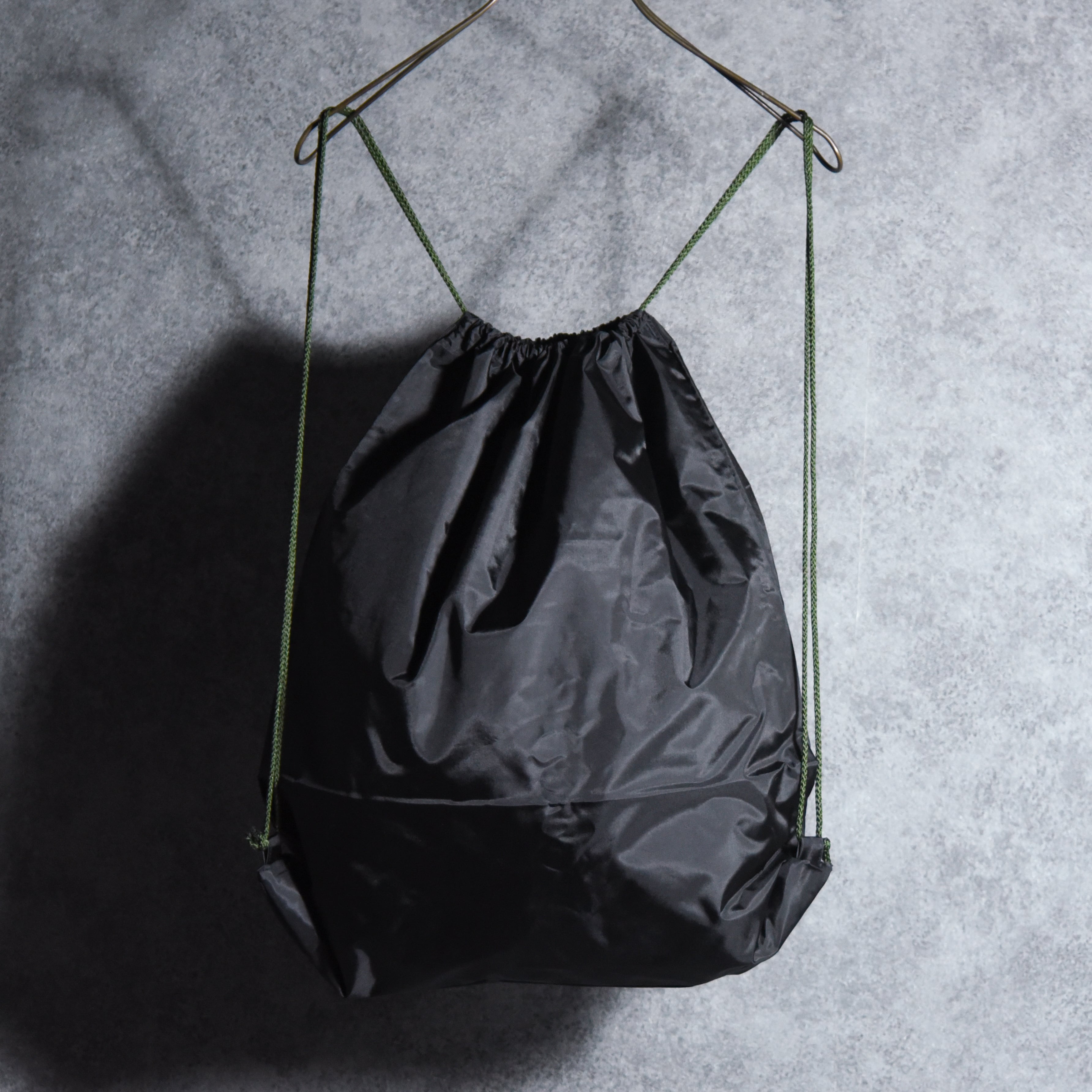 その名の通り本来は洗濯物を入れるための大きな袋ですが、強度とデザイン性を活かしてシンプルなナップザックに仕上げました。