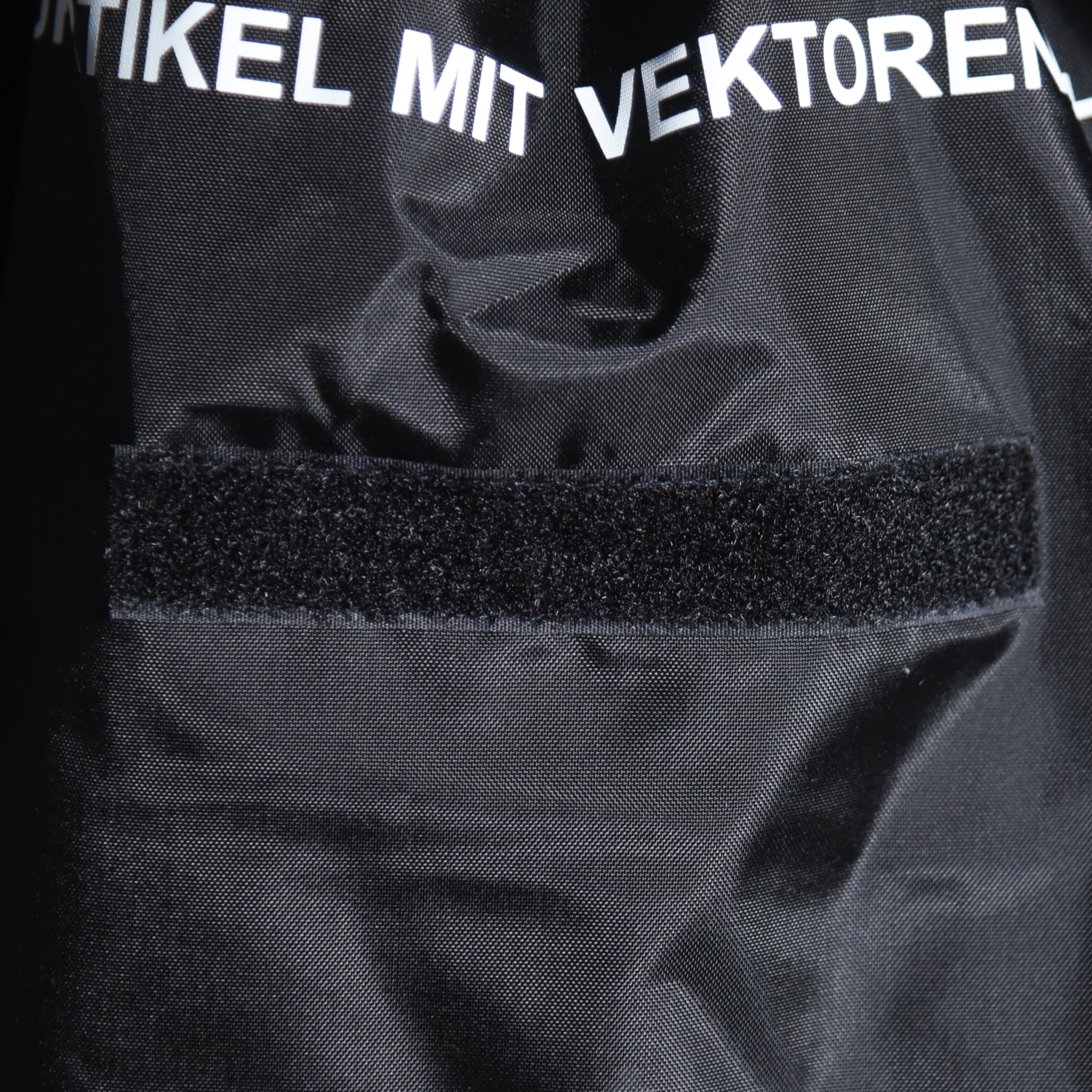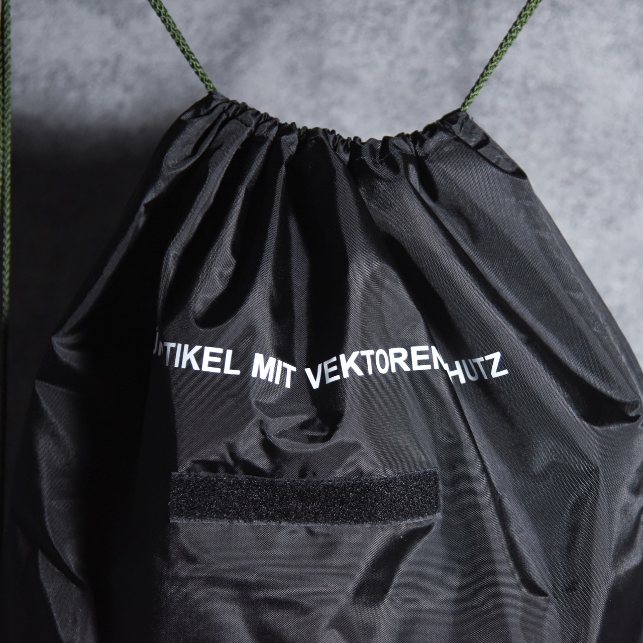 ボディのブラックカラーにホワイトのプリントが映え、中央についたベルクロとオリーブのストラップがさりげなくミリタリーらしさを際立たせています。