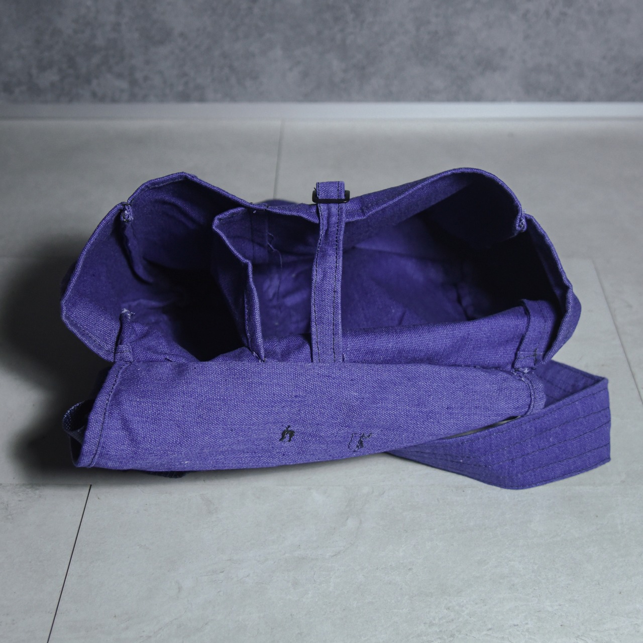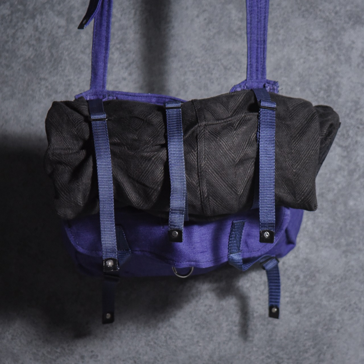 無骨なデザインと鮮やかなインディゴブルーが好対称で、さらに使い勝手のいいサイズ感に仕切りのついた部屋、肩にかけやすい太めのショルダーストラップなど、気の利いた作りが特徴。
