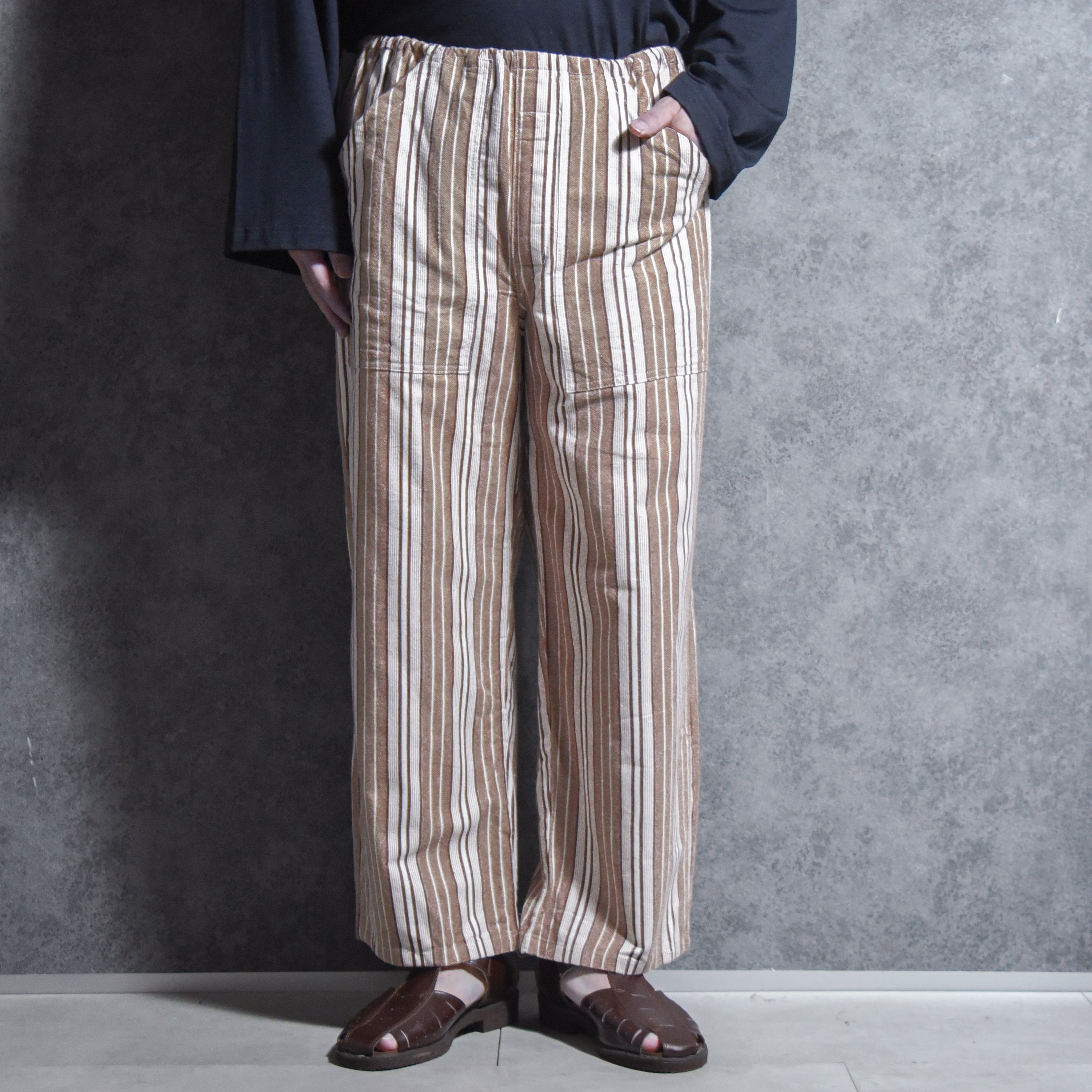 【DEAD STOCK】60-70s Polish Army Stripe Easy Pants ポーランド軍 ストライプ イージーパンツ ブラウン