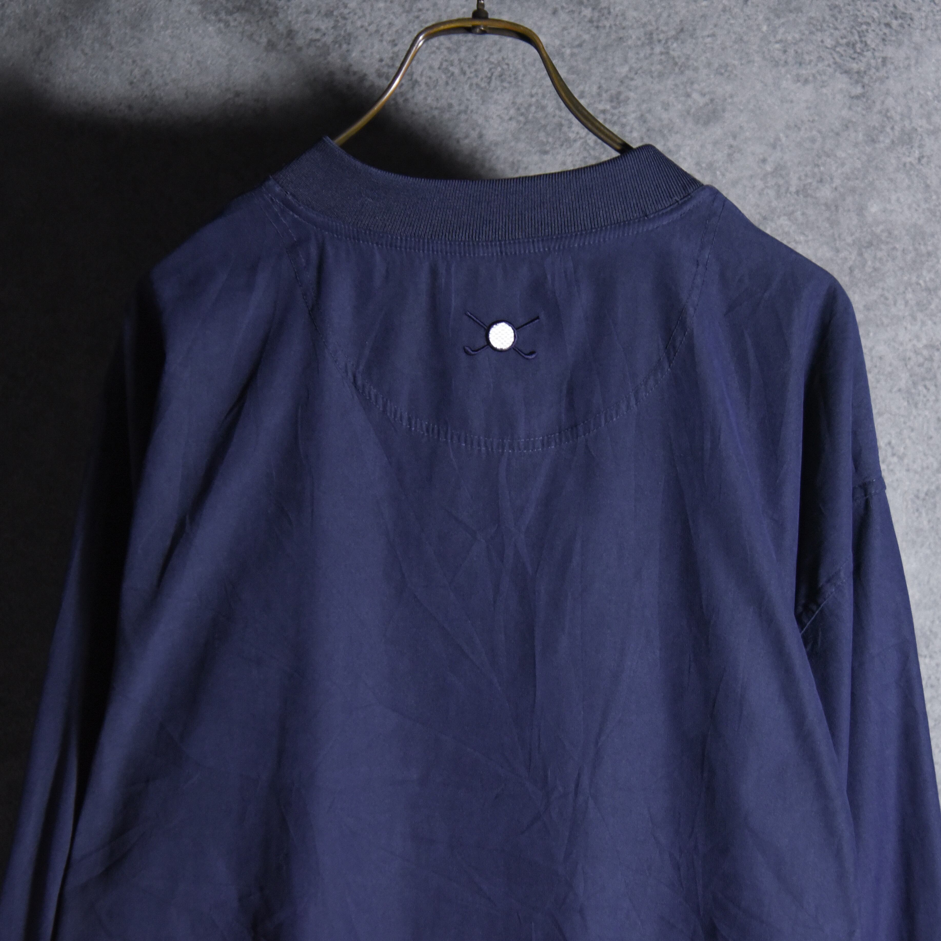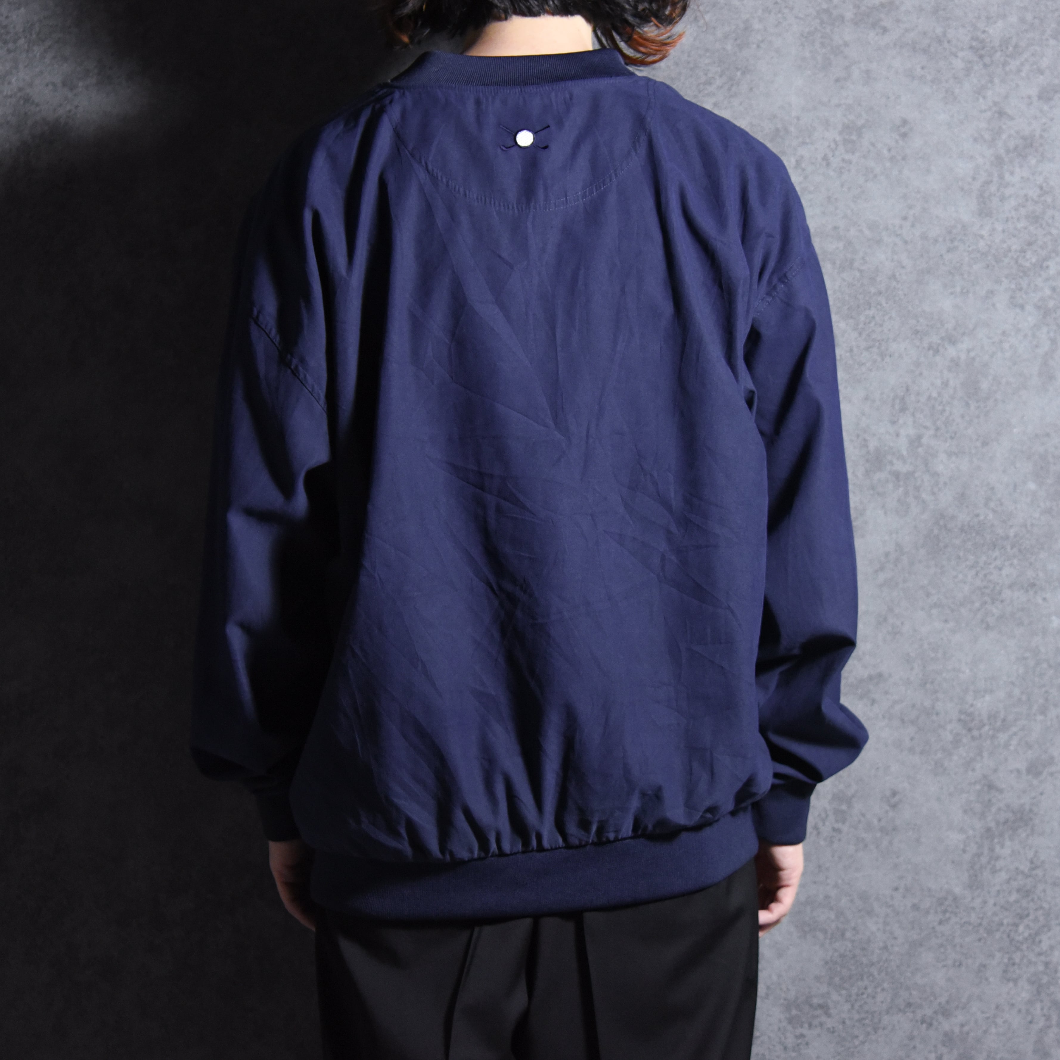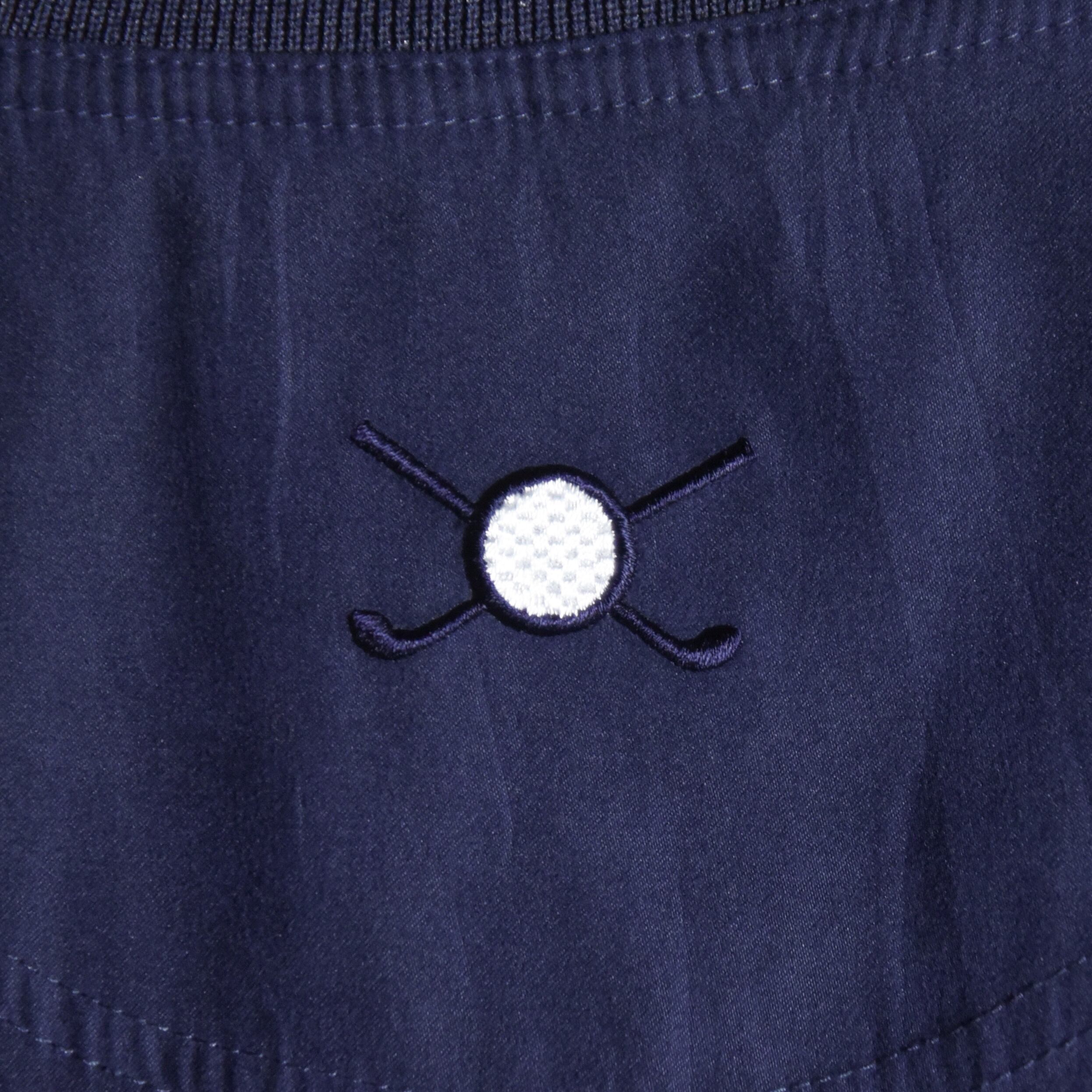 ネイビーで統一された身生地とリブ、背面のゴルフモチーフの刺繍がアクセントになっています。