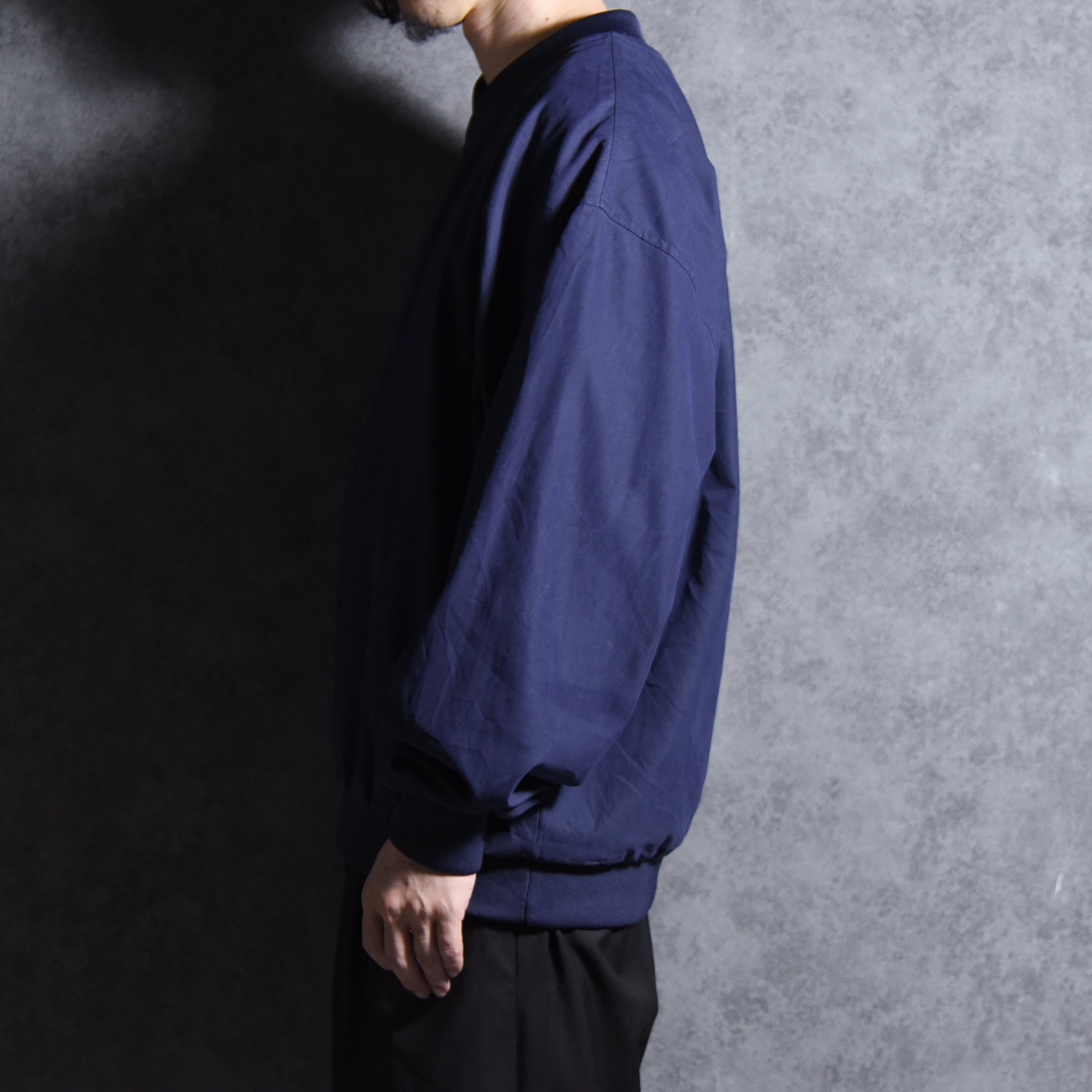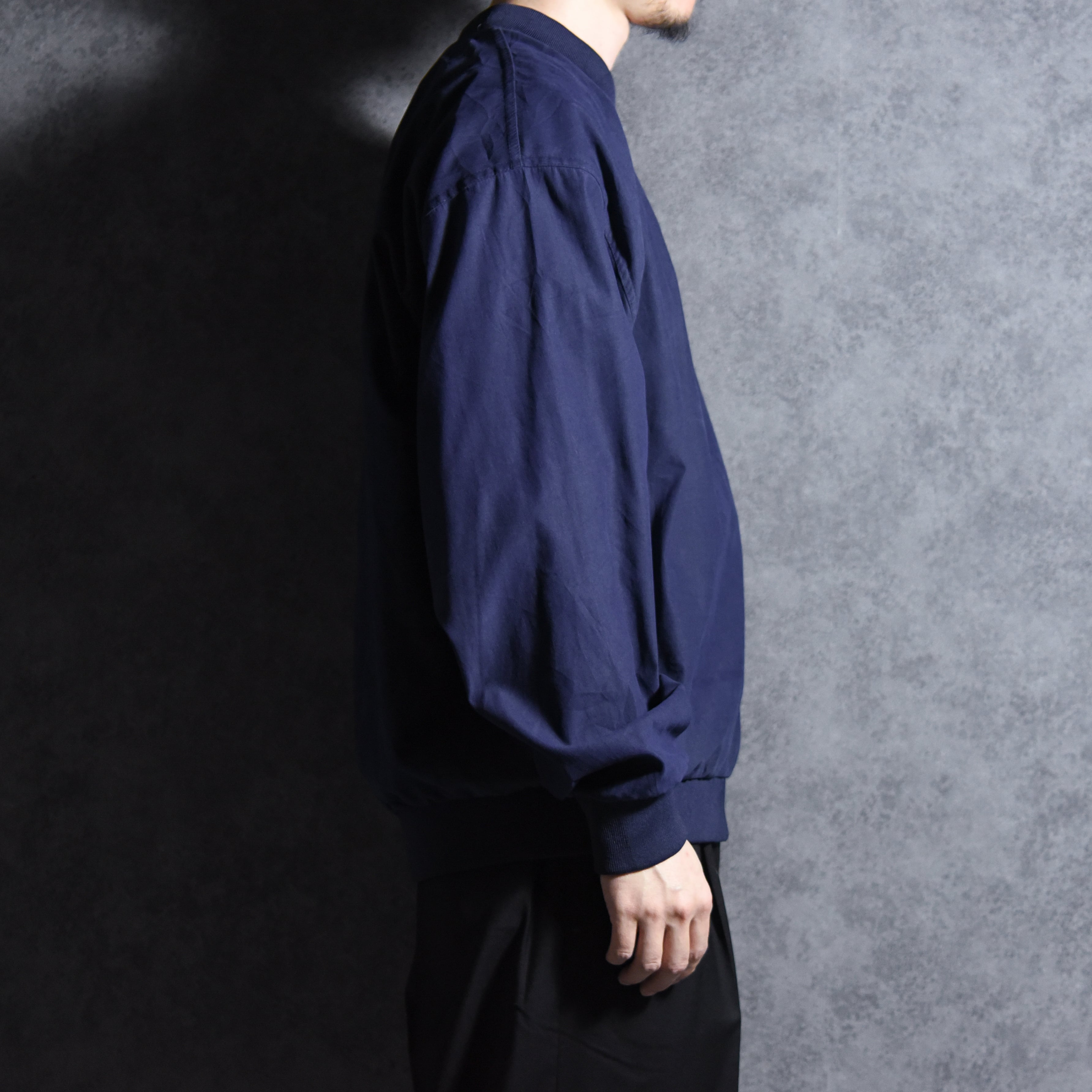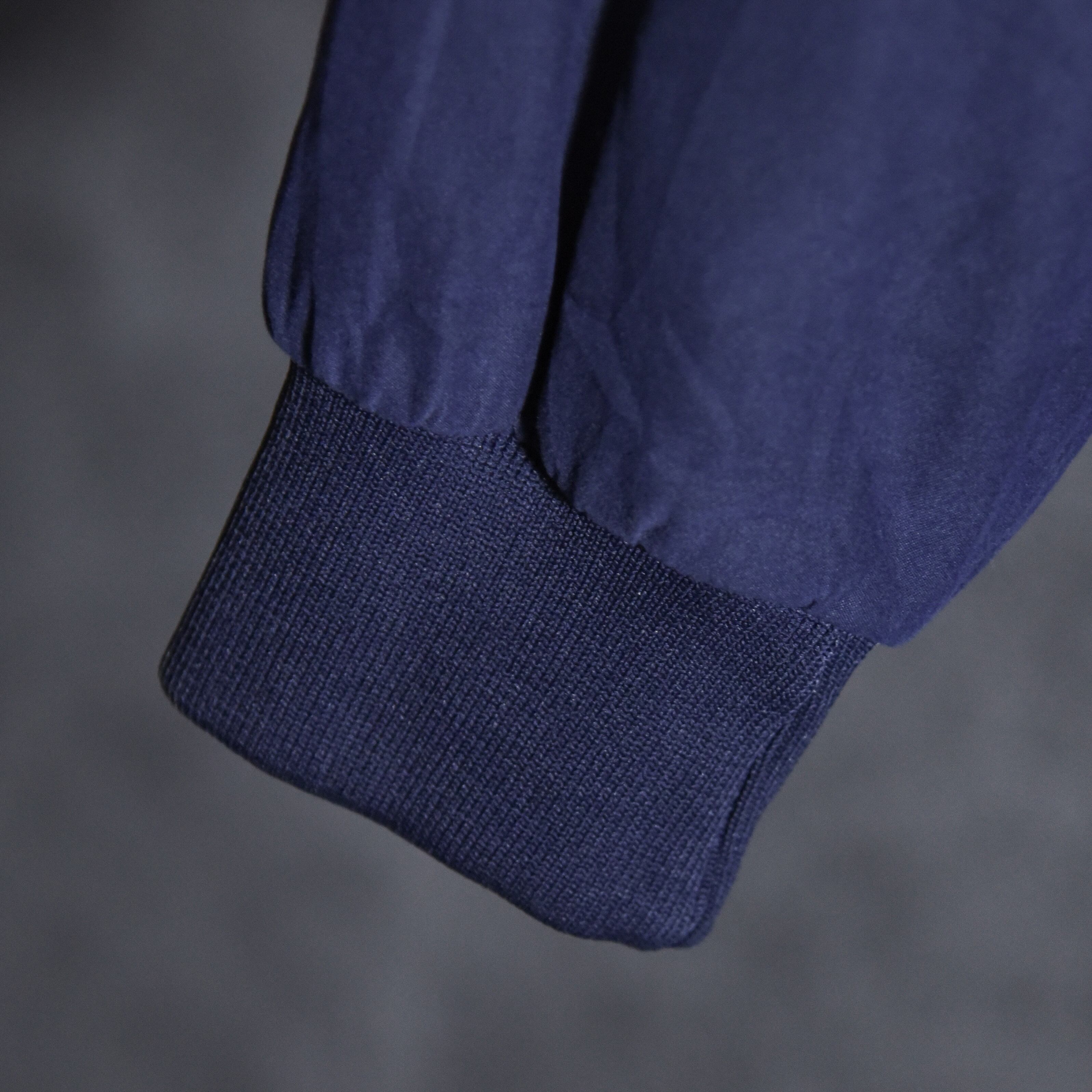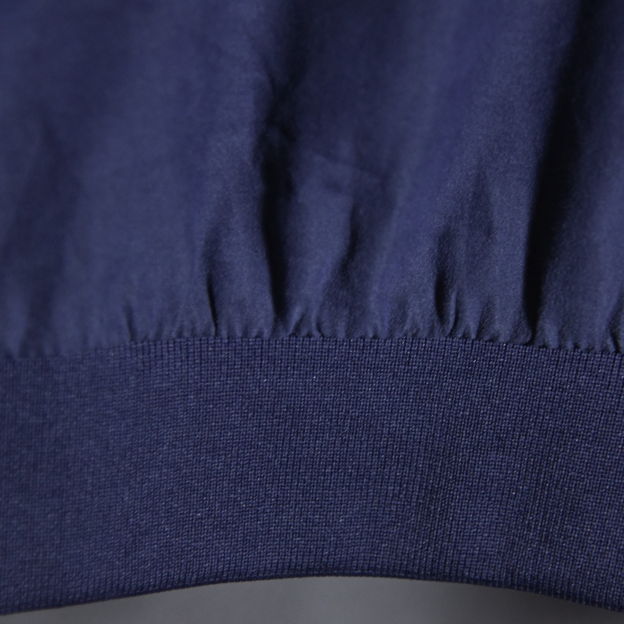 ネイビーで統一された身生地とリブ、背面のゴルフモチーフの刺繍がアクセントになっています。