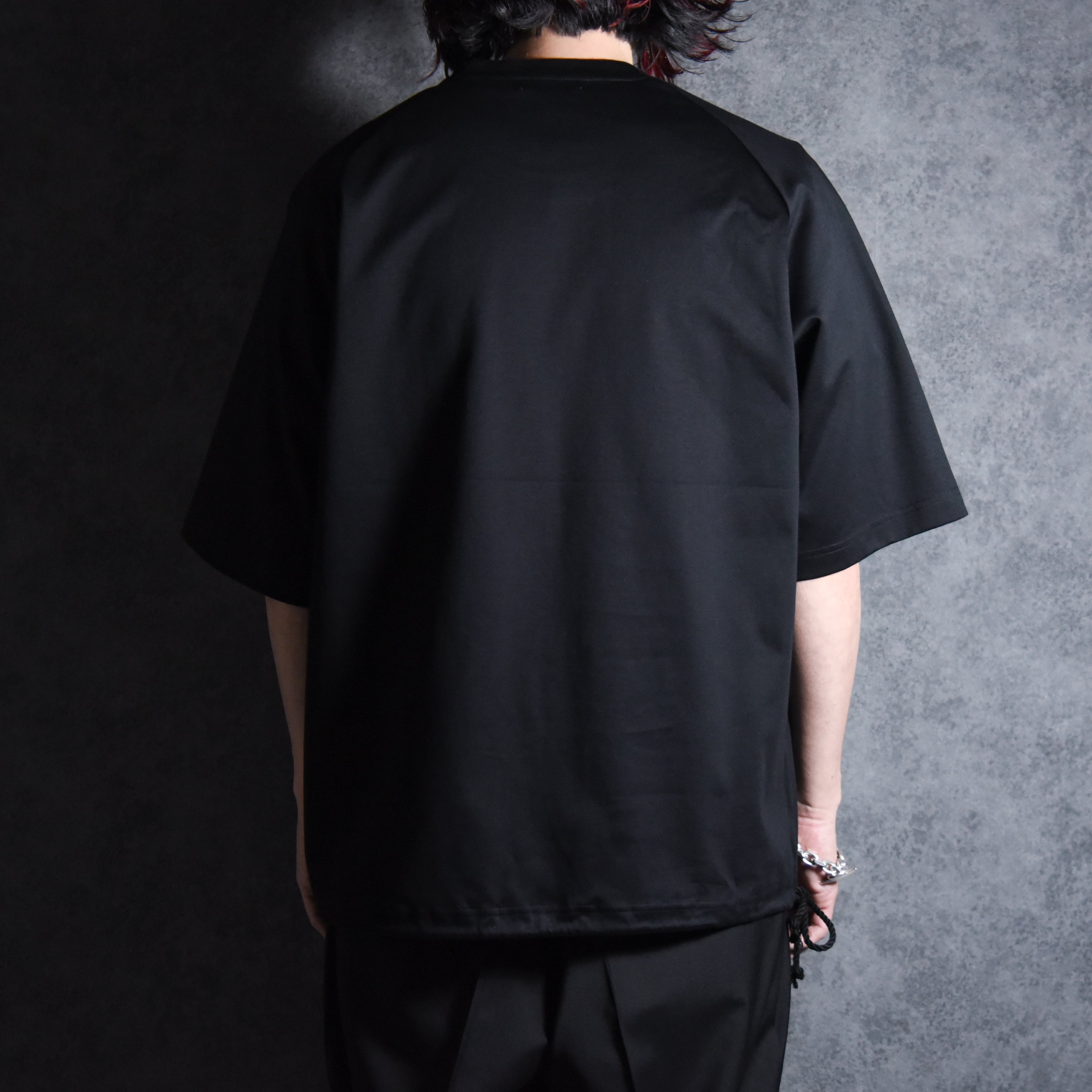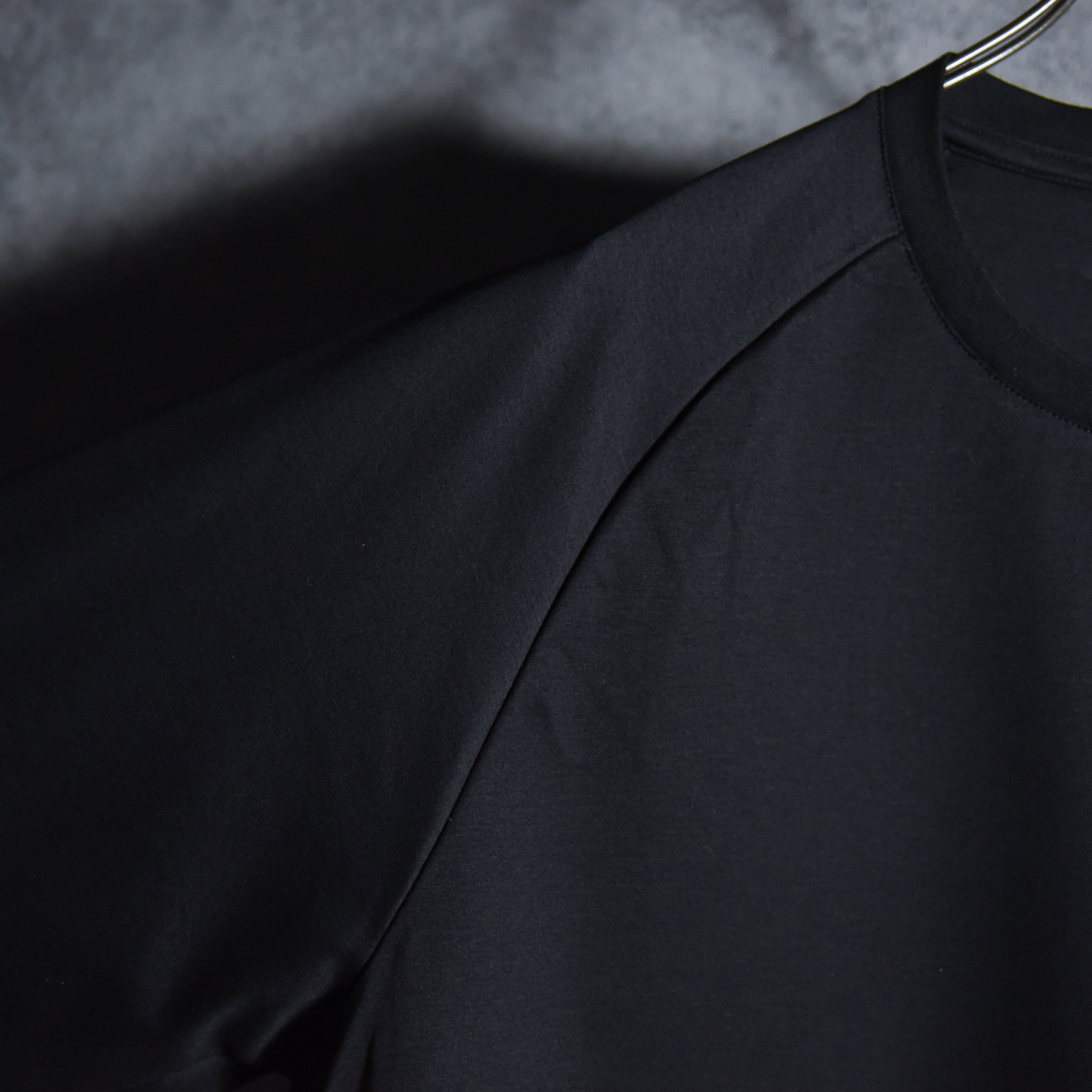 また袖付けはラグランスリーブで、肩周りのシームも目を惹くポイントとなっています。